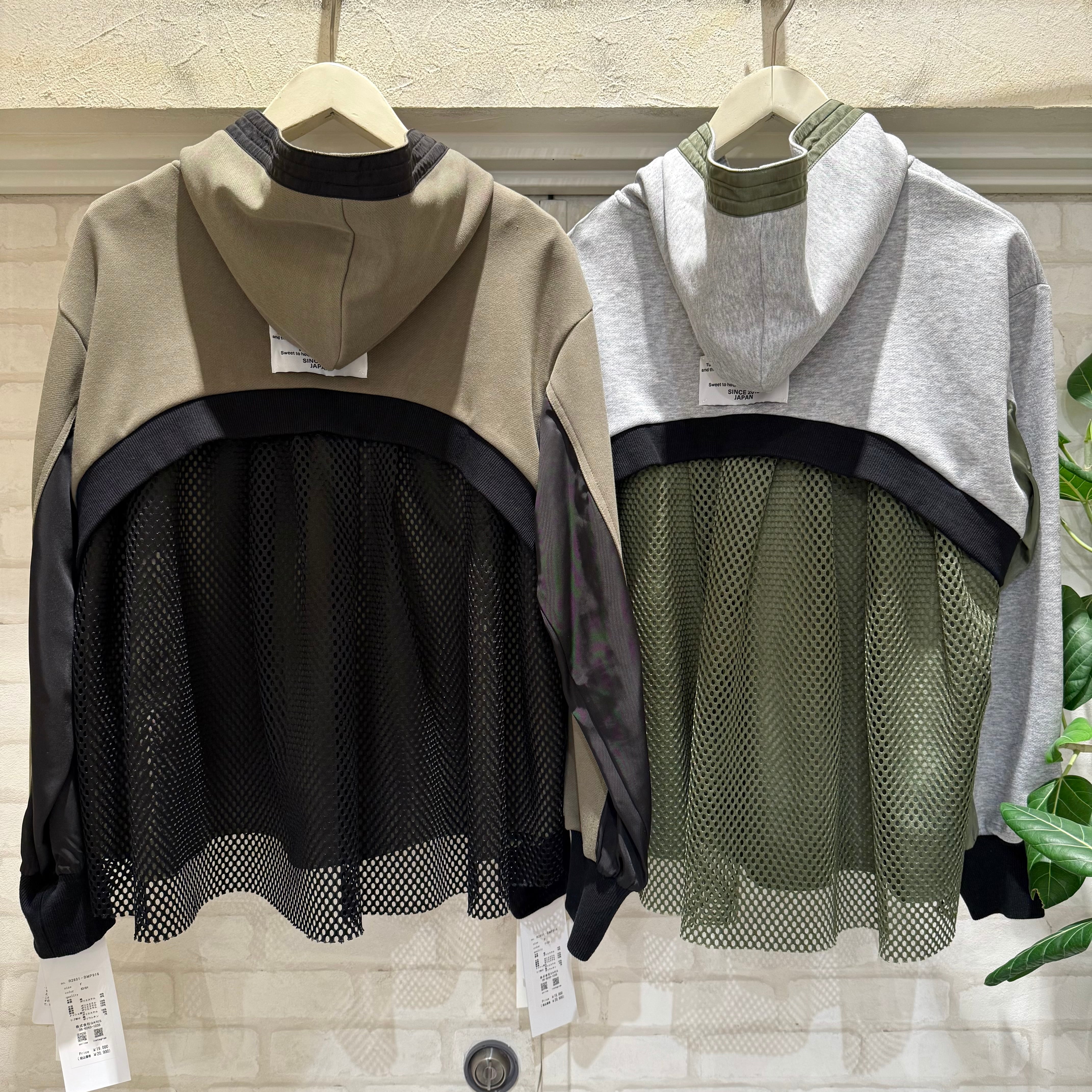 異素材ミックスが目を惹く、デザイン性と機能性を兼ね備えたフーディ。