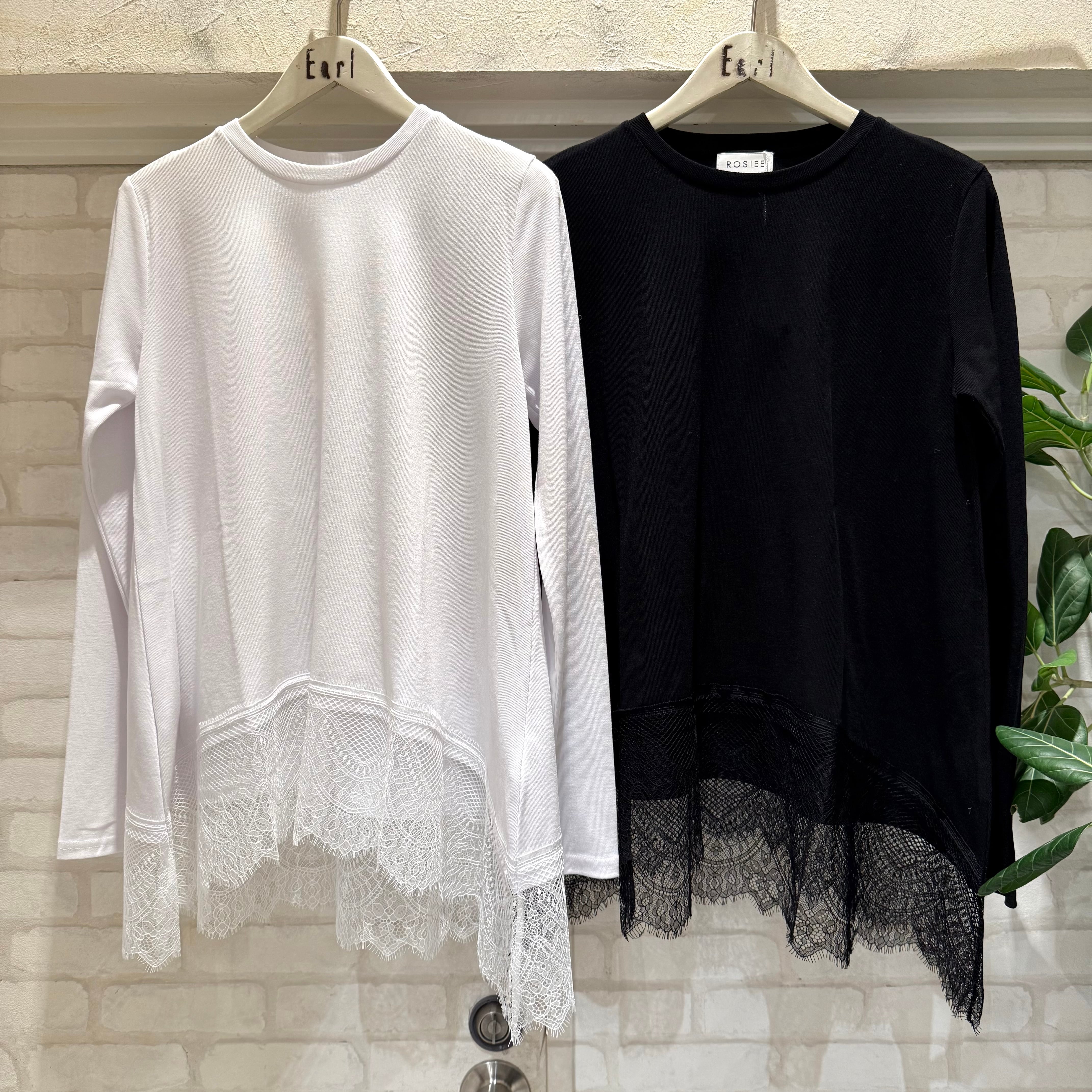 裾にあしらった繊細なレースが女性らしさを引き立てるトップス。