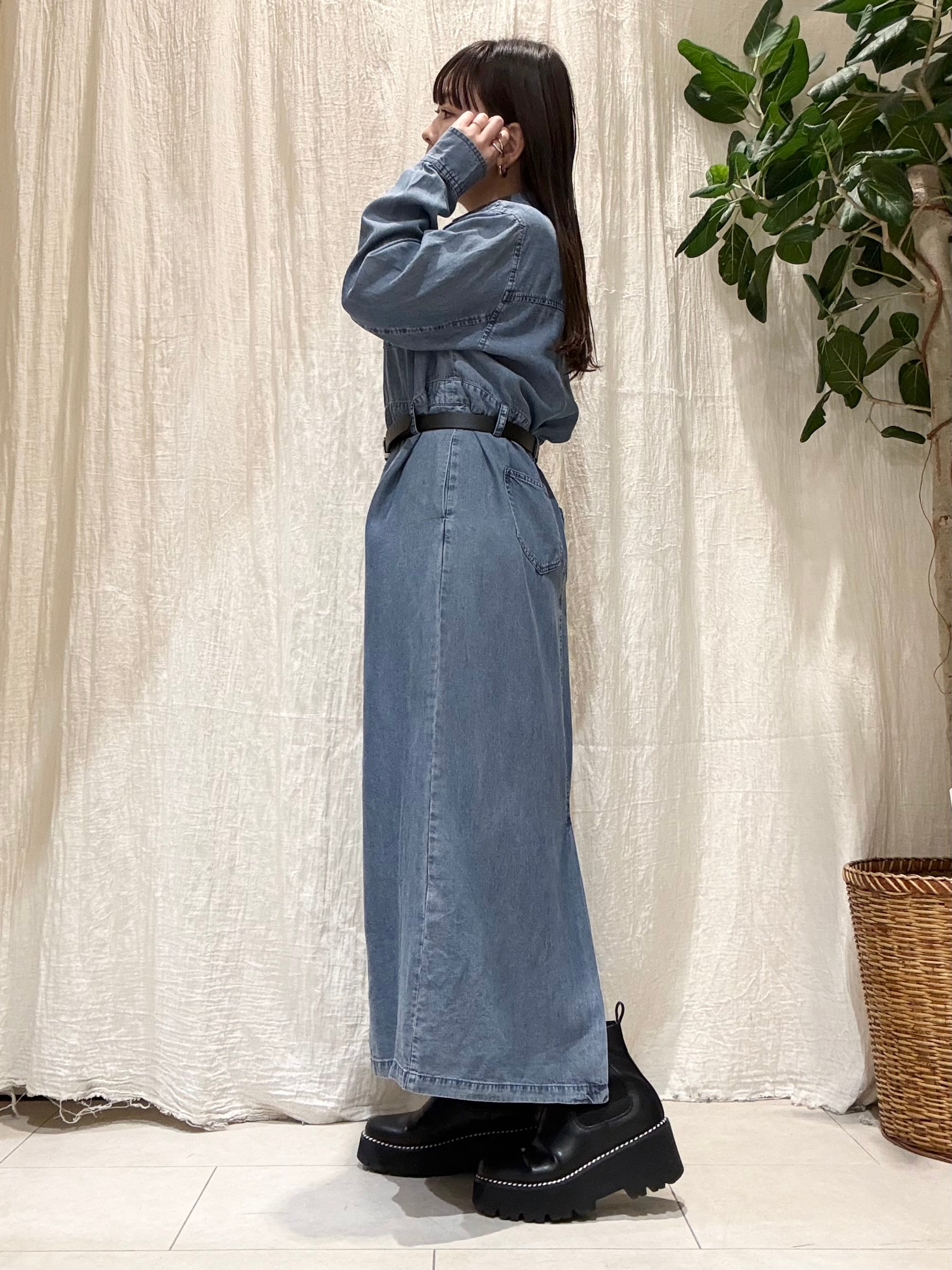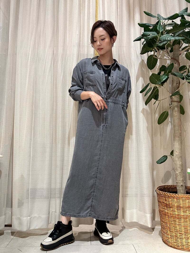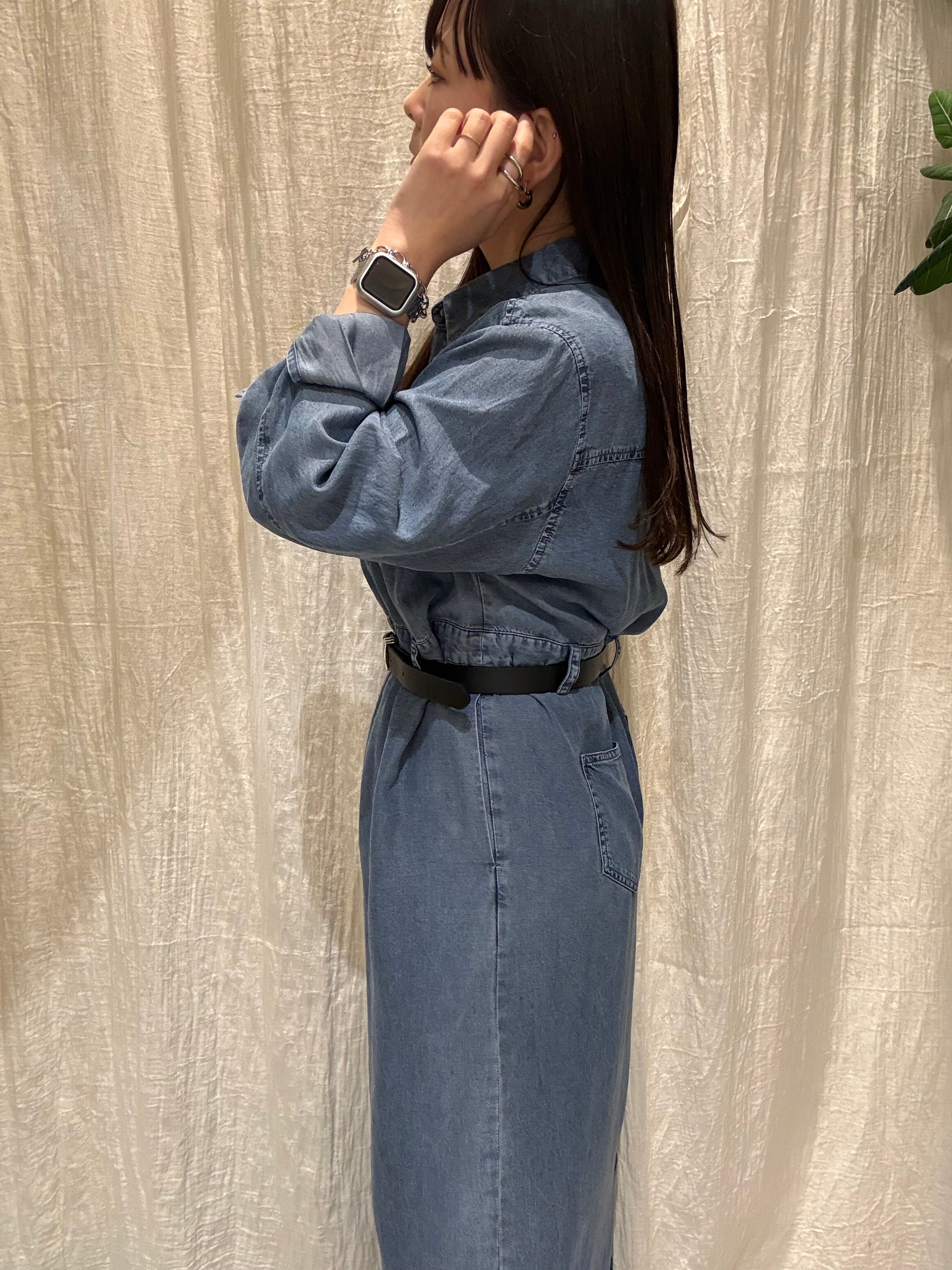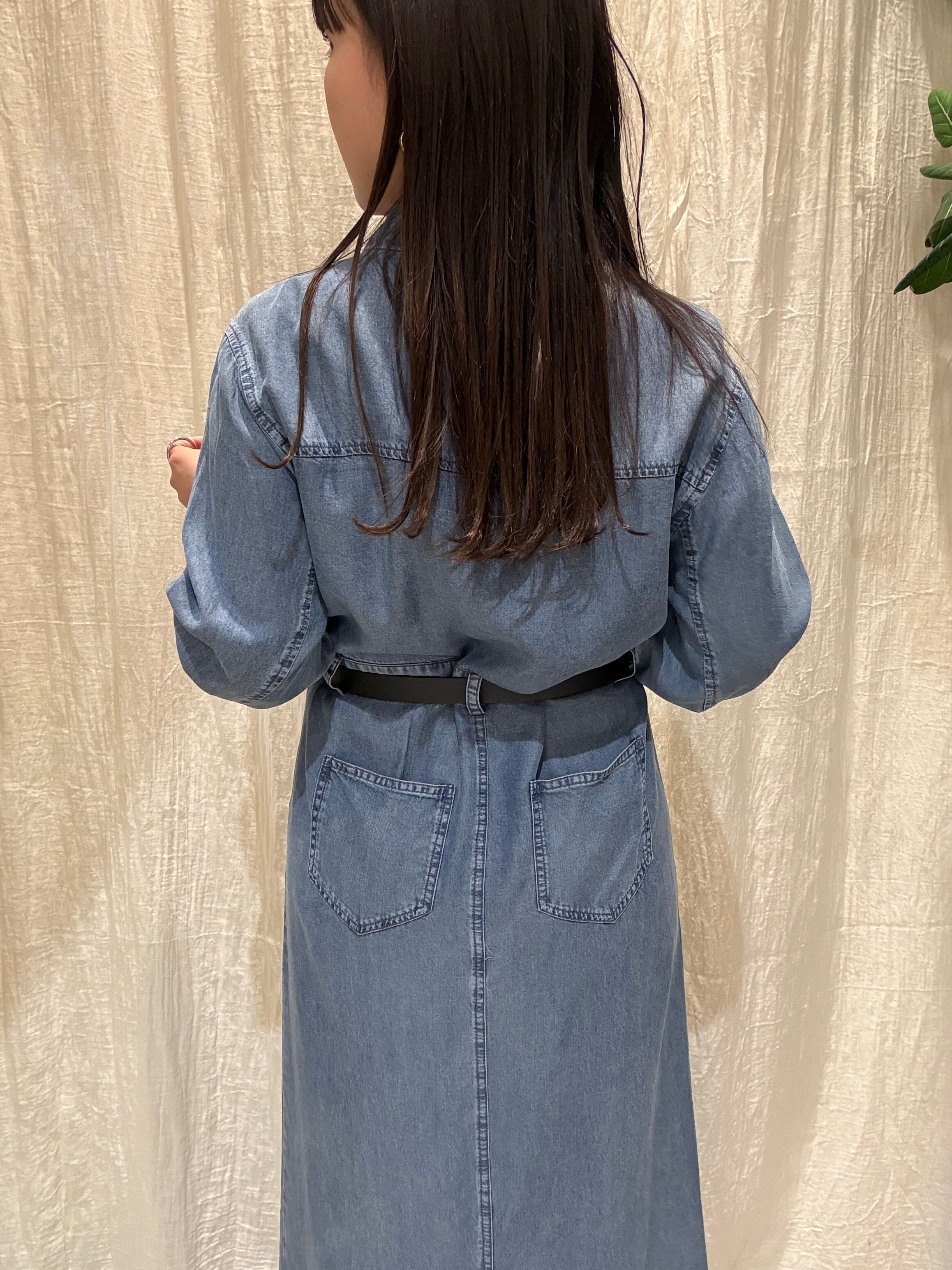 落ち感のあるテンセル素材を使用した、上品カジュアルなデニムワンピース。