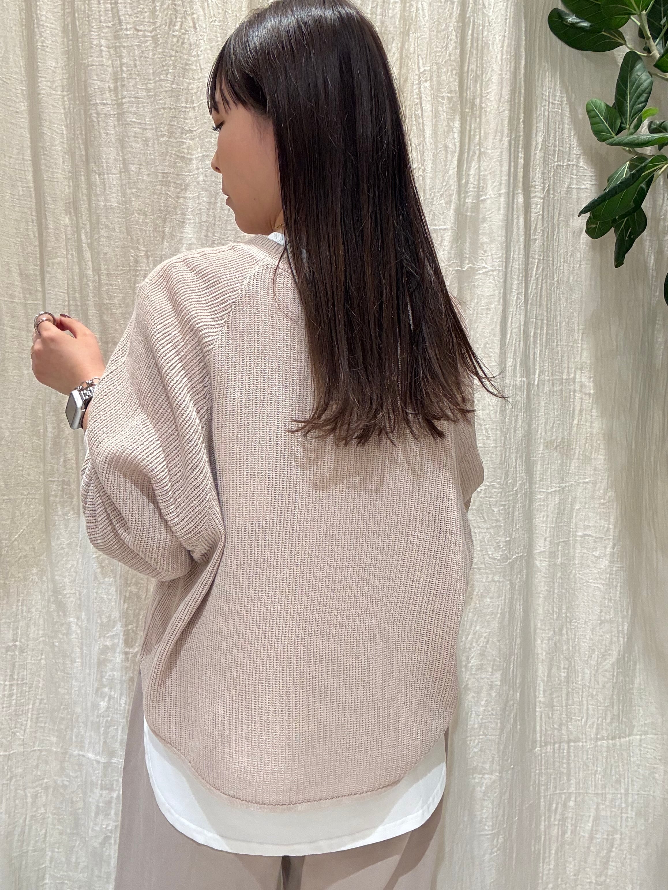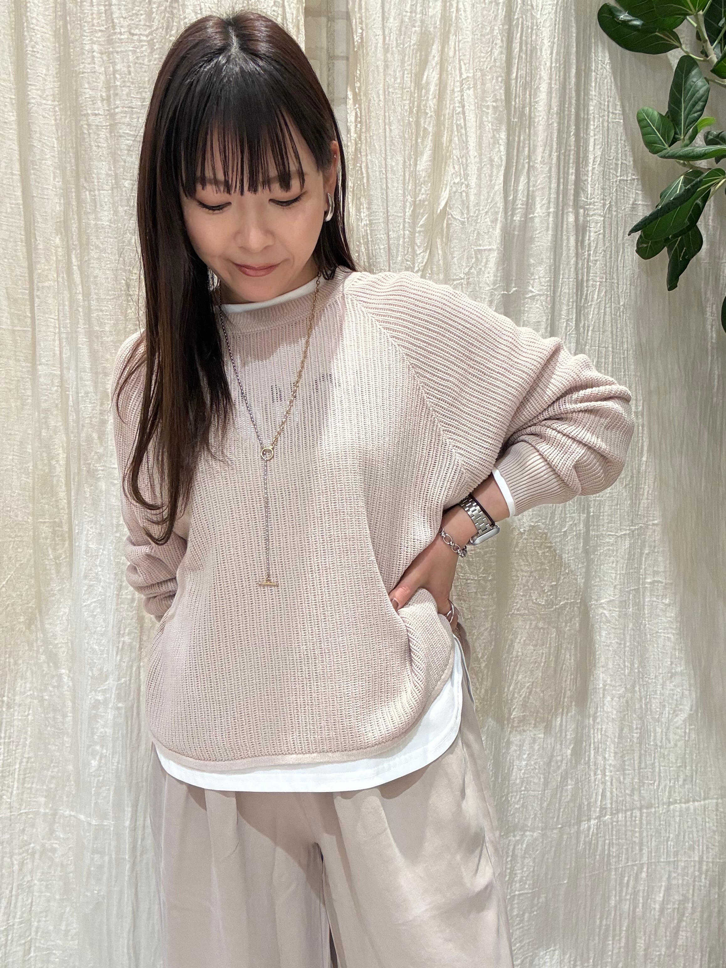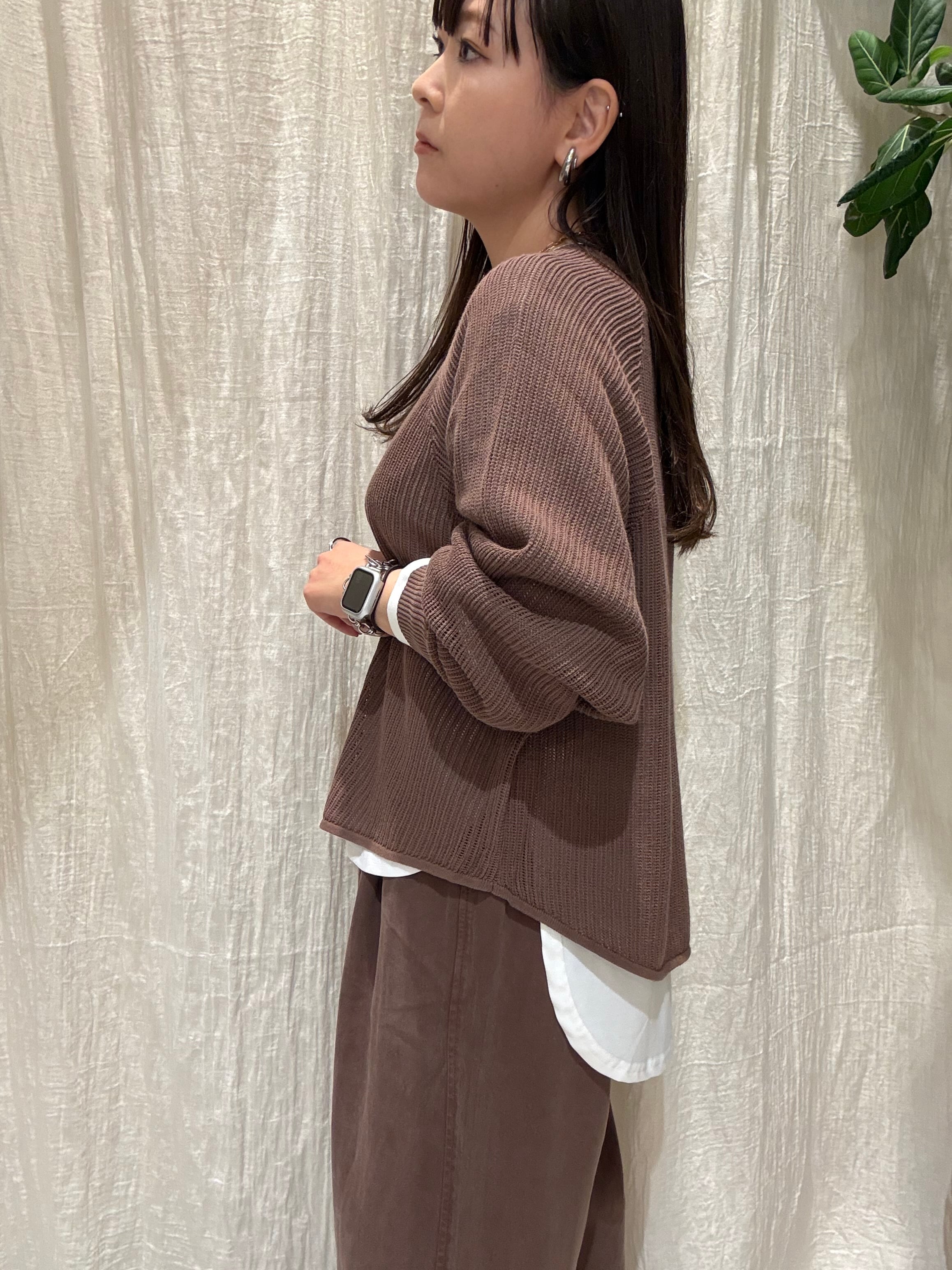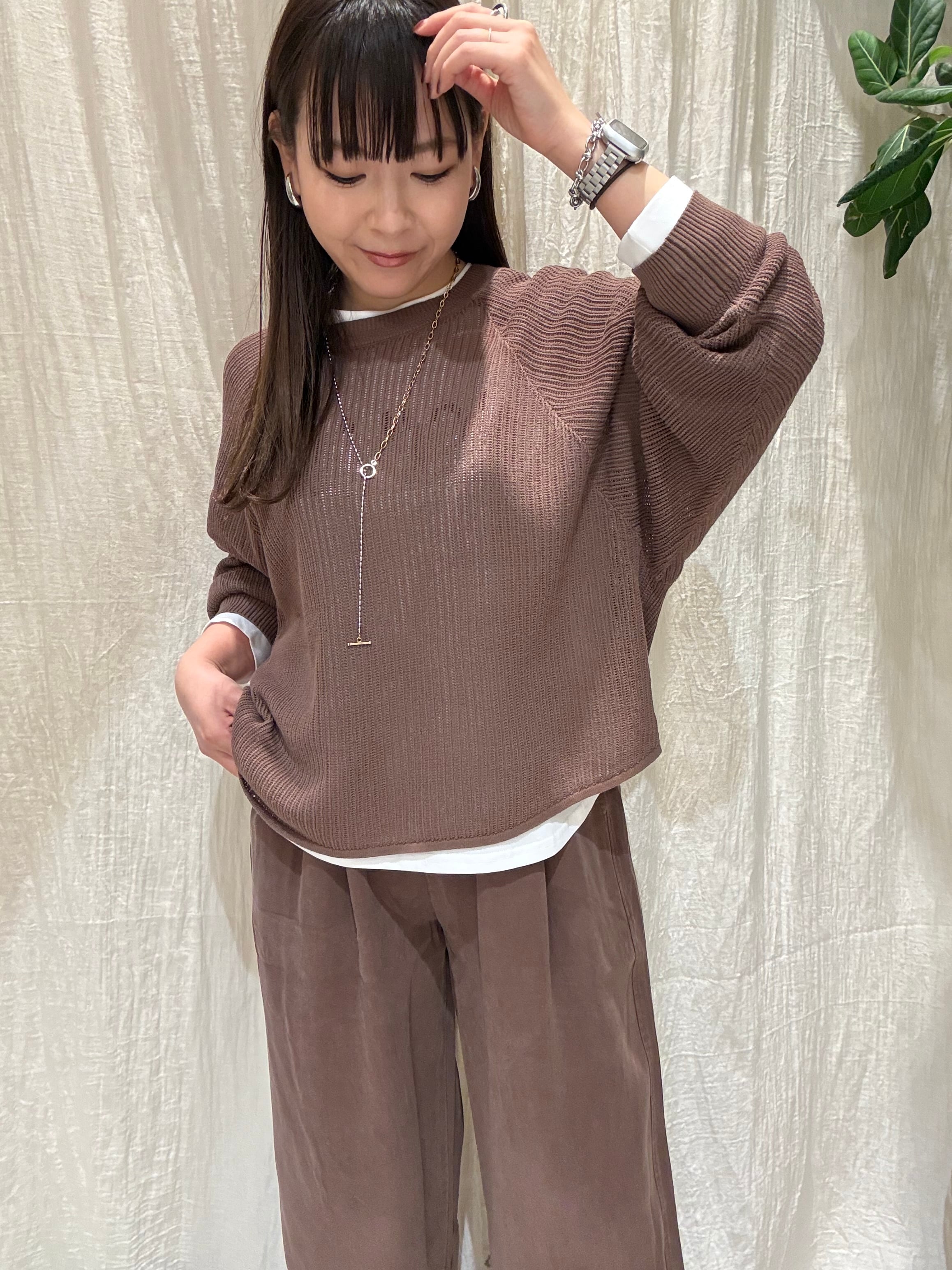 軽やかな編地が上品な抜け感を演出し、大人のリラックススタイルに最適な一枚。
