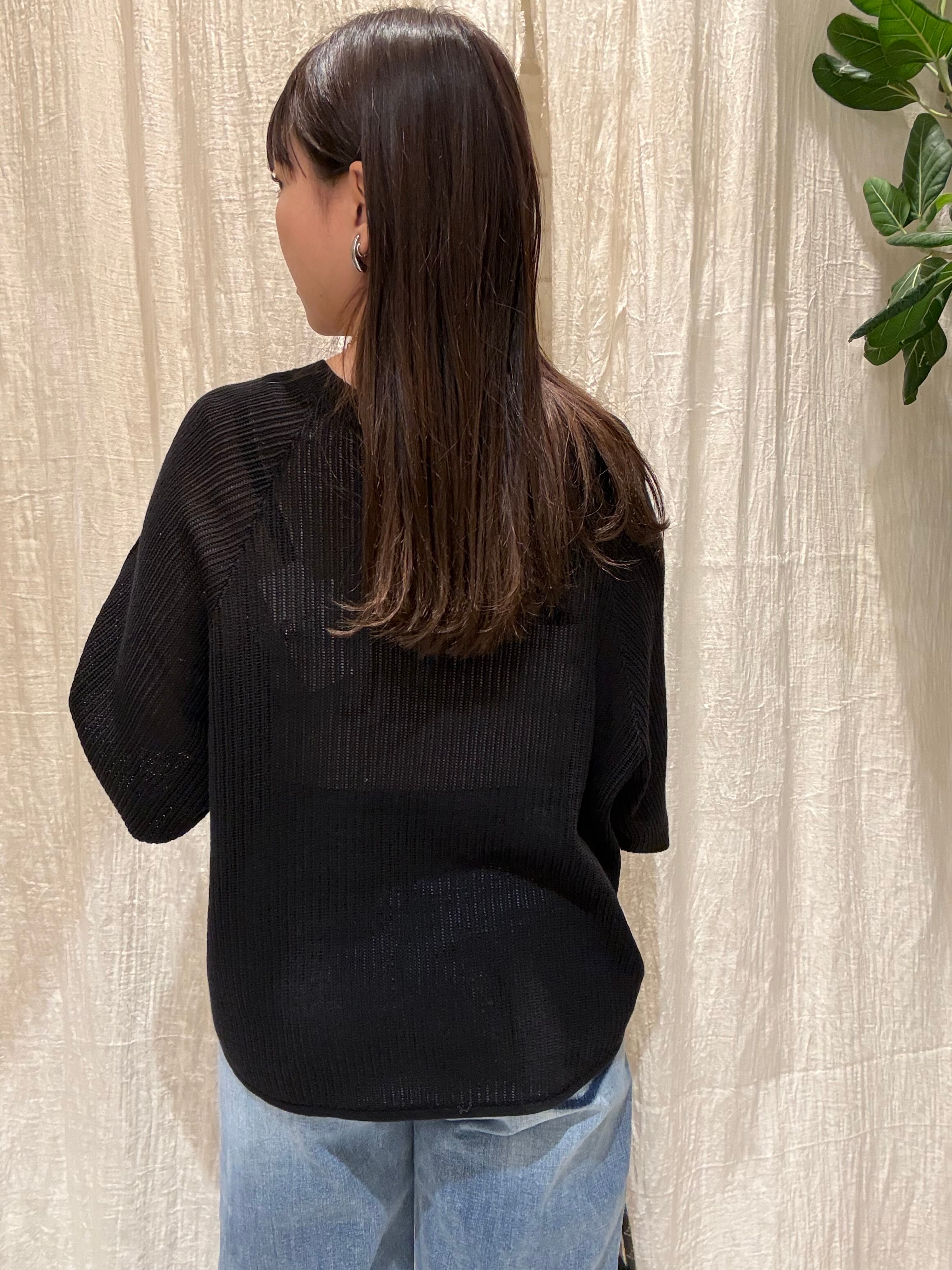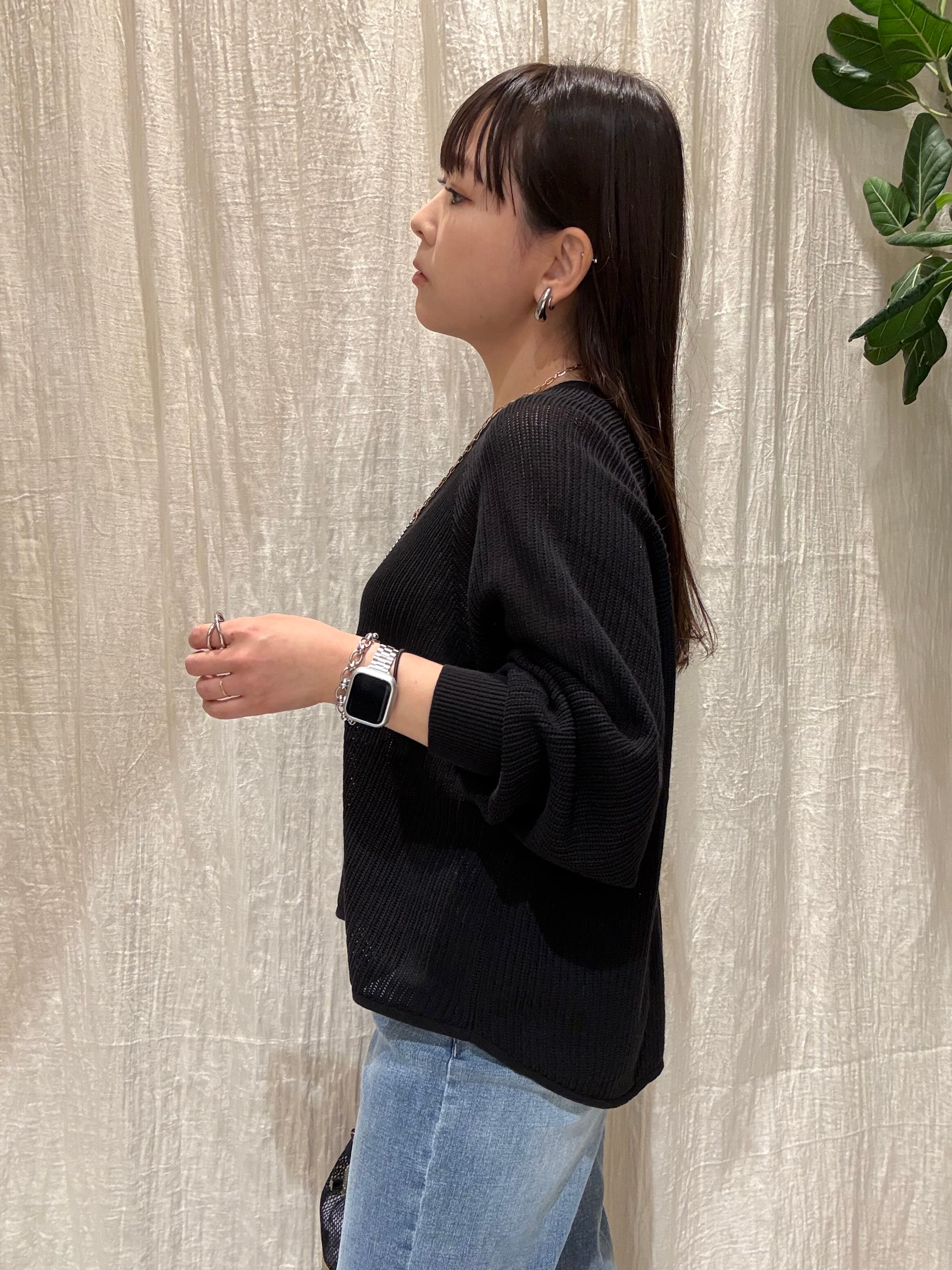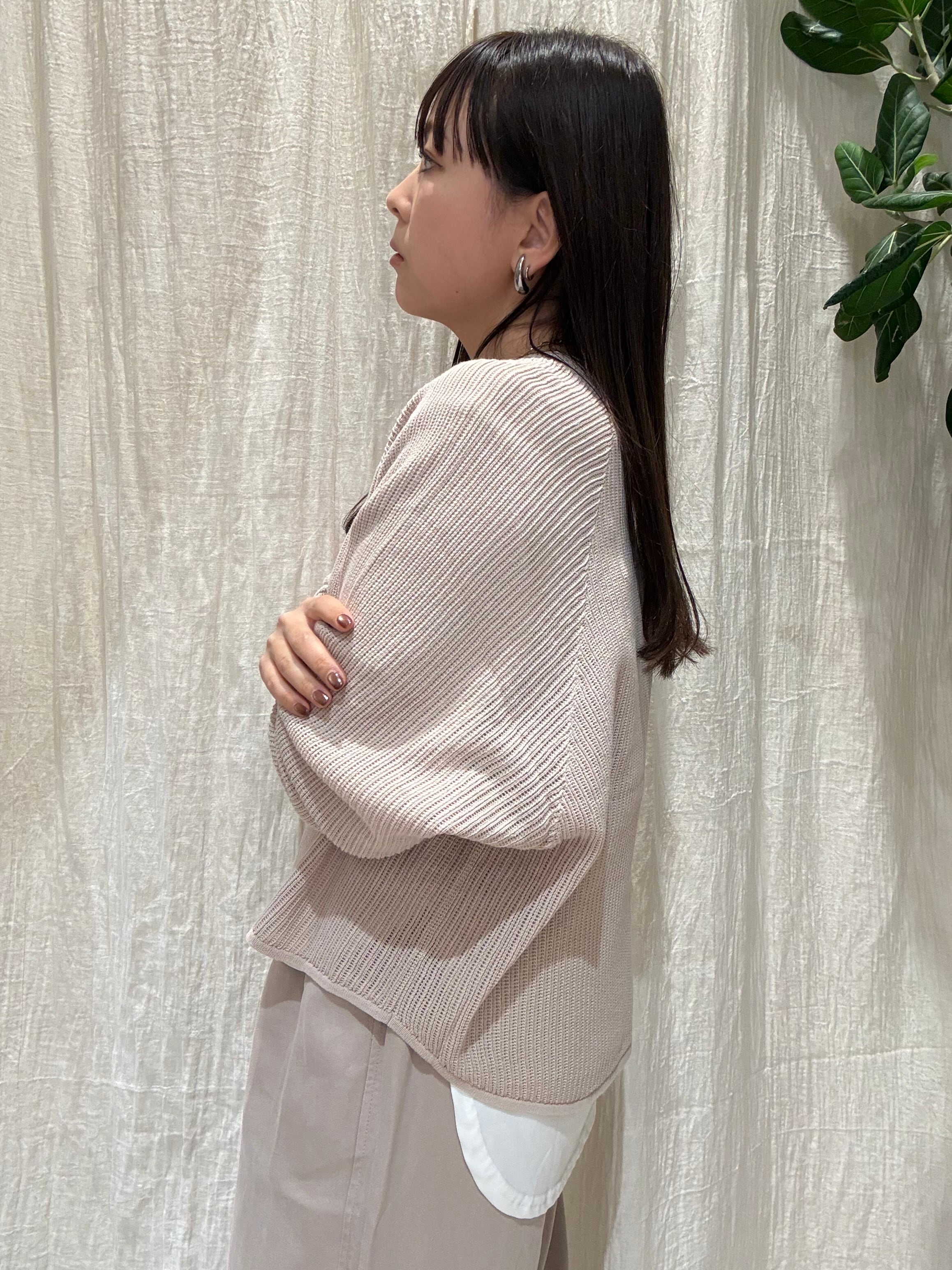 軽やかな編地が上品な抜け感を演出し、大人のリラックススタイルに最適な一枚。