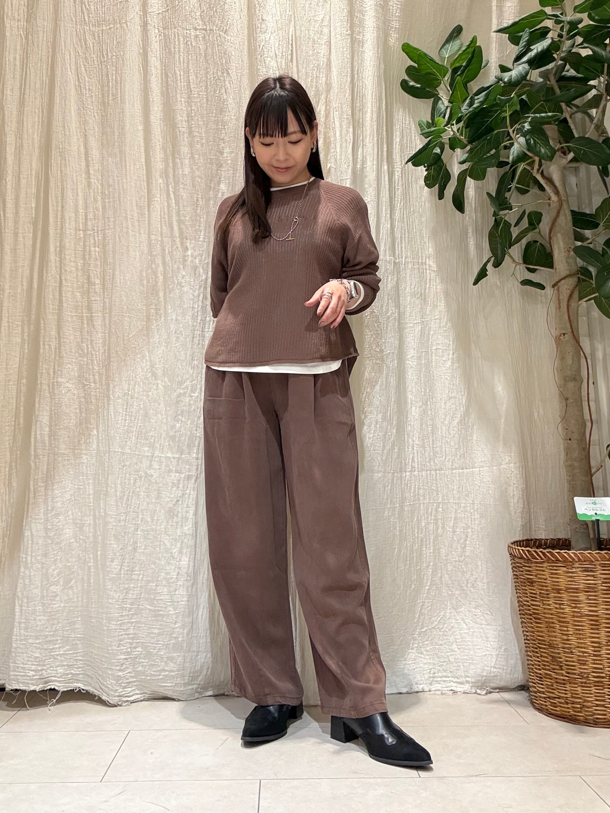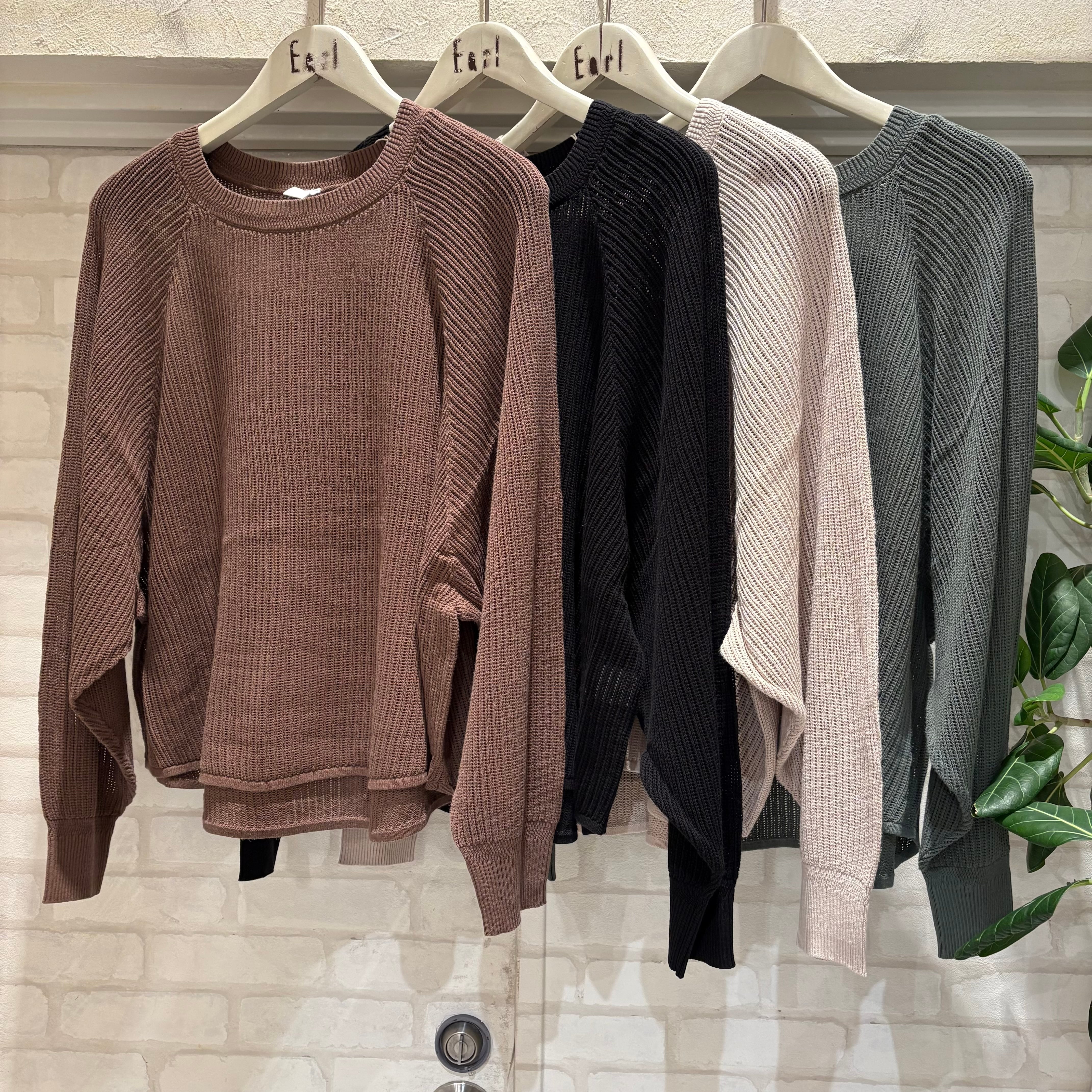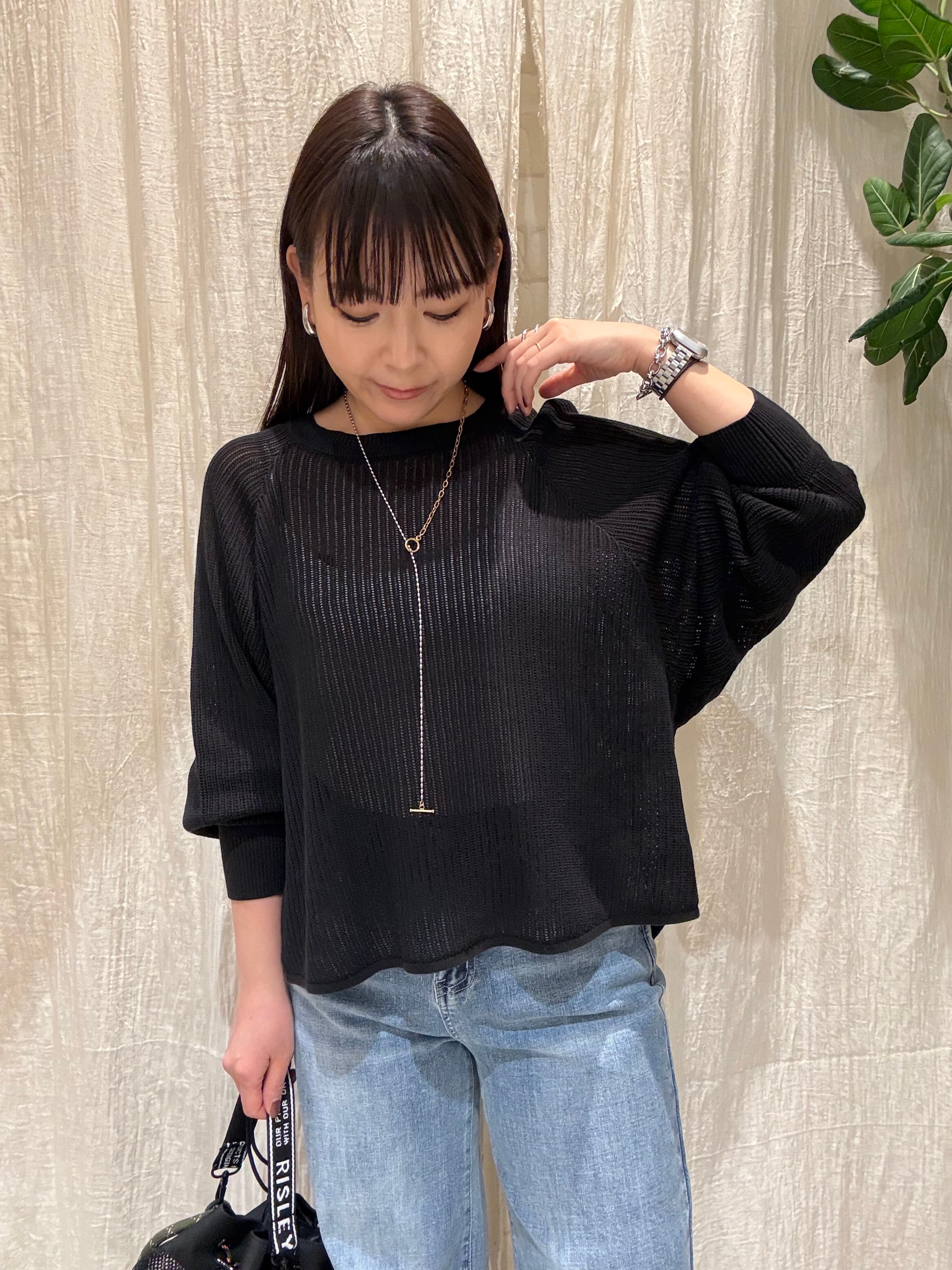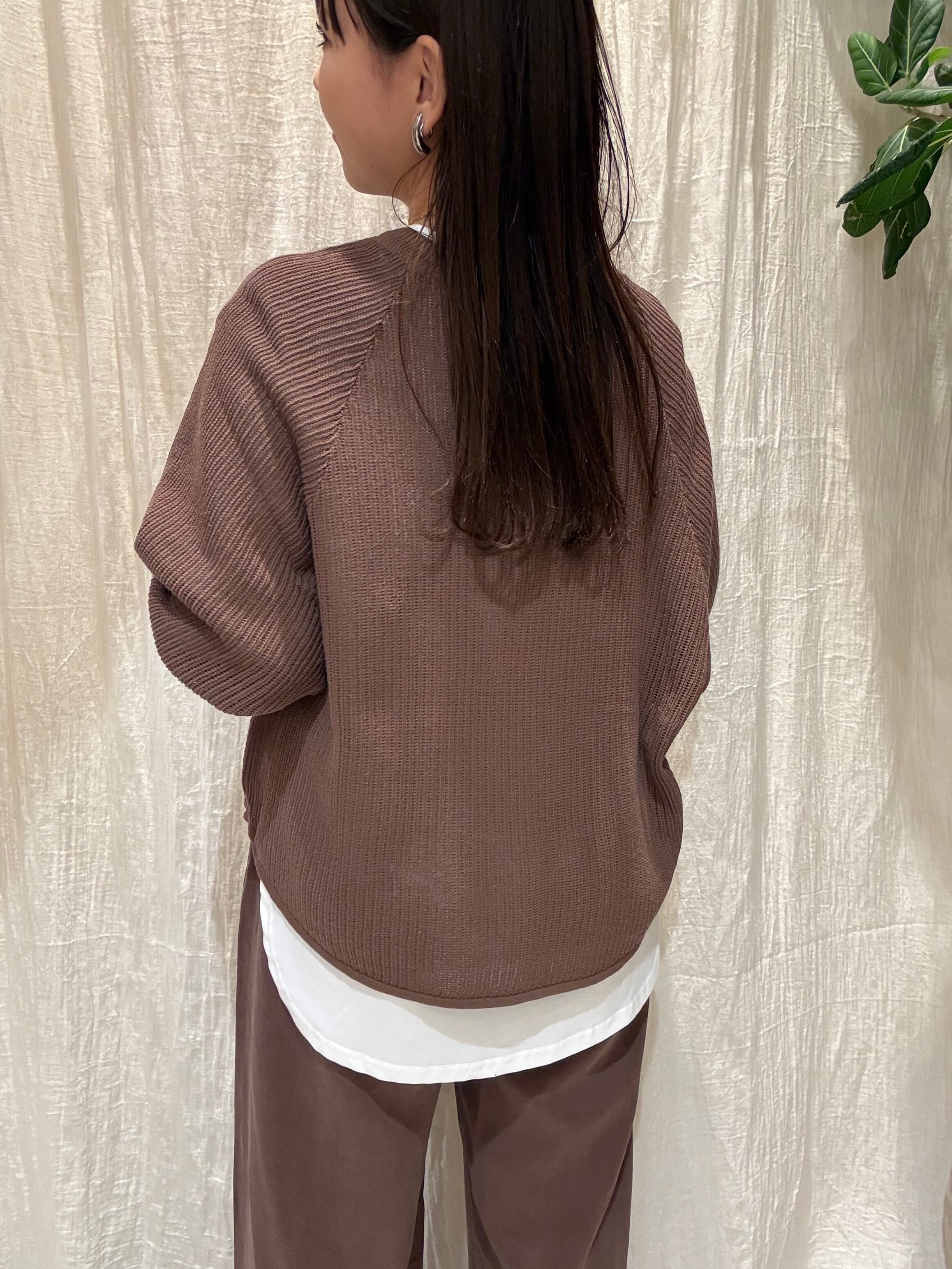 軽やかな編地が上品な抜け感を演出し、大人のリラックススタイルに最適な一枚。