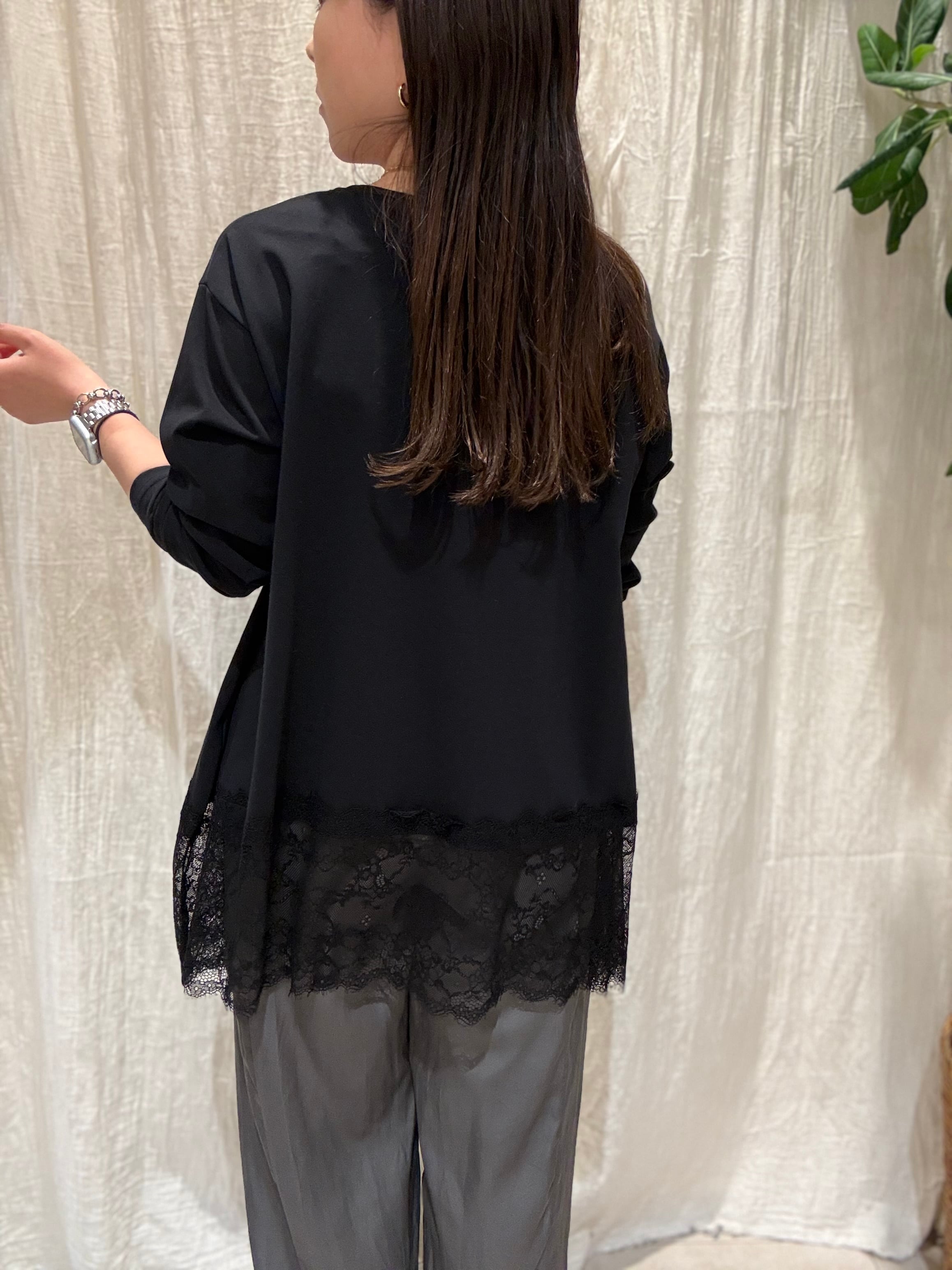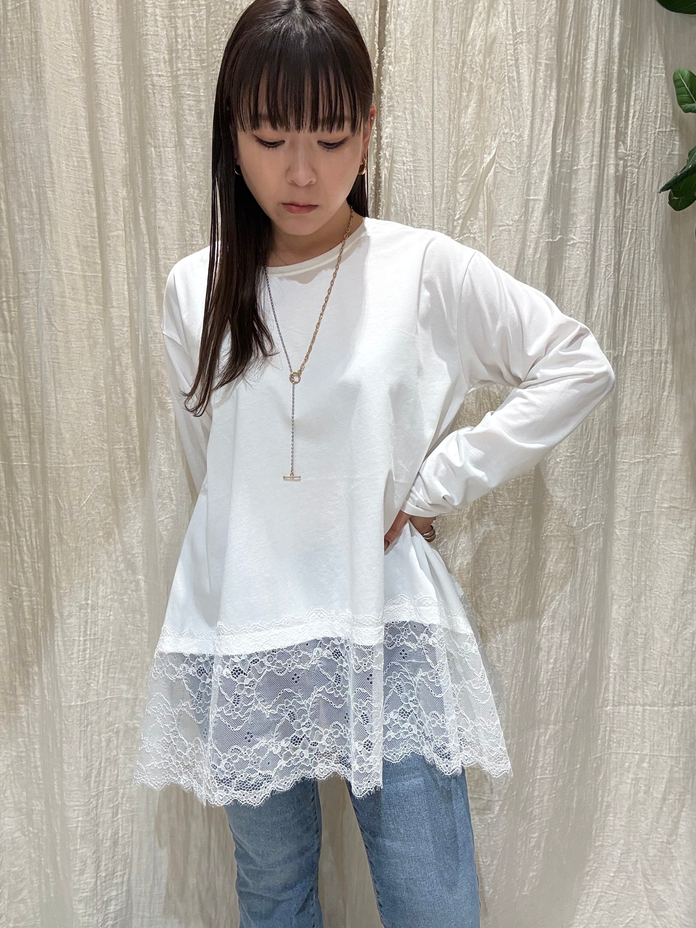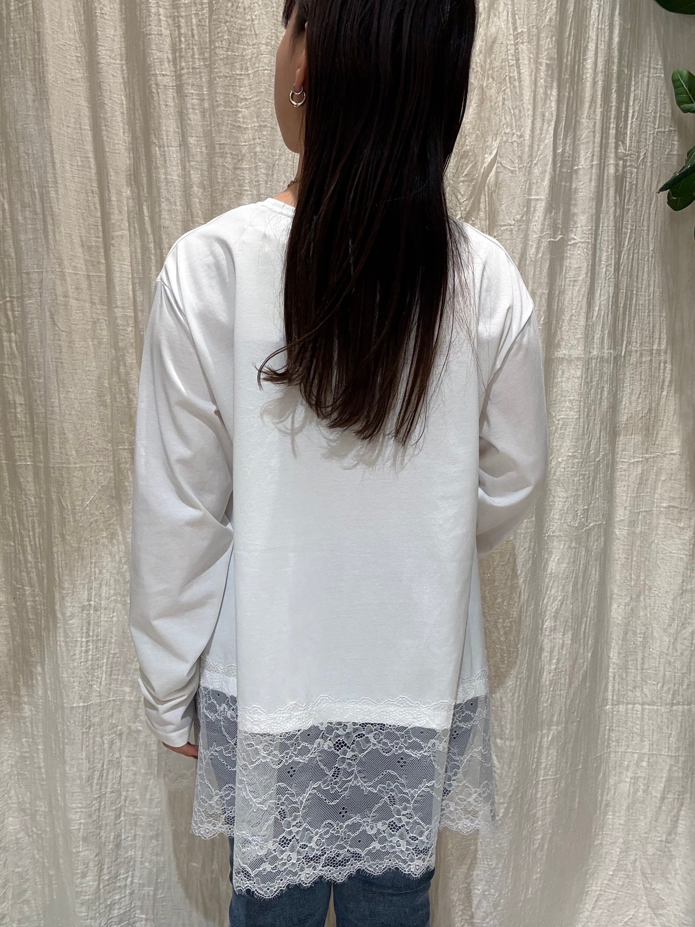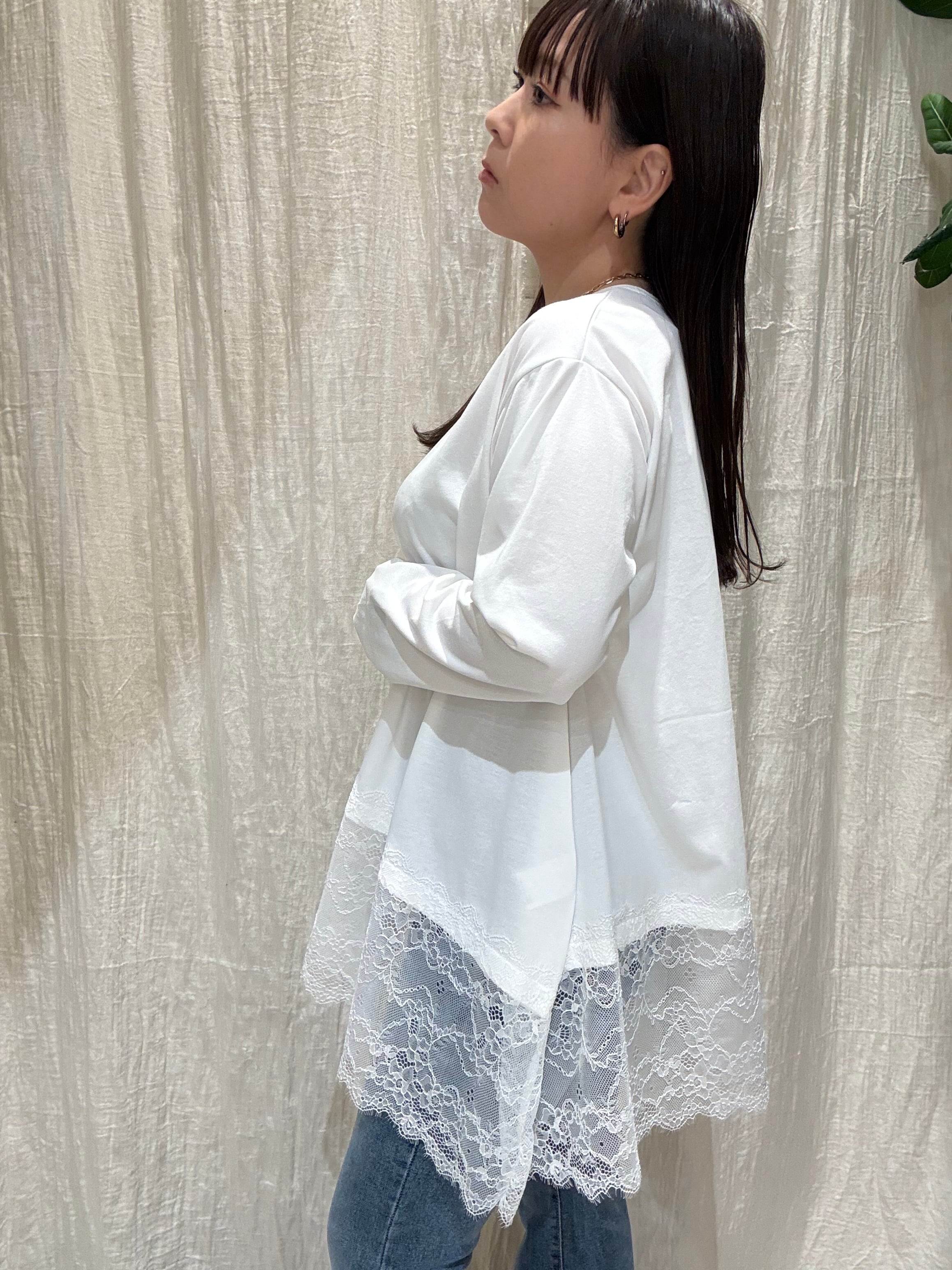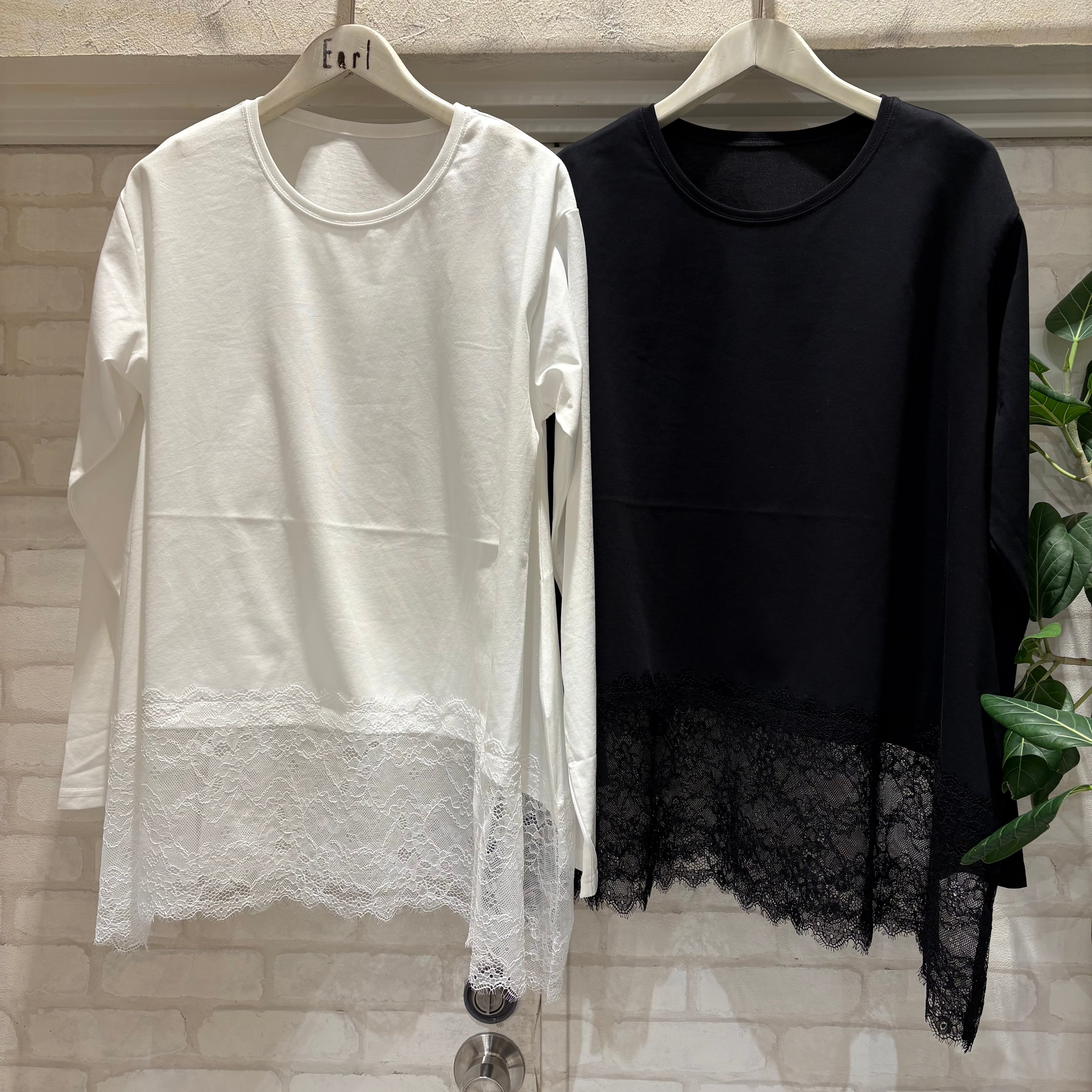 ロンTのようなシンプルな見た目に、裾のレースが映えるデザインです。