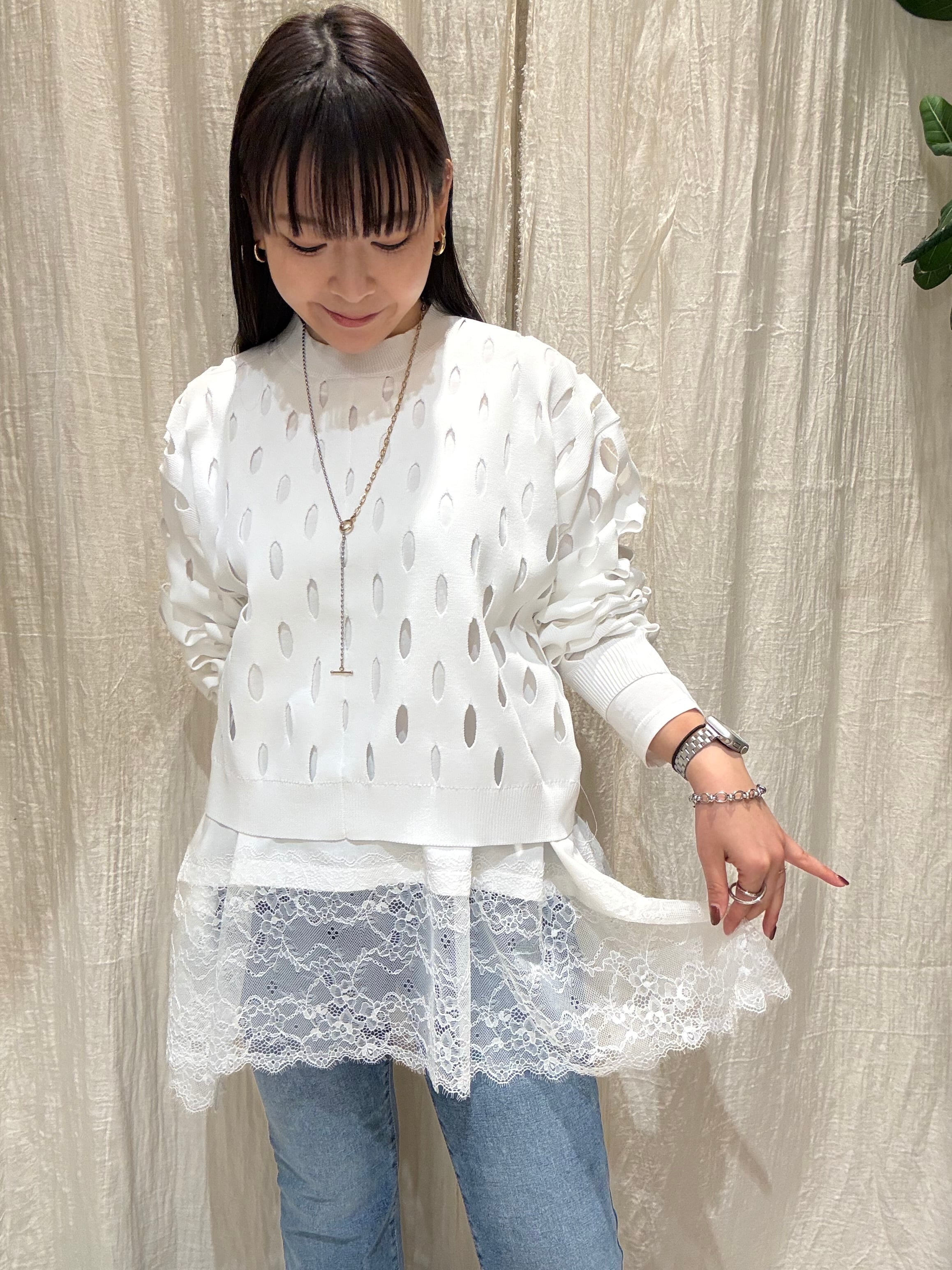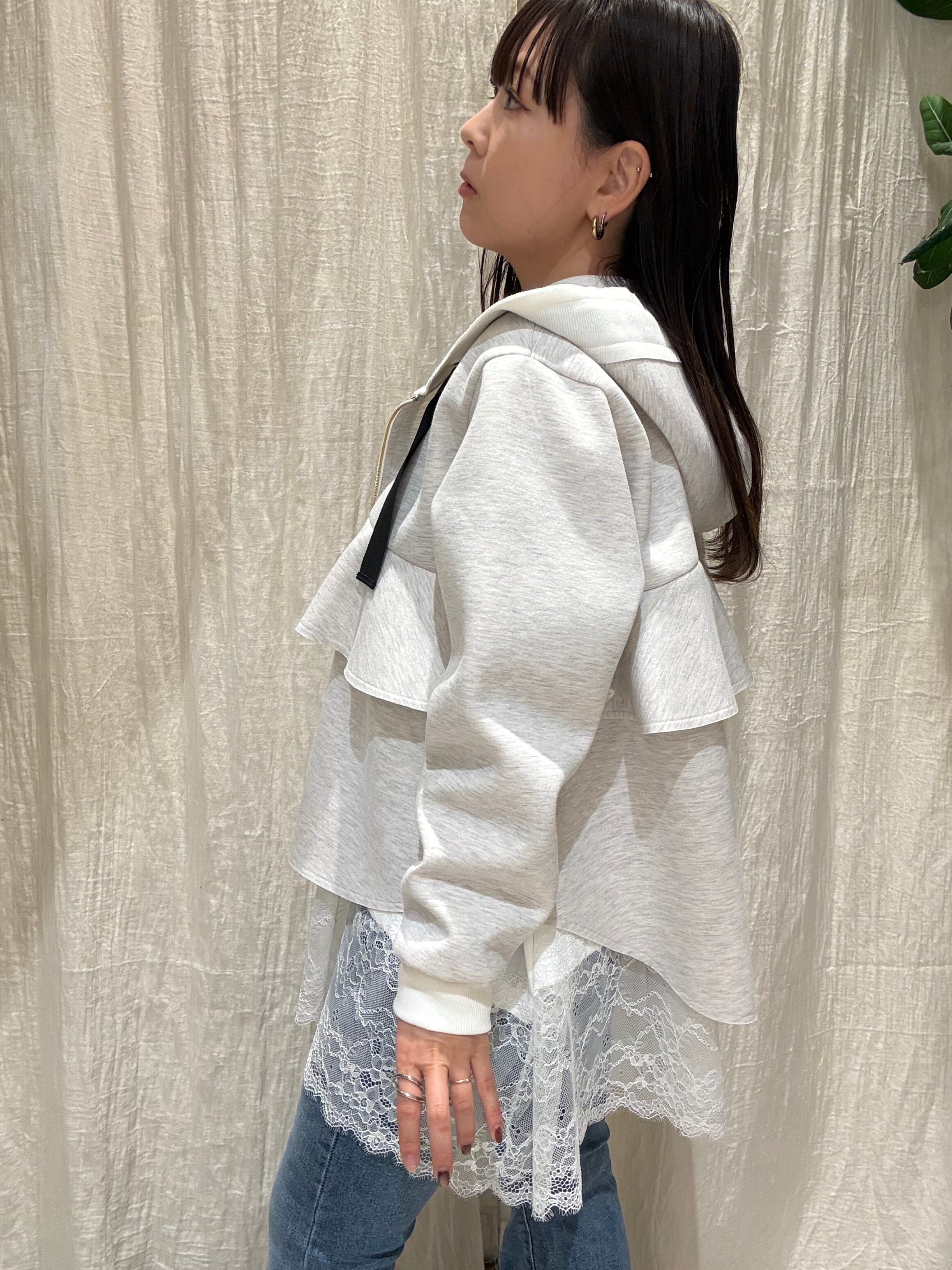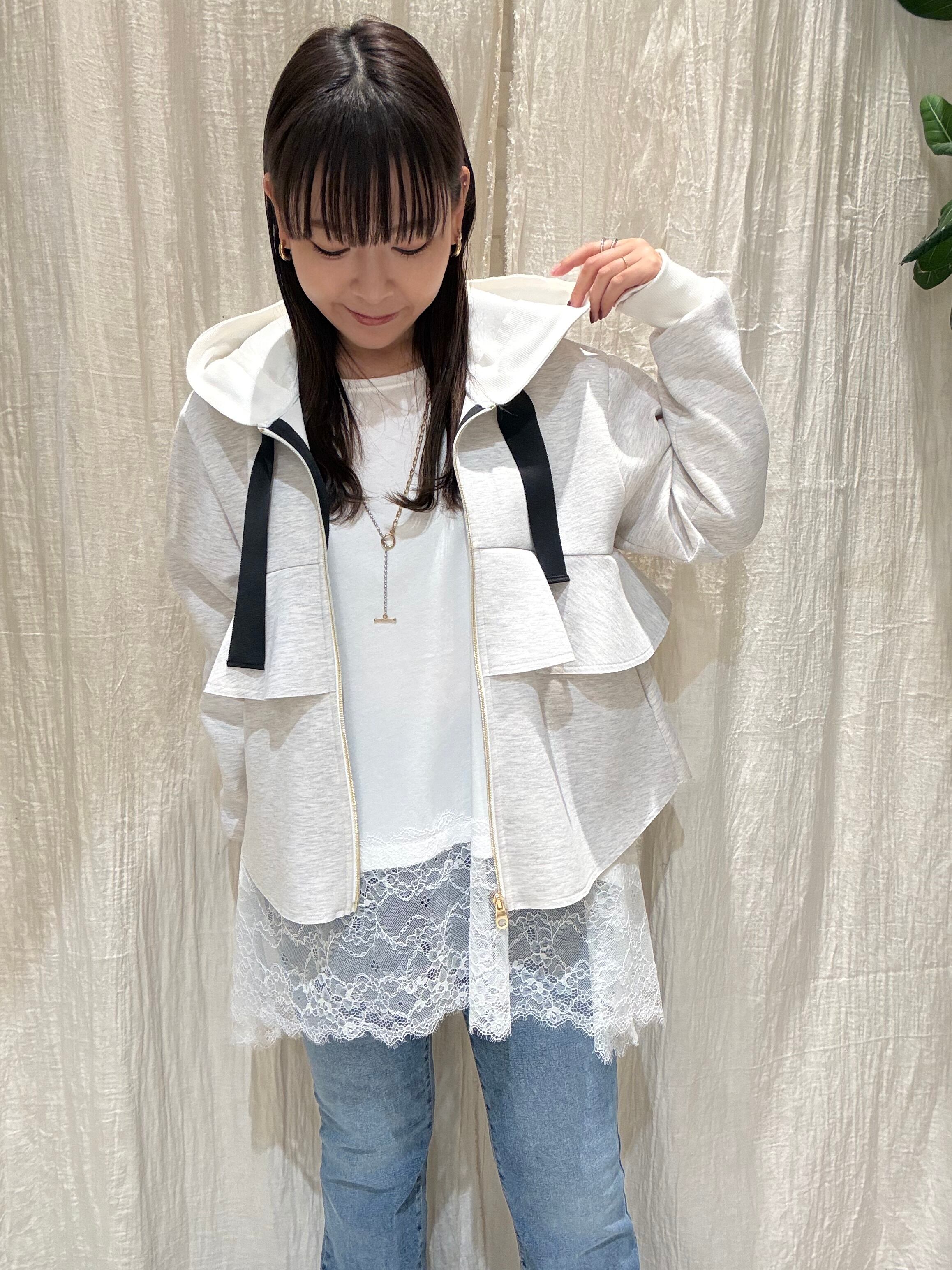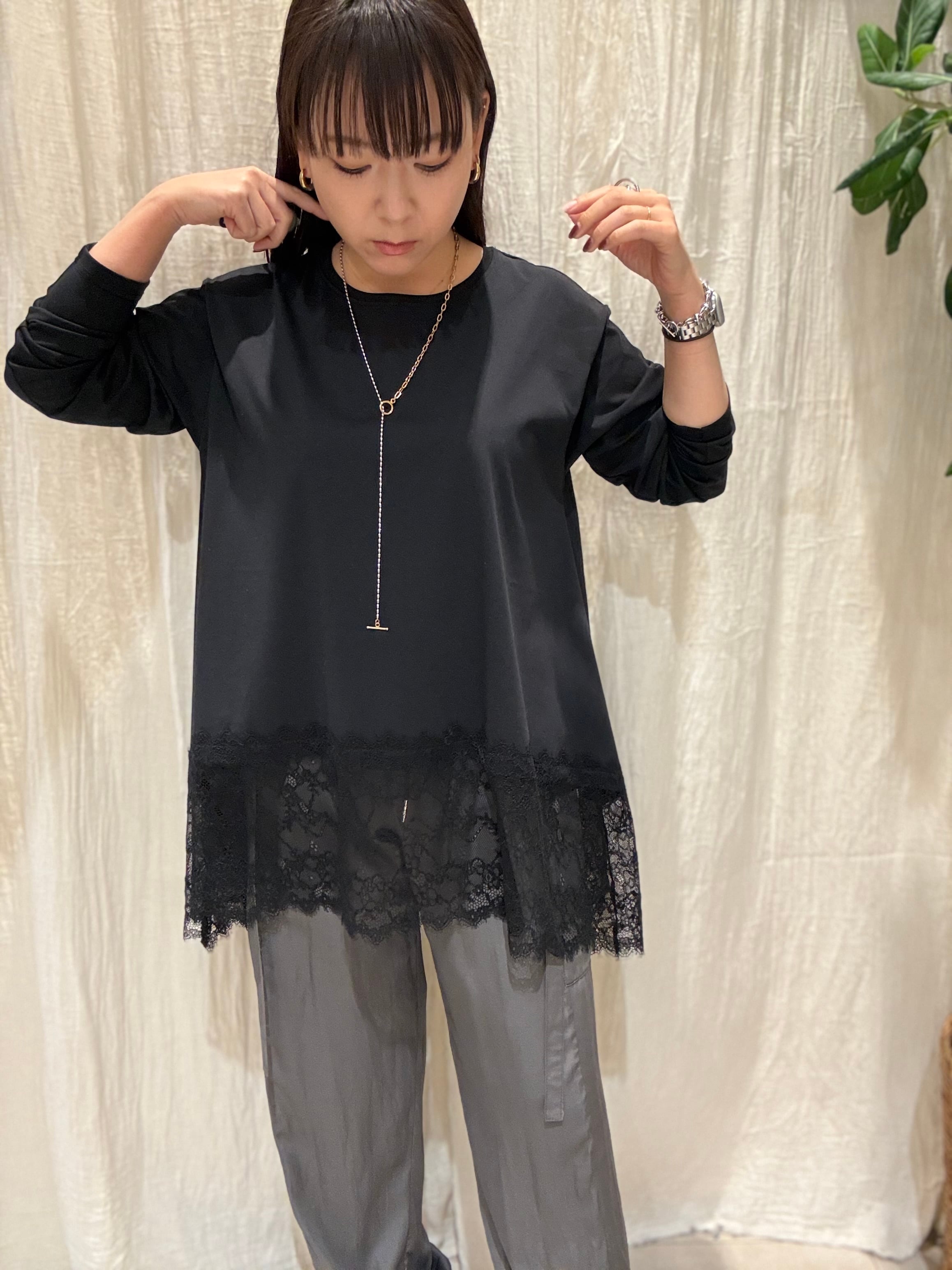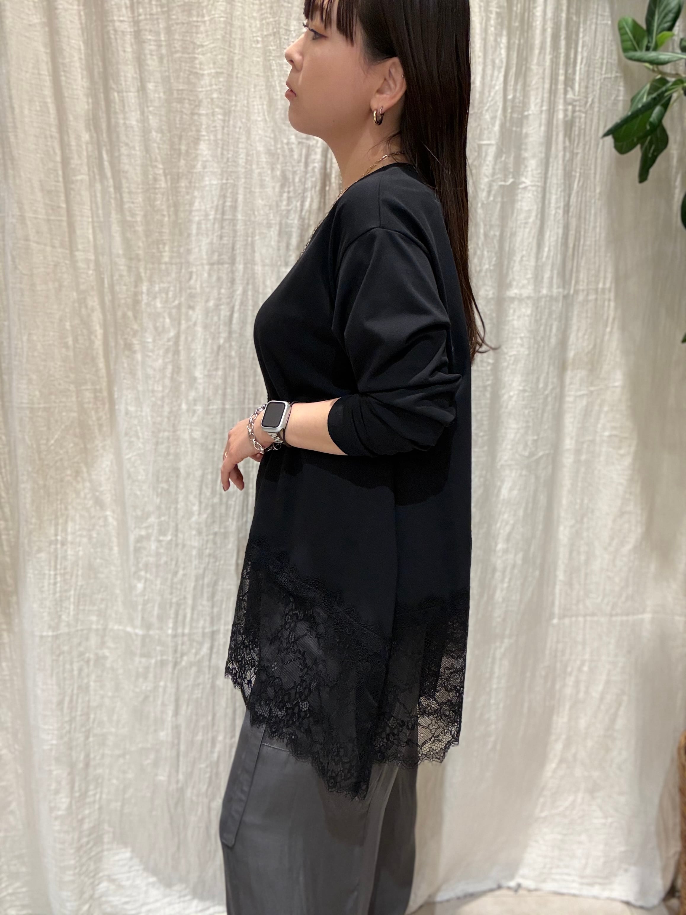 ロンTのようなシンプルな見た目に、裾のレースが映えるデザインです。