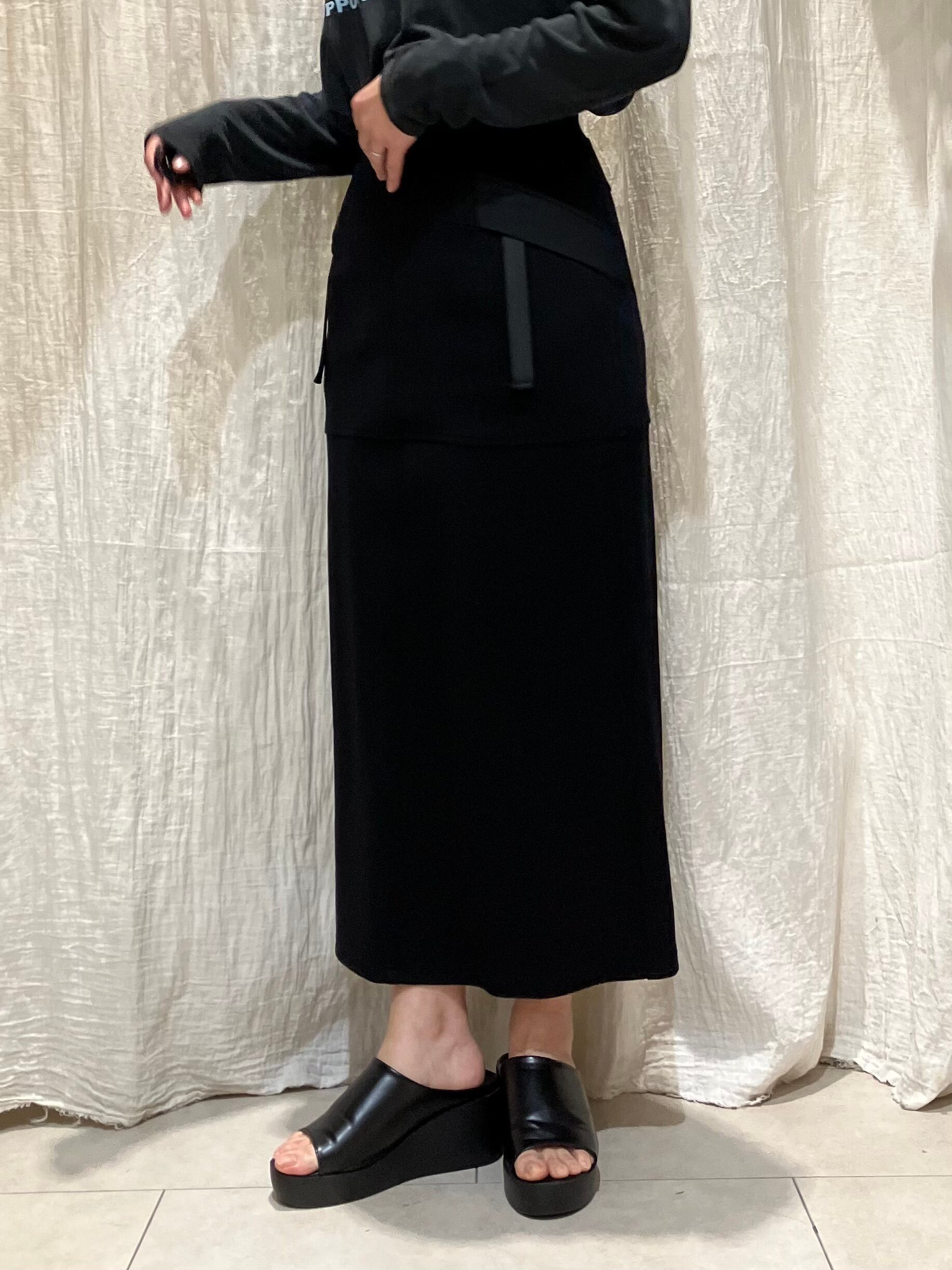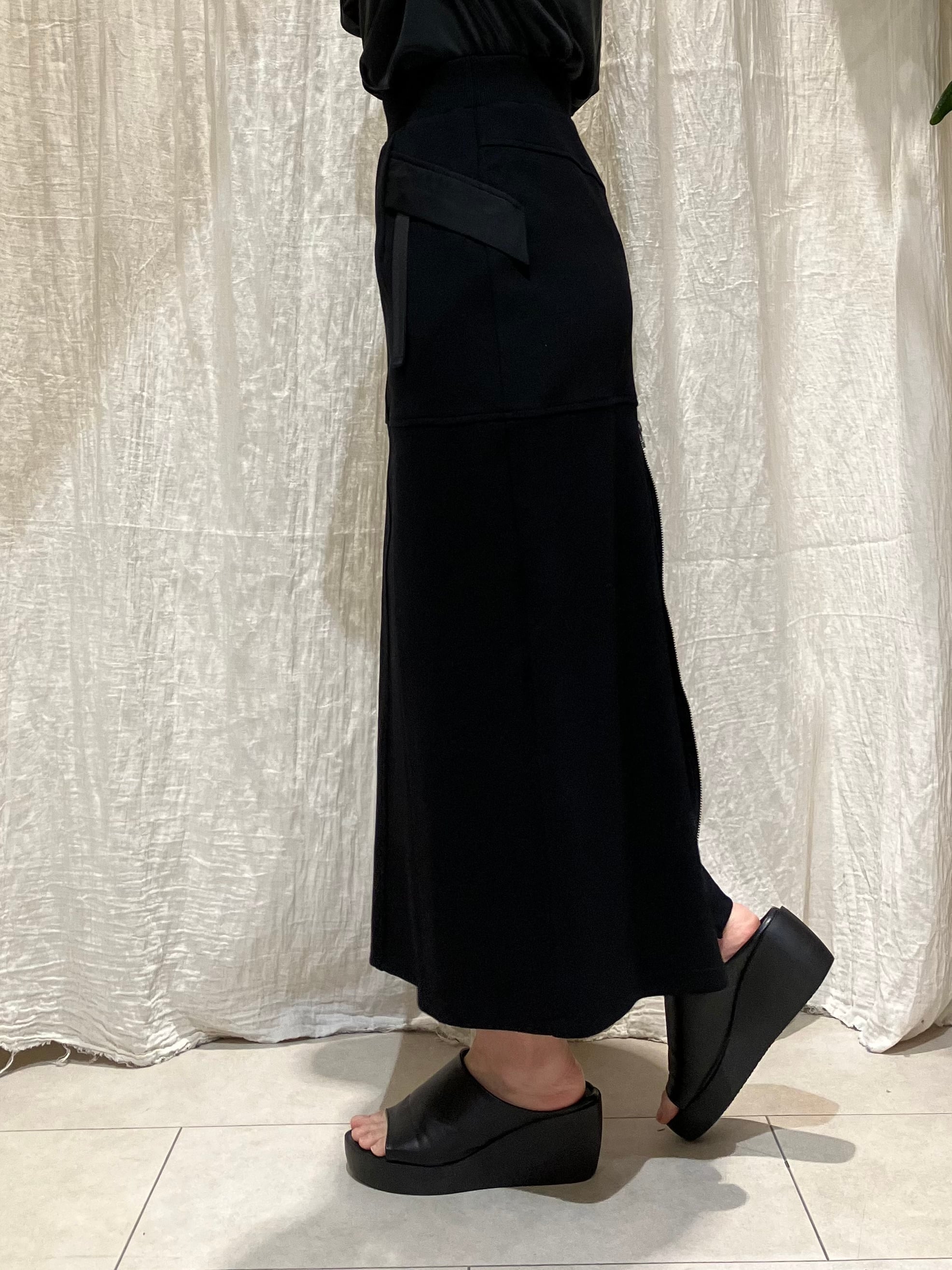 程よい厚みと伸縮性のあるポンチ素材を使用したフレアスカート。