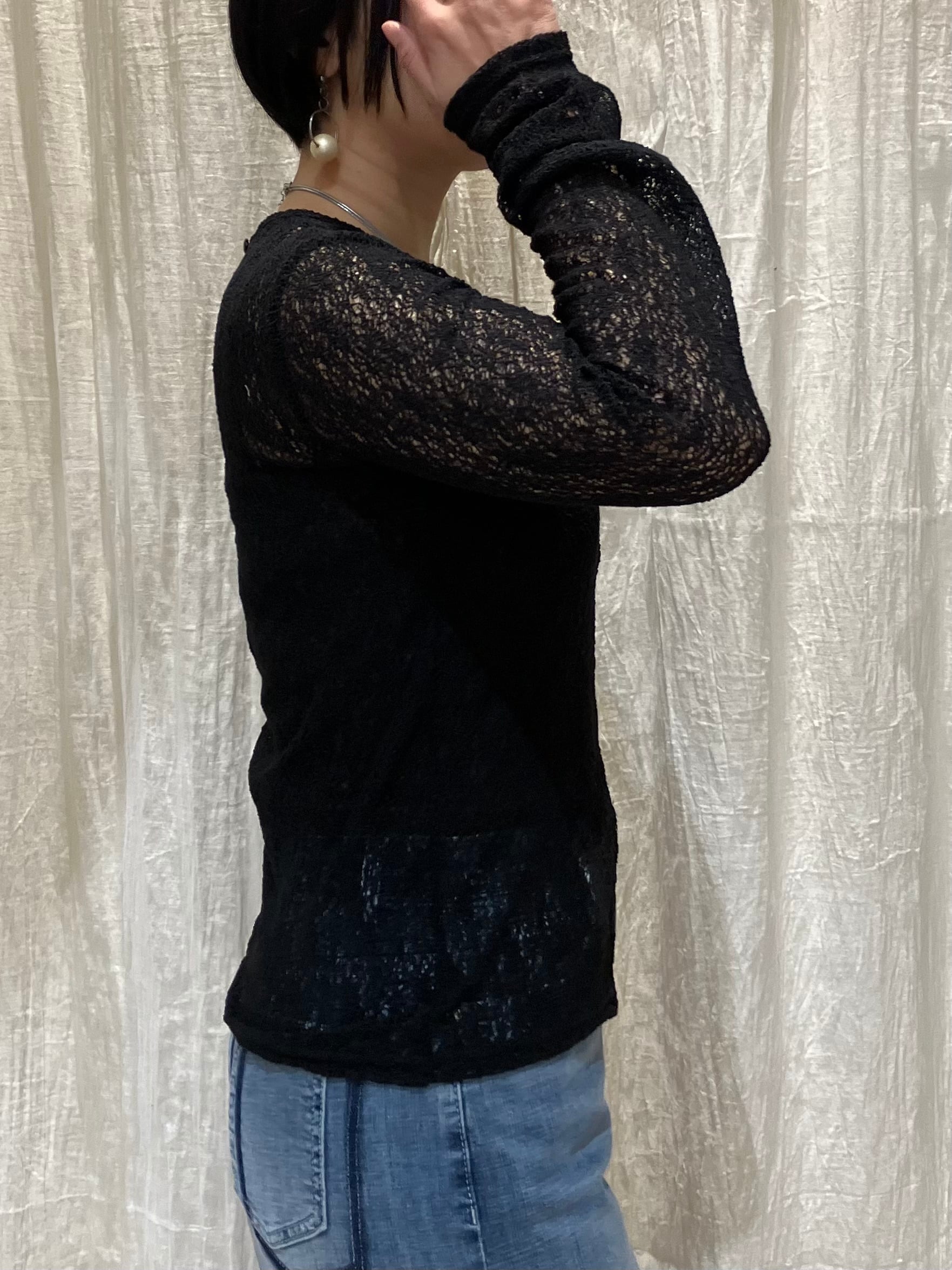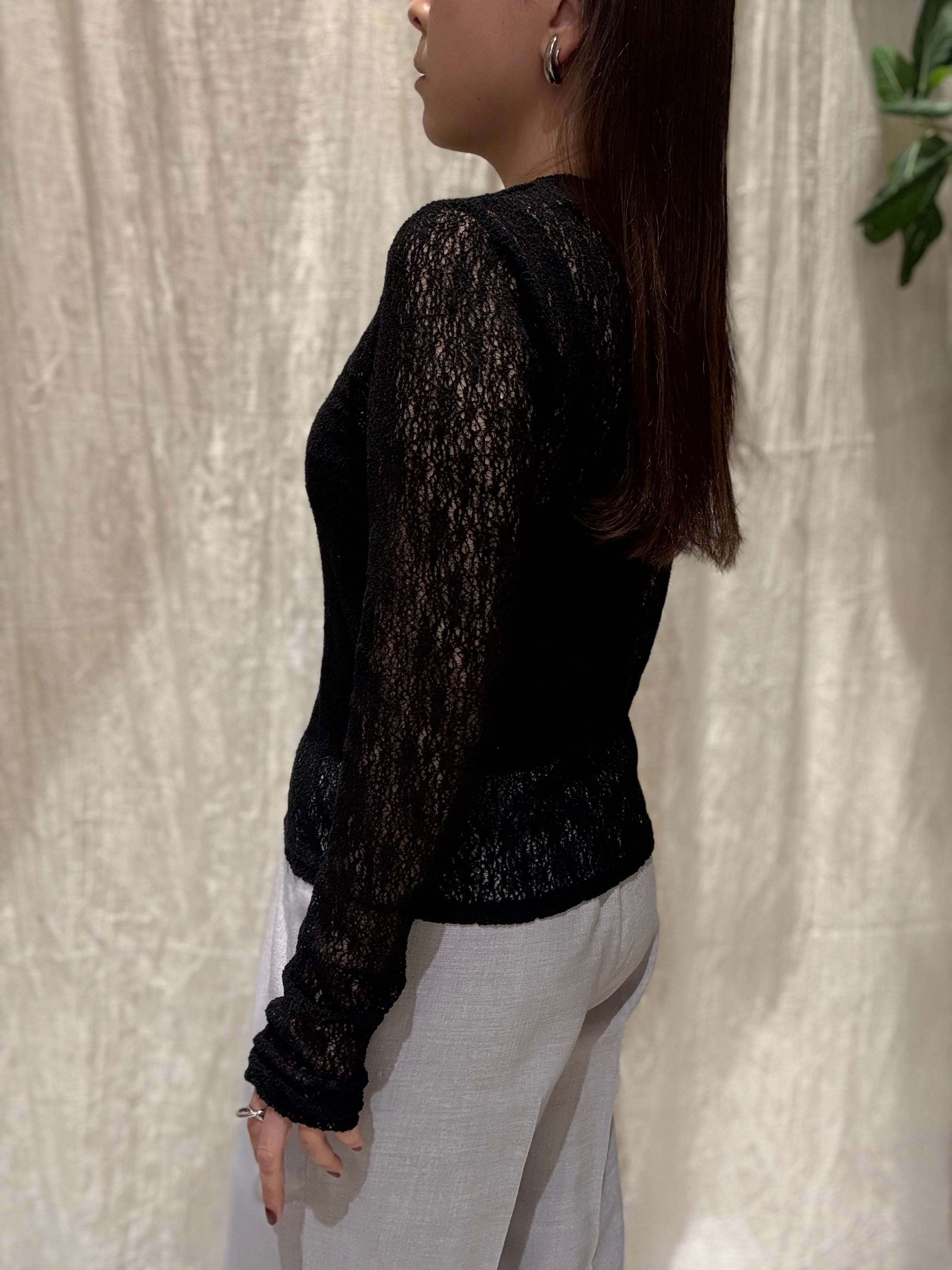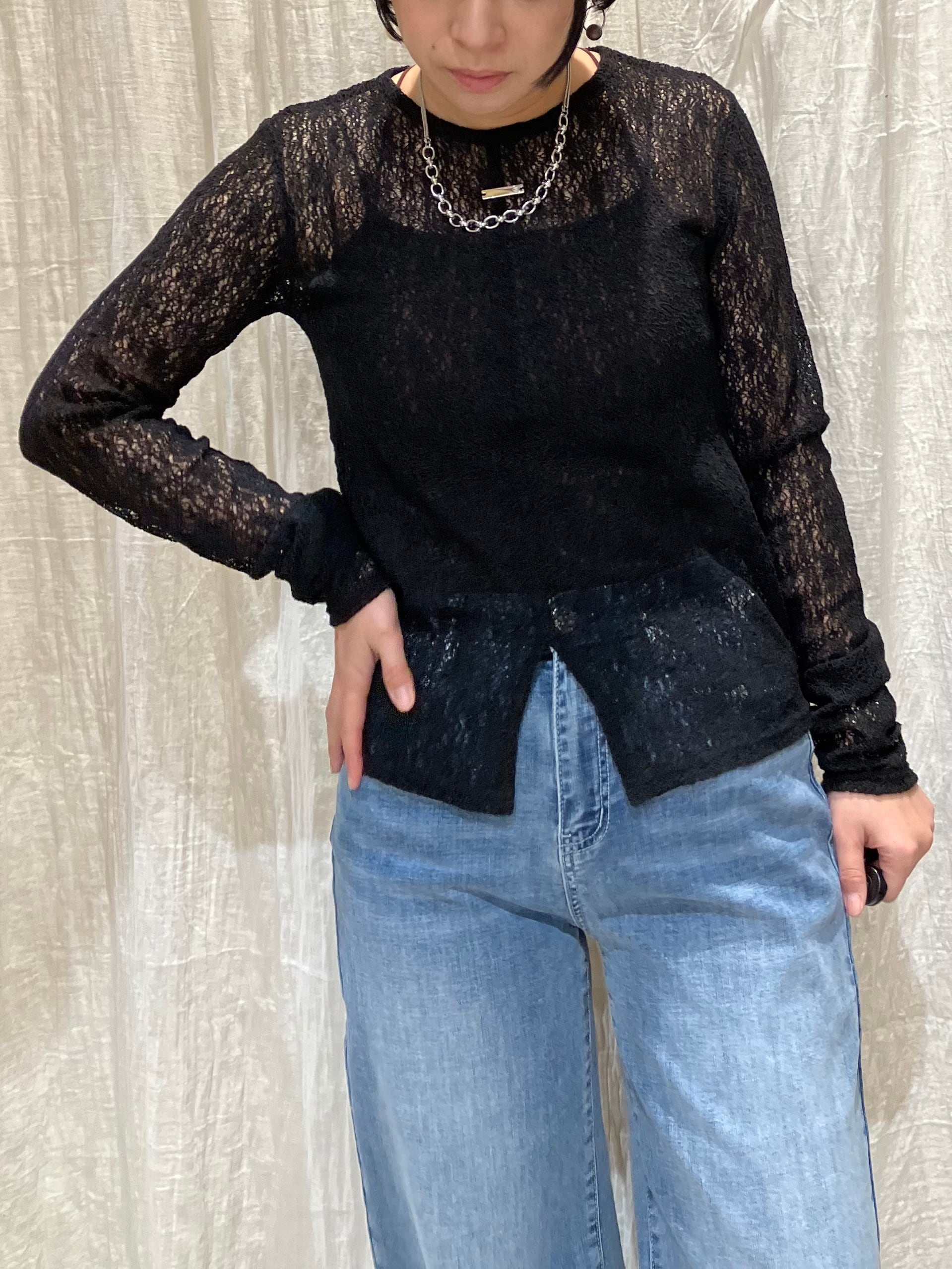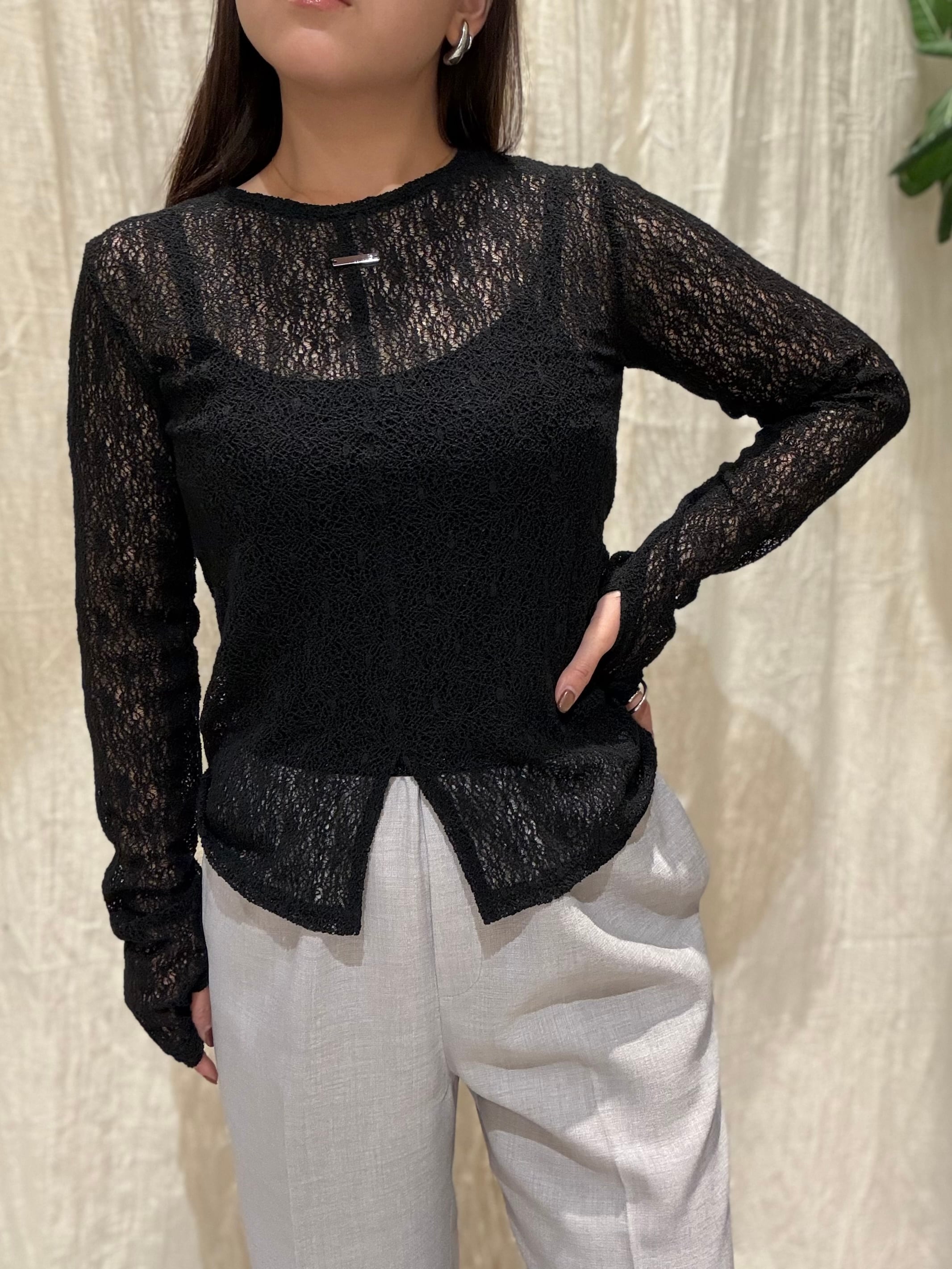 繊細なレースカットが上品な印象を与える、フィット感のあるトップスです。