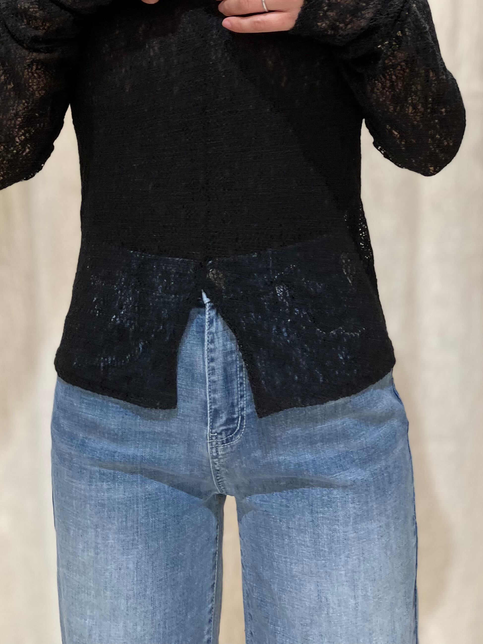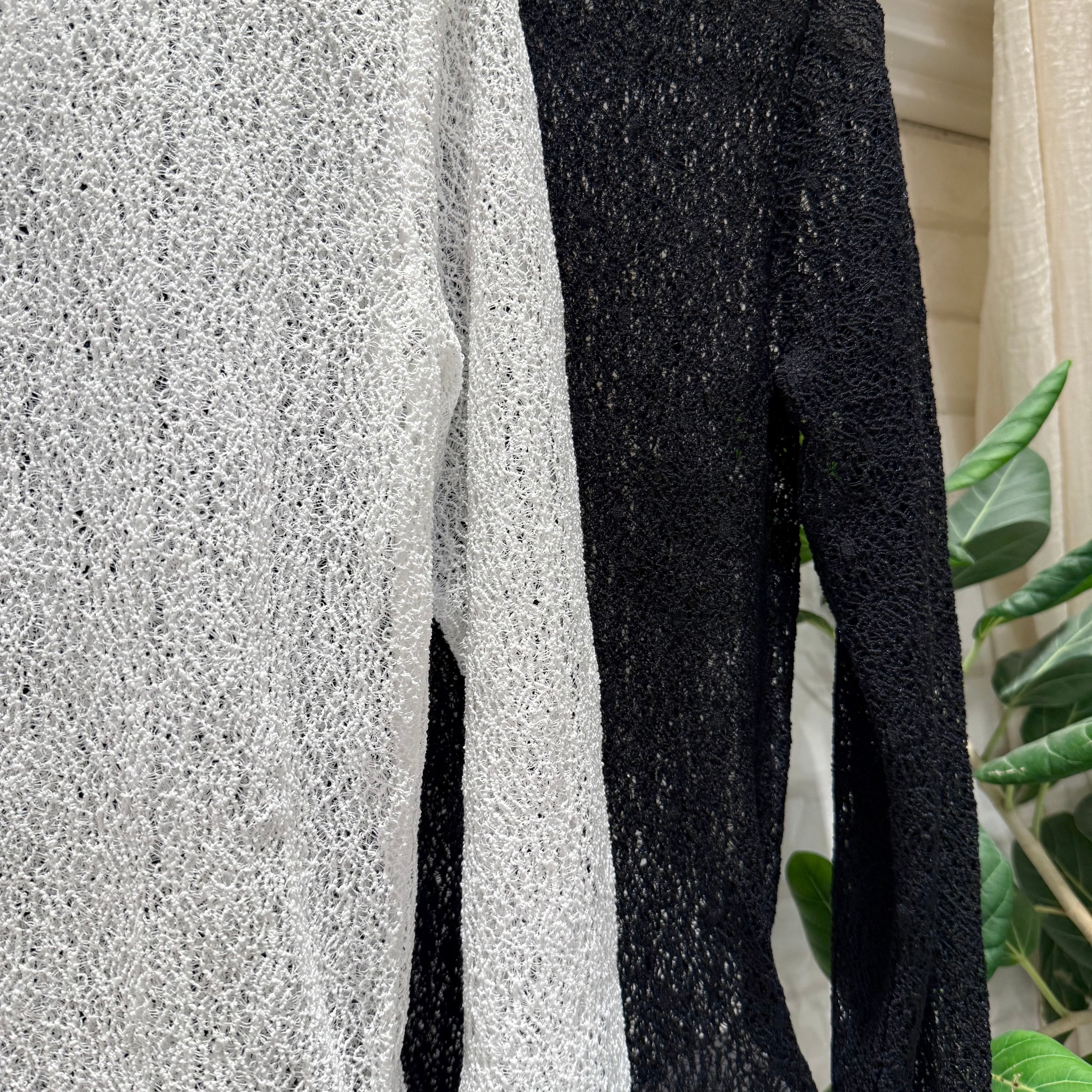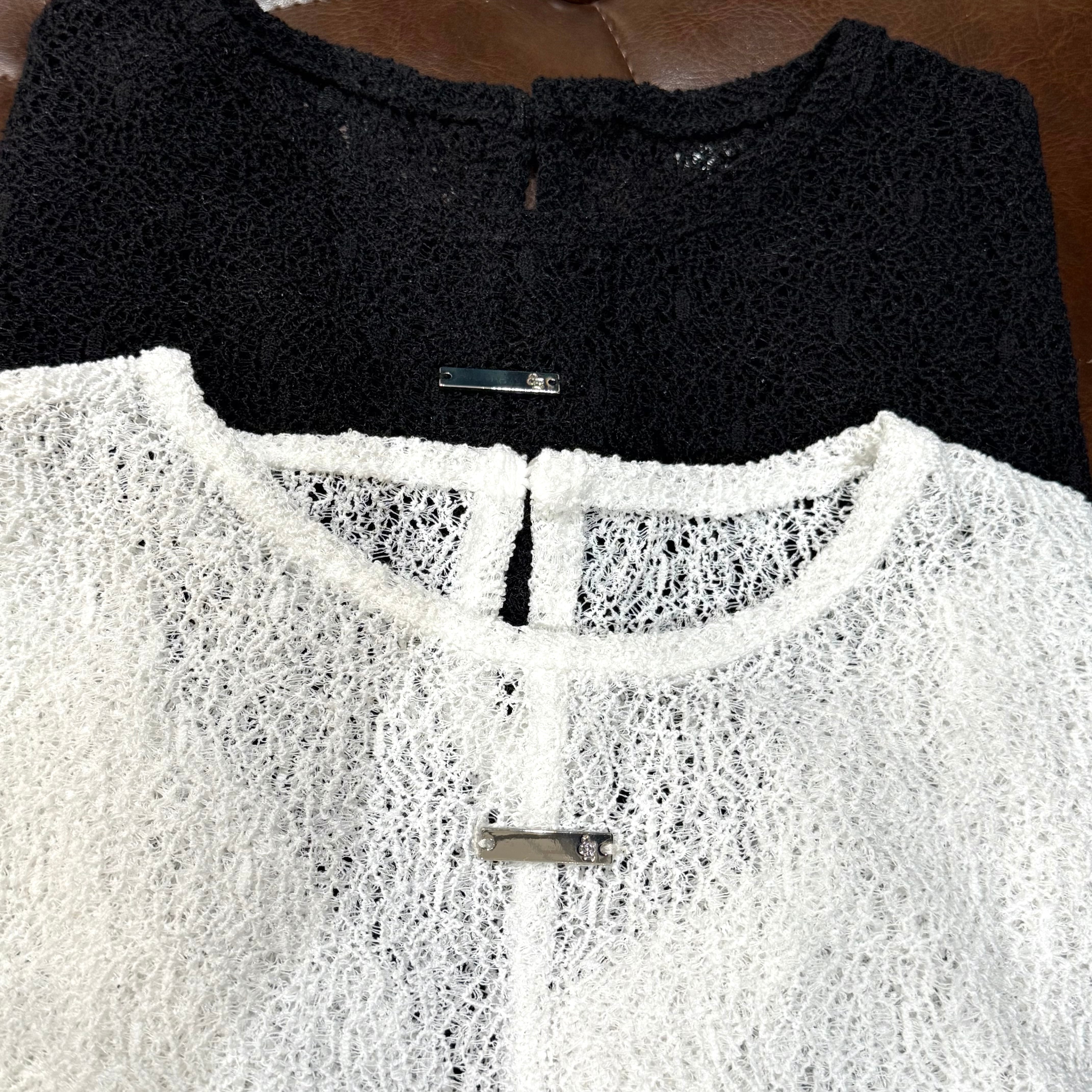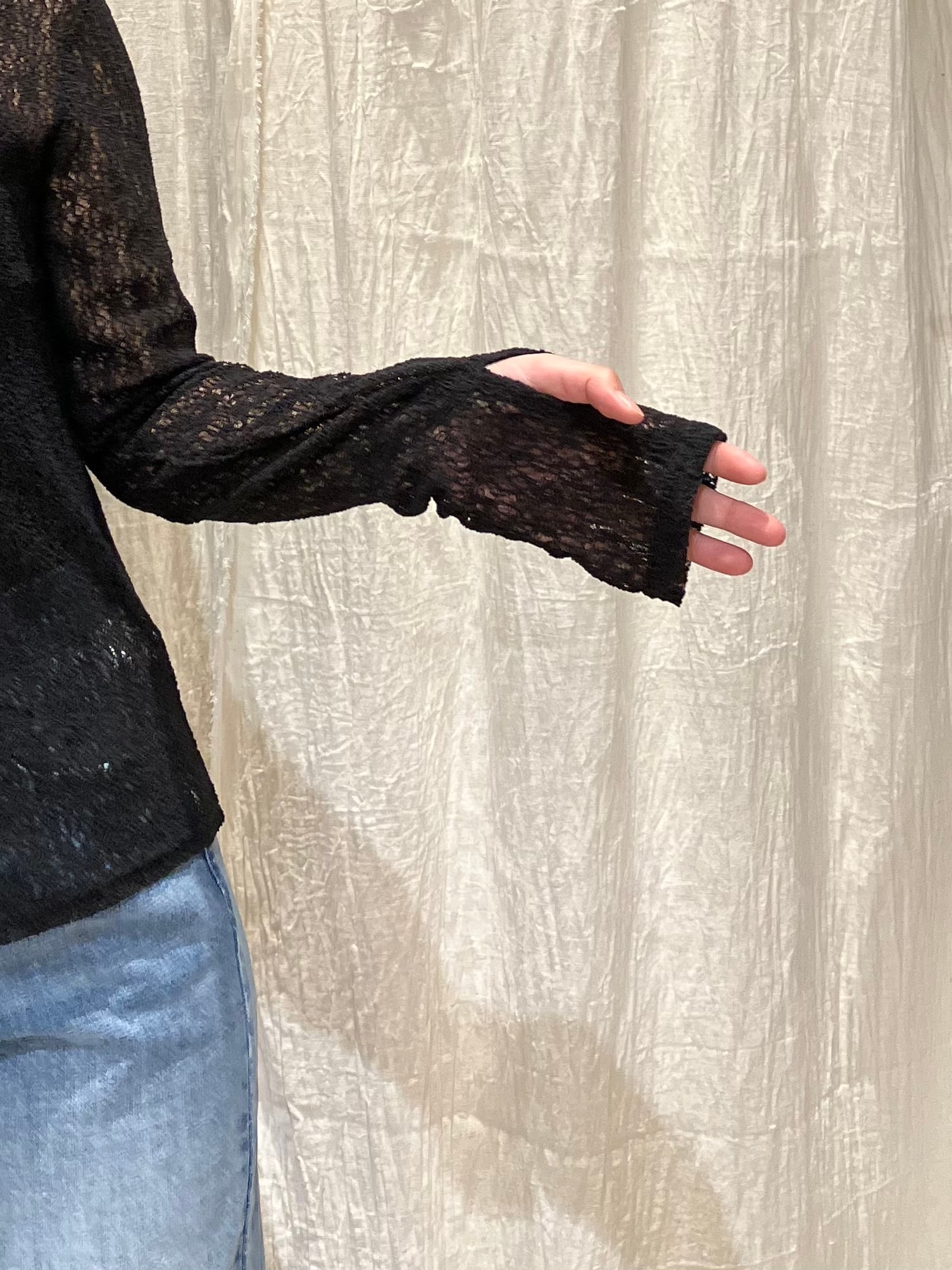 繊細なレースカットが上品な印象を与える、フィット感のあるトップスです。