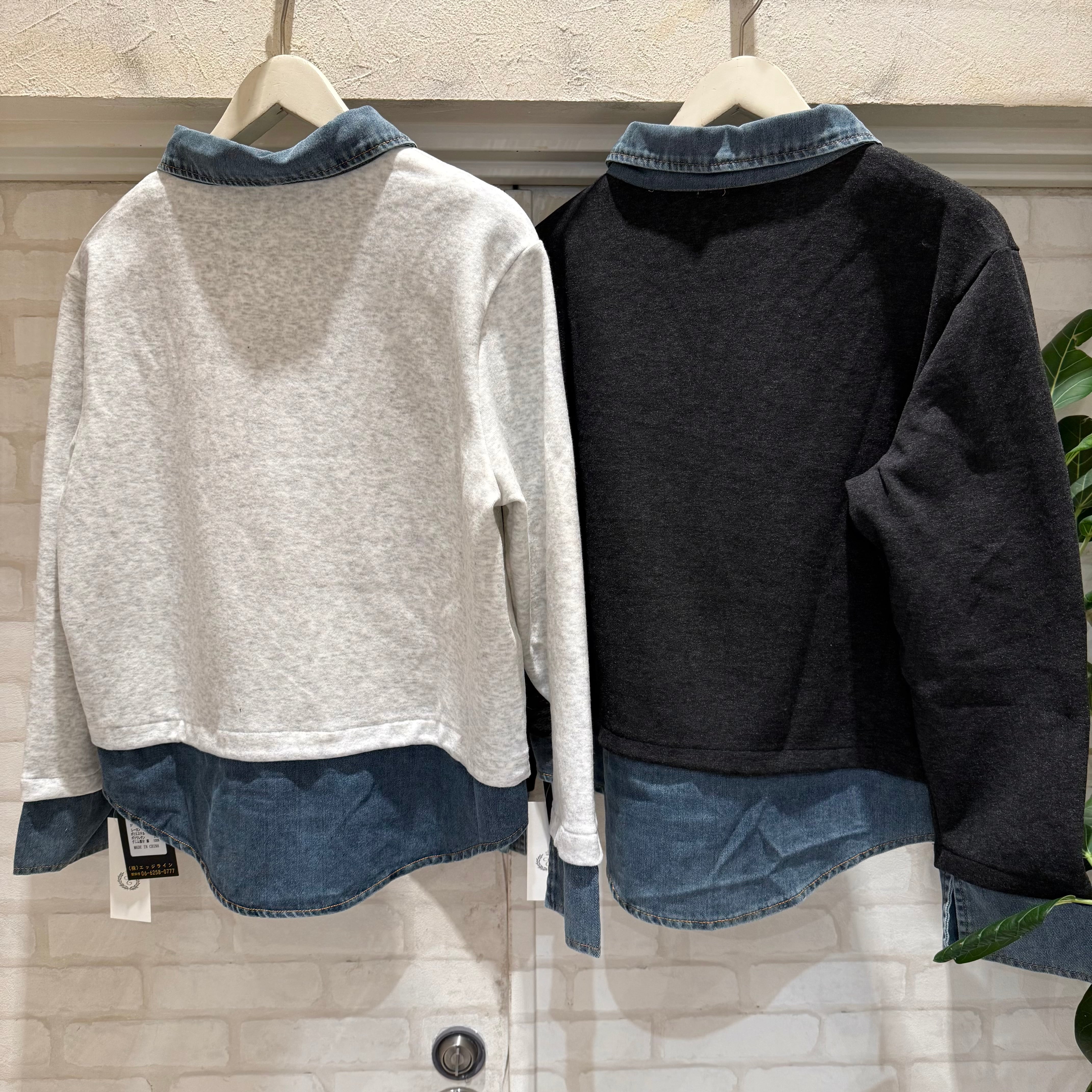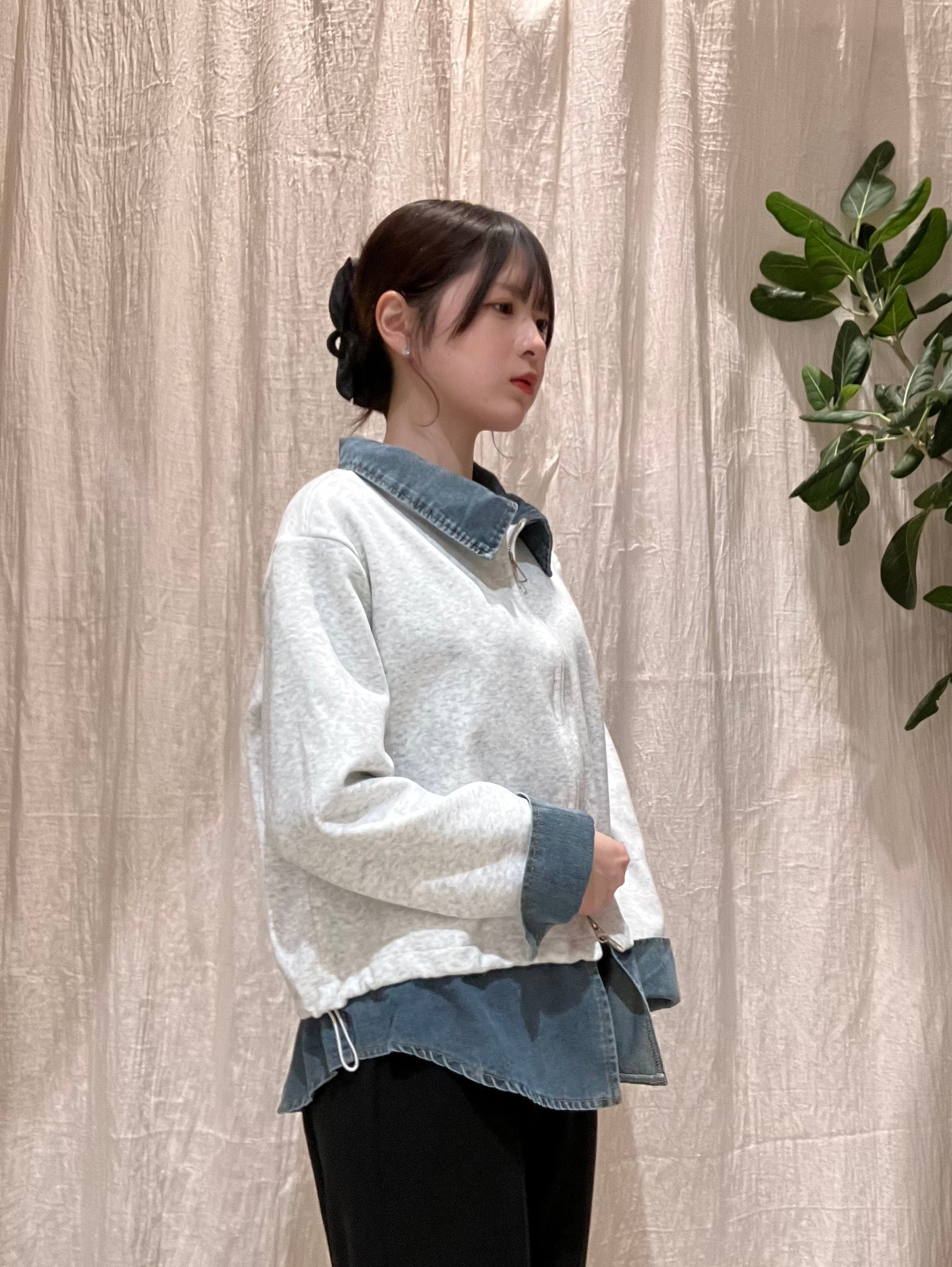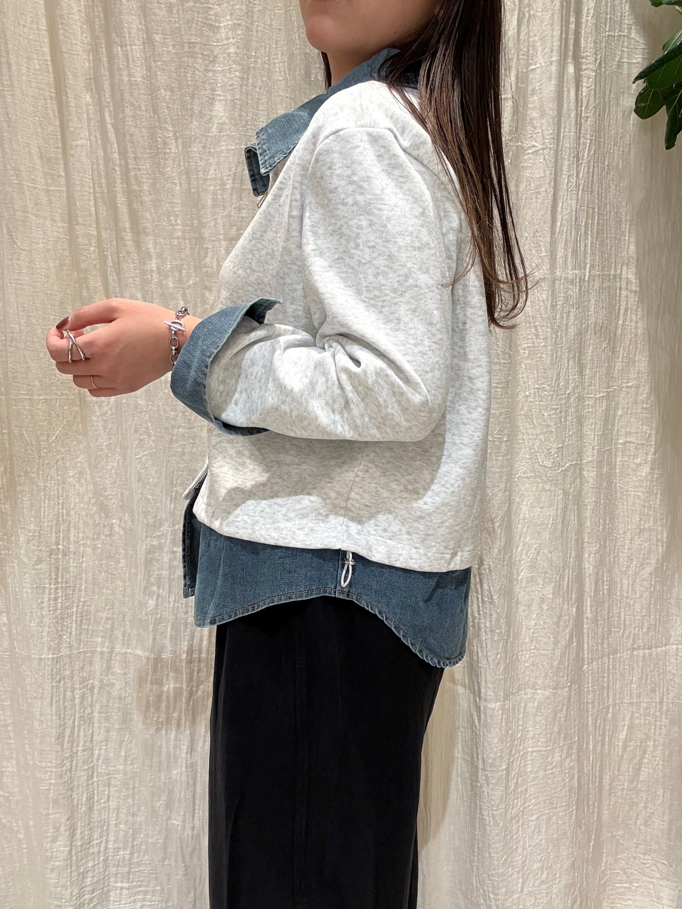 デニム切替の袖がアクセントになった、カジュアル感たっぷりのスウェットトップスです。