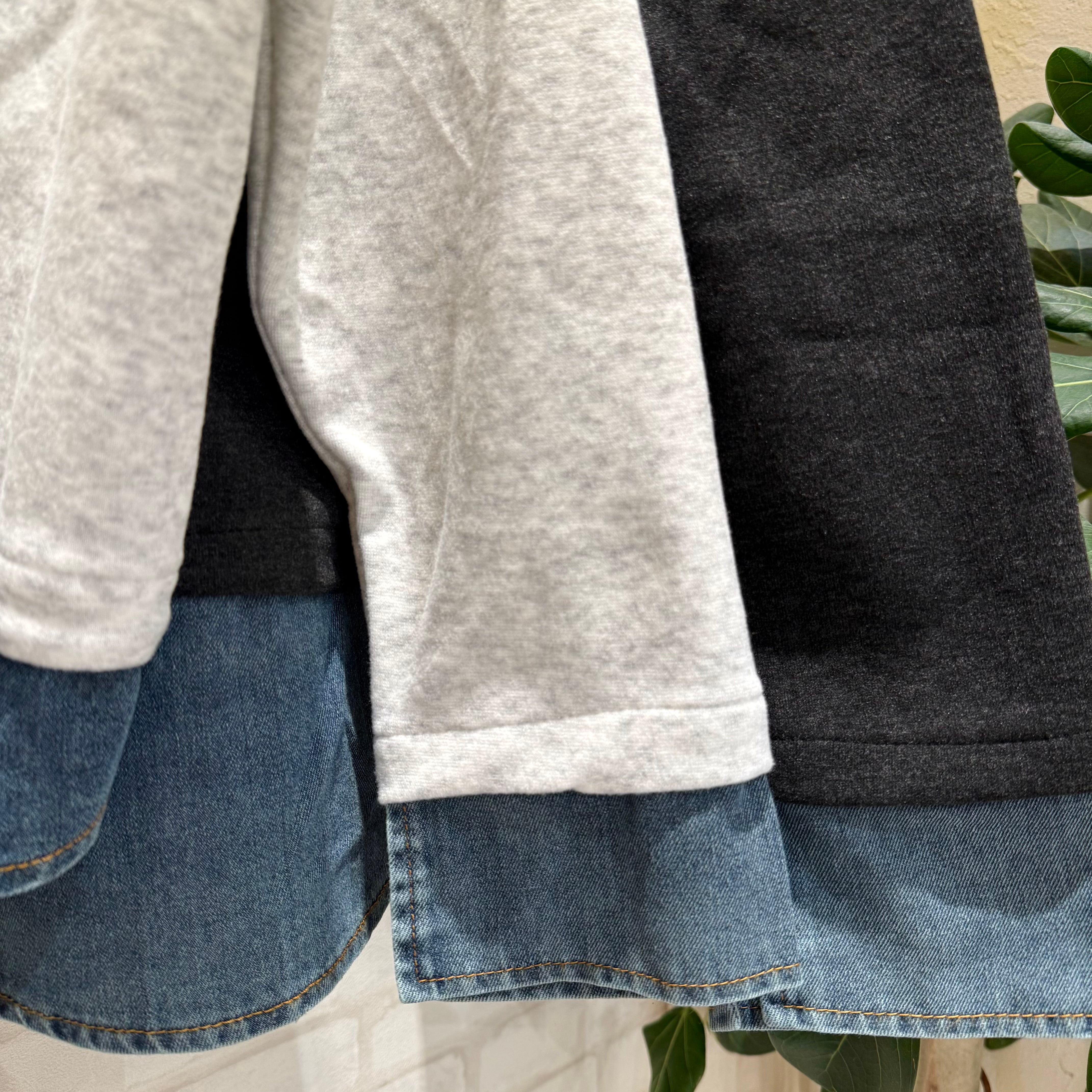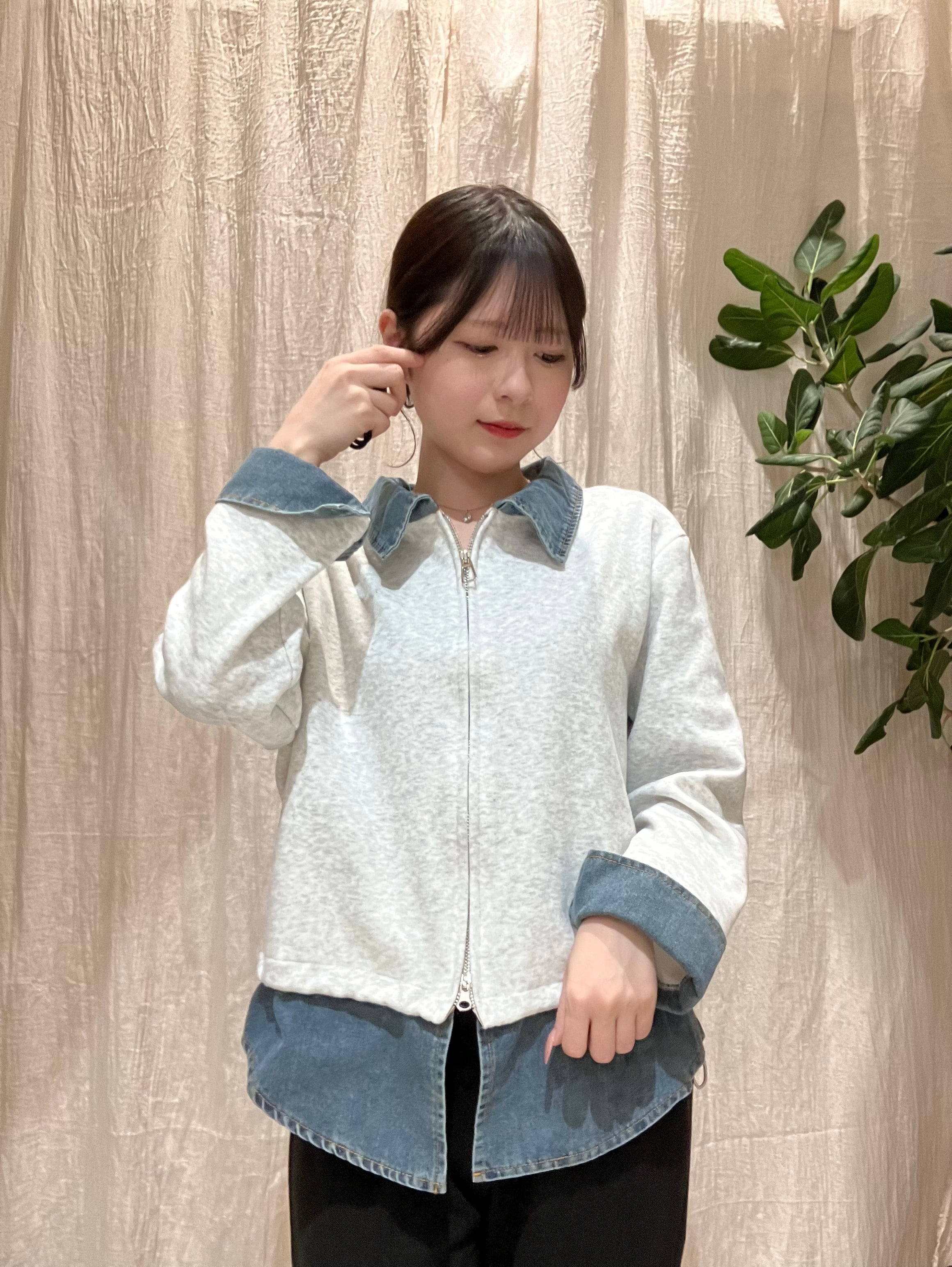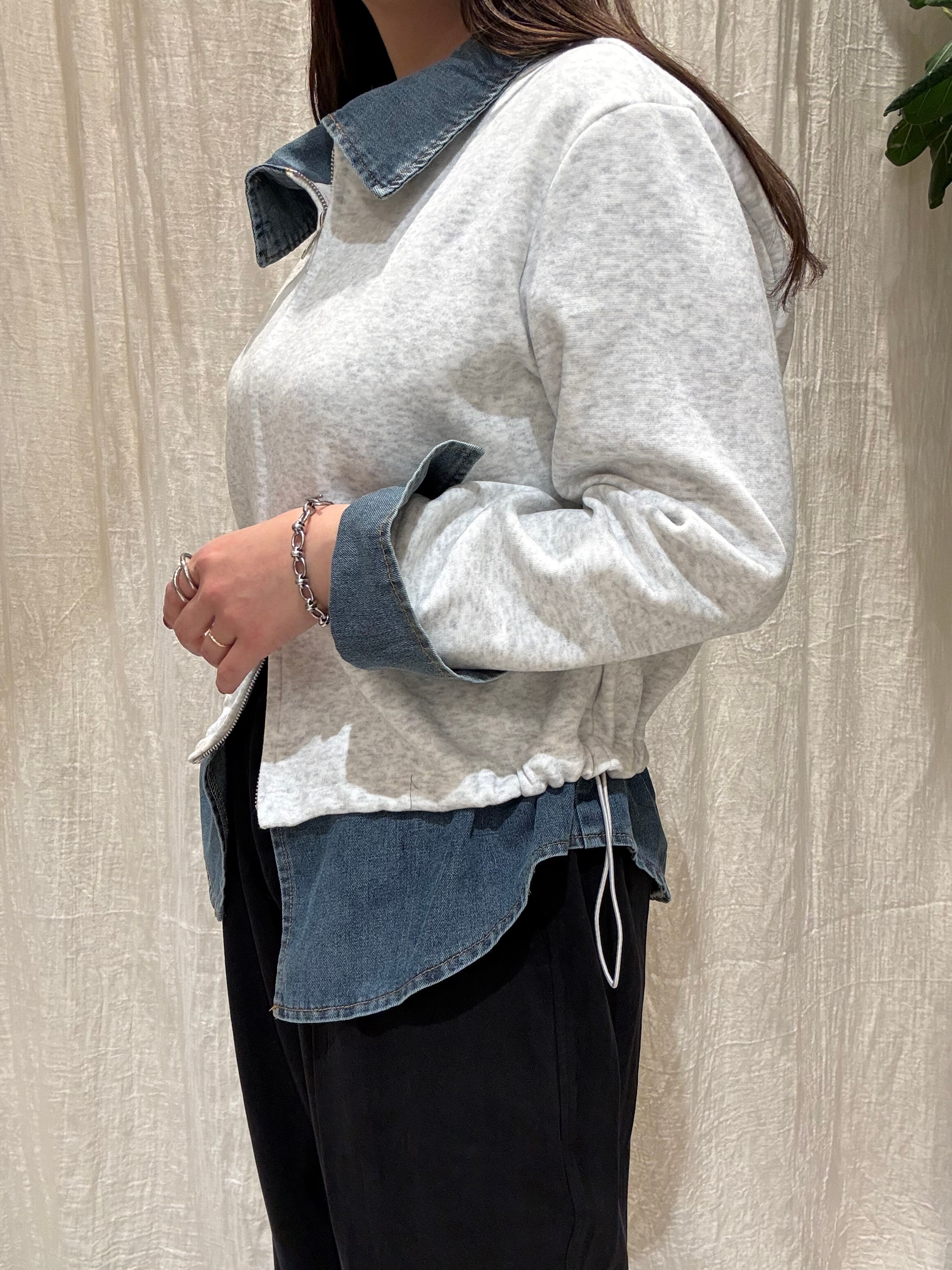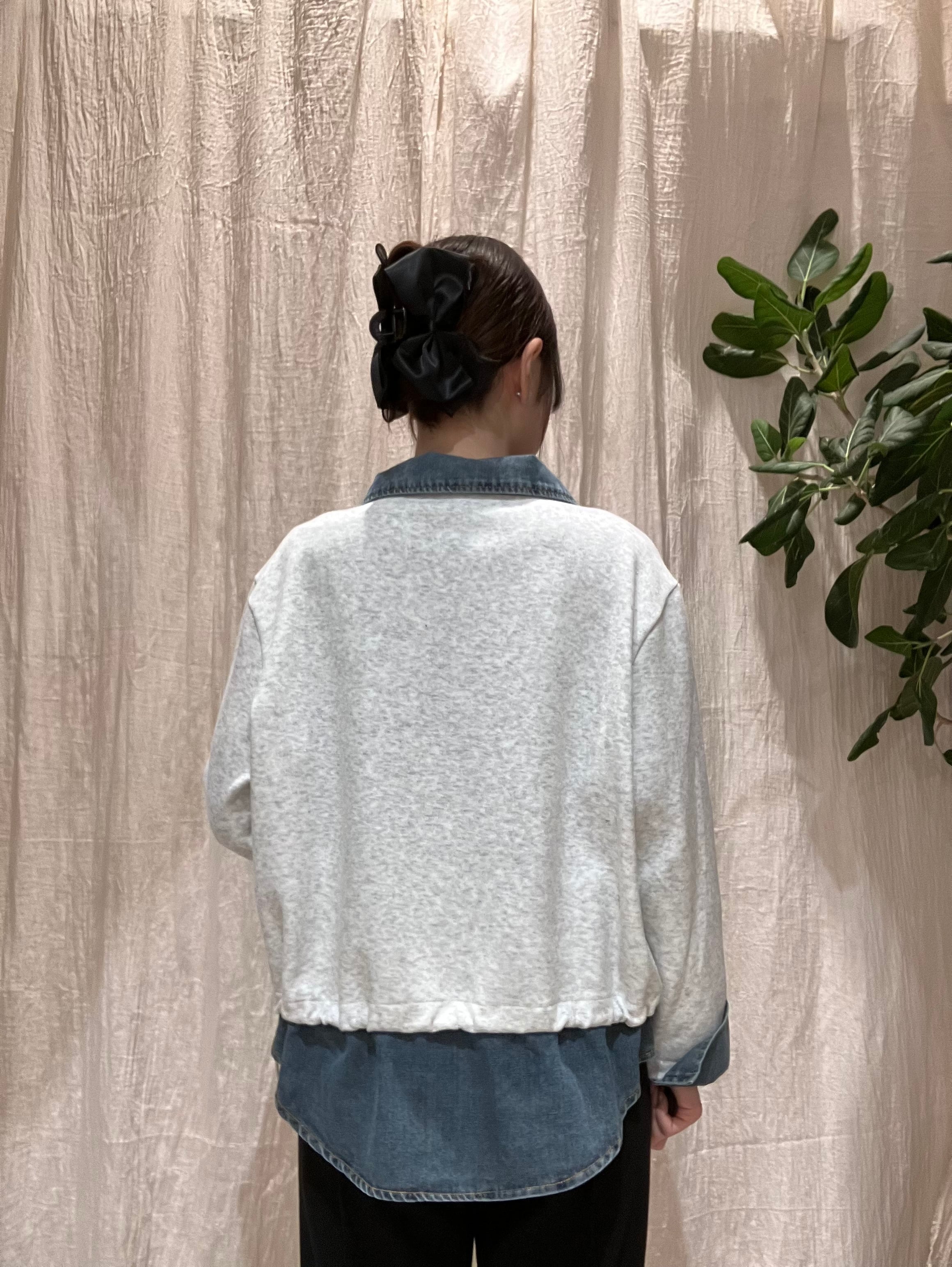 デニム切替の袖がアクセントになった、カジュアル感たっぷりのスウェットトップスです。