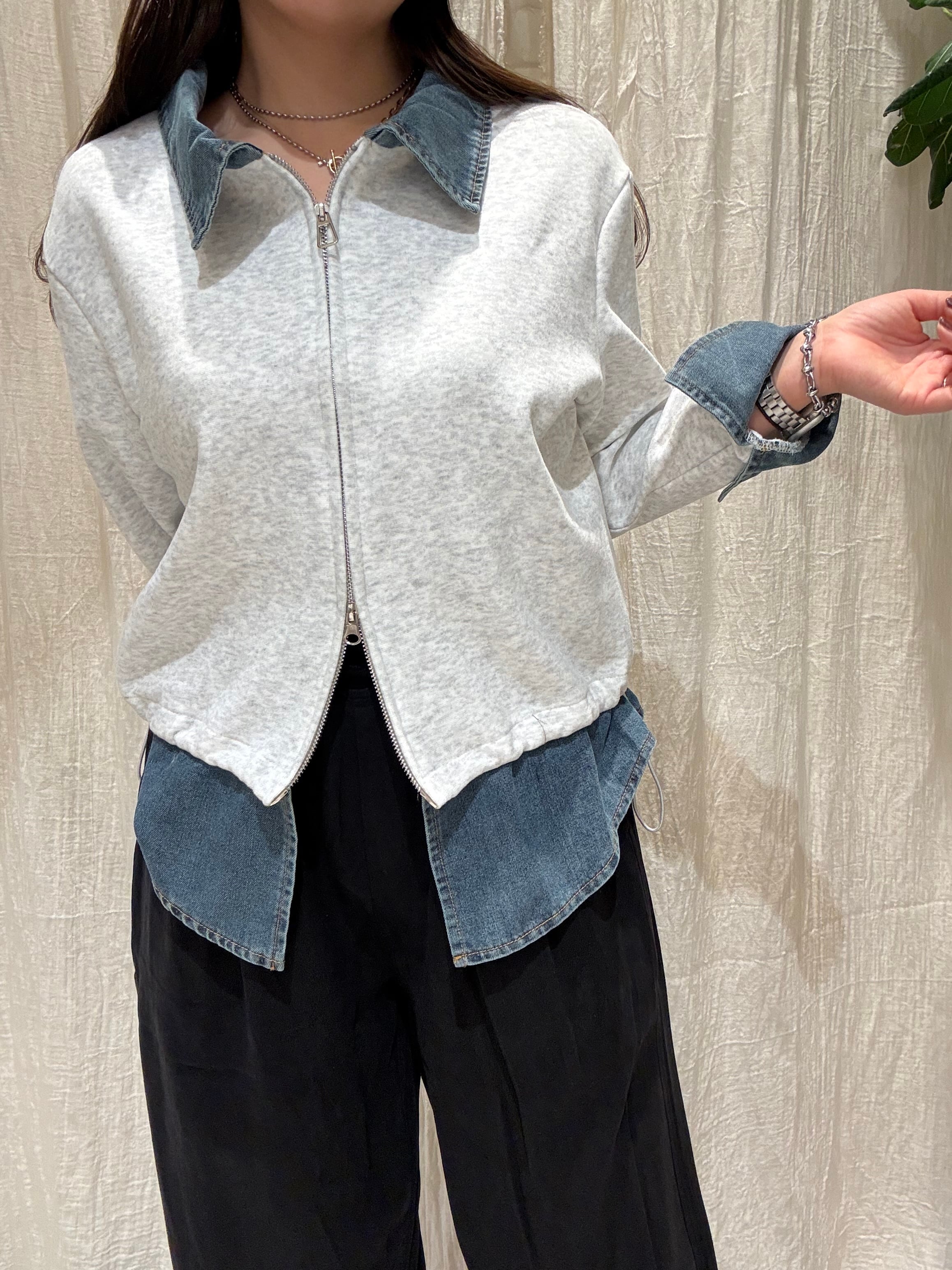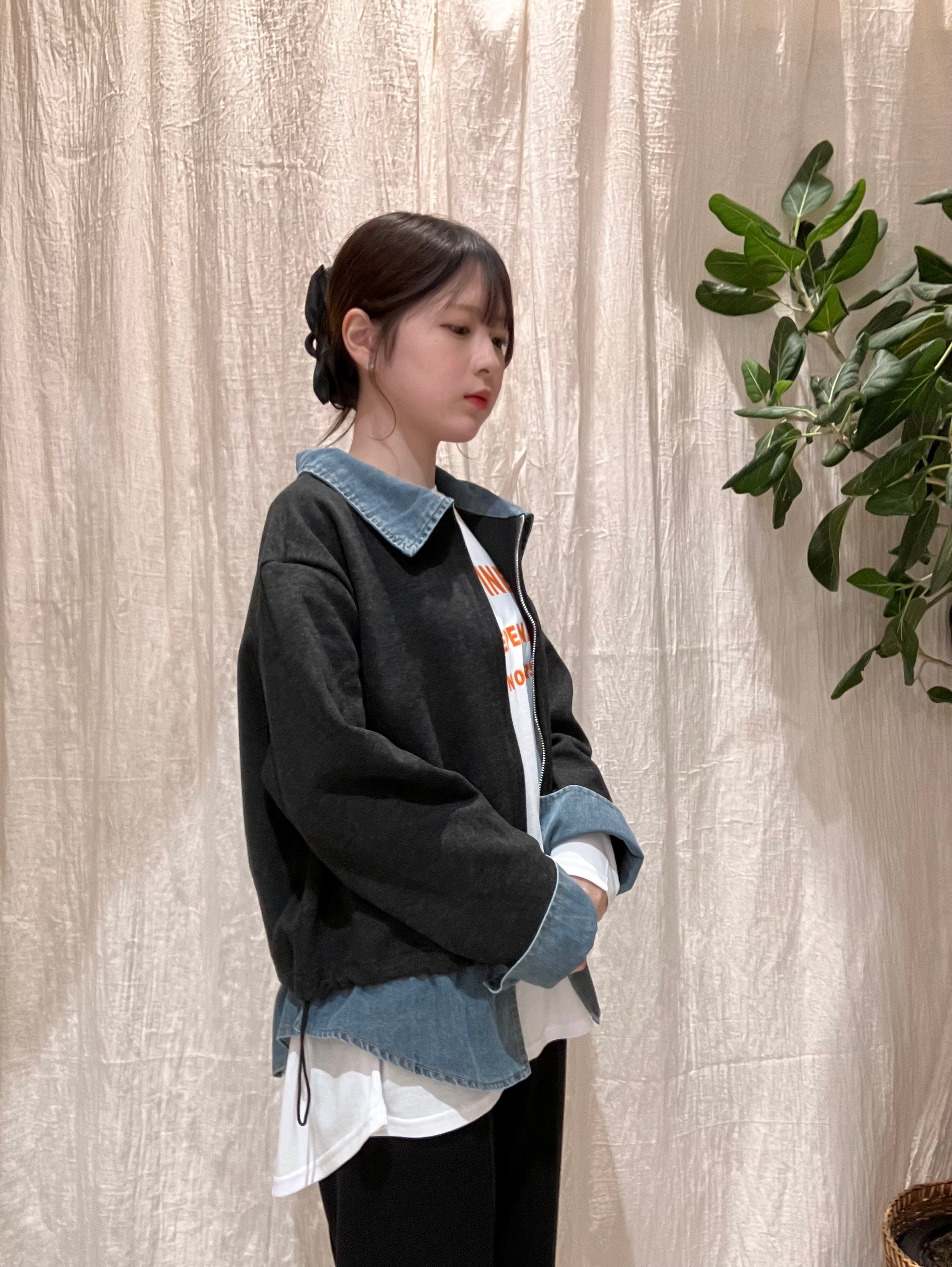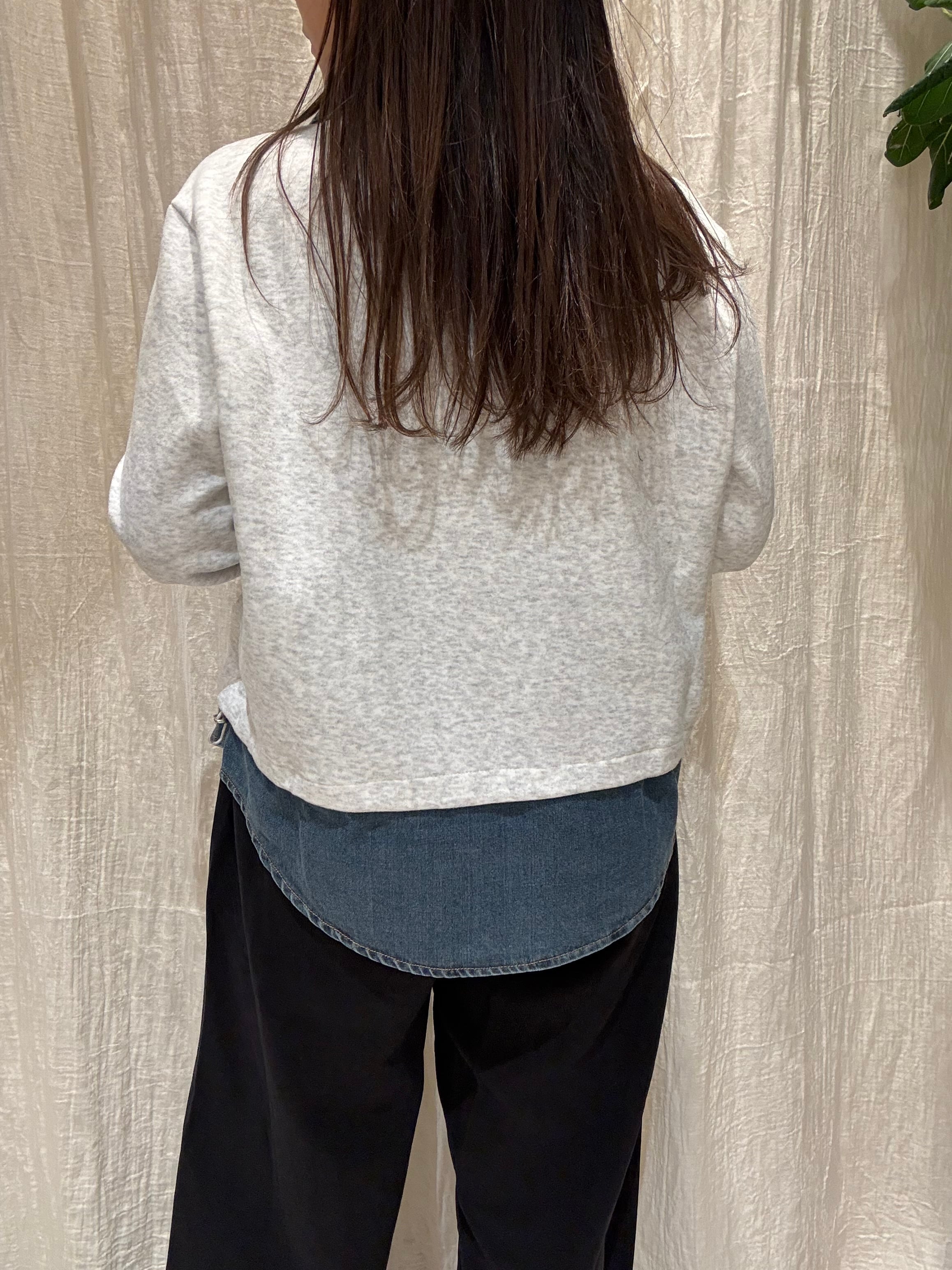 フロントジップ仕様でさっと羽織れるため、軽アウター感覚でも着用できます。