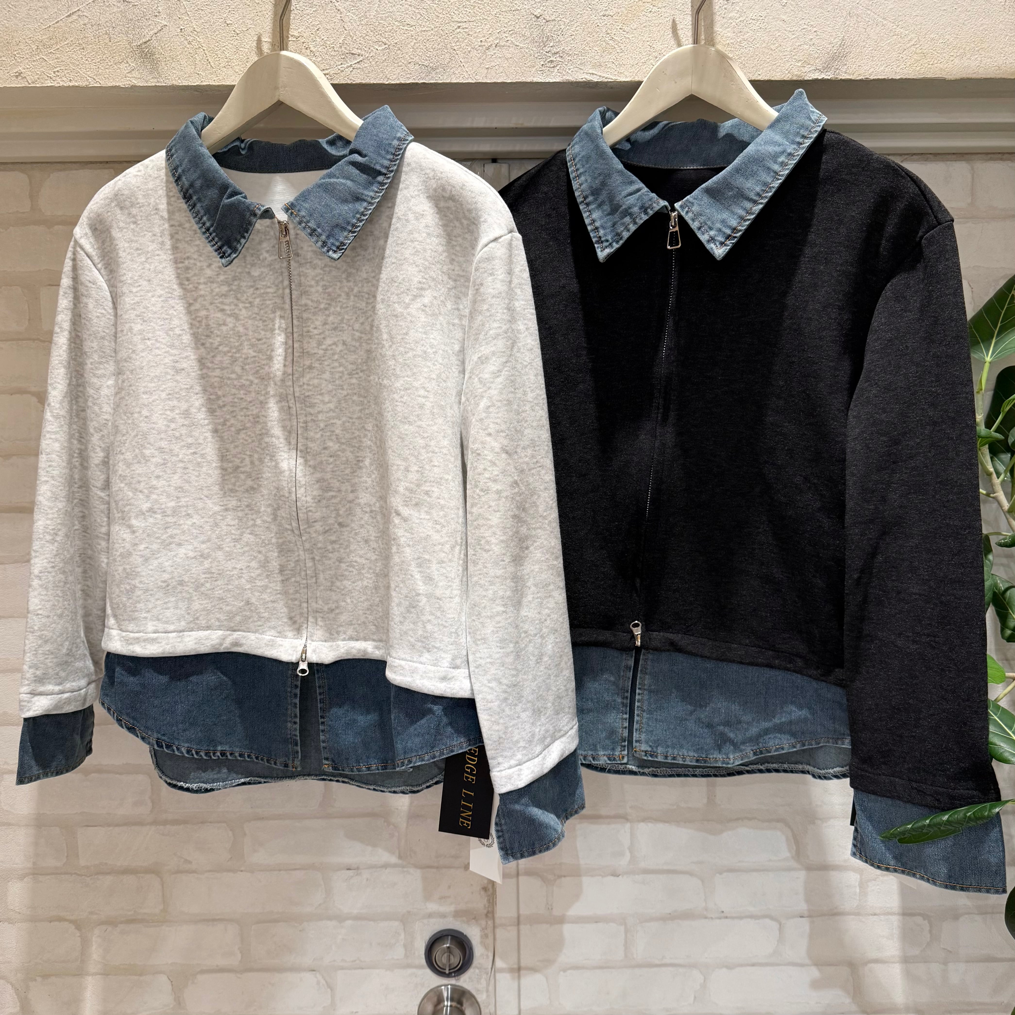 デニム切替スウェットトップス EDGE LINE(エッジライン)