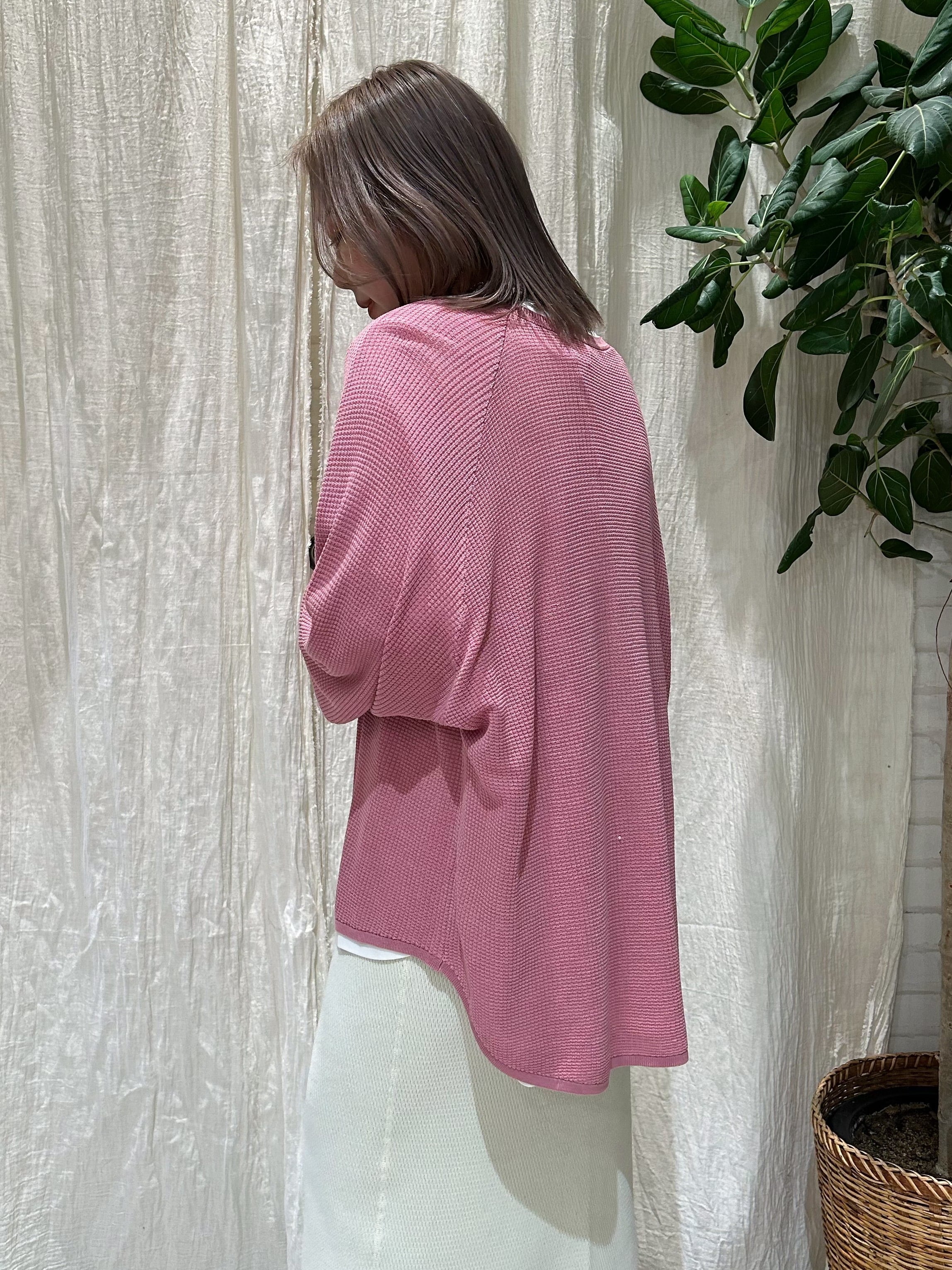 肩から袖にかけて丸みのあるドルマンスリーブが、リラックス感のある着心地と自然な体型カバーを叶えます。