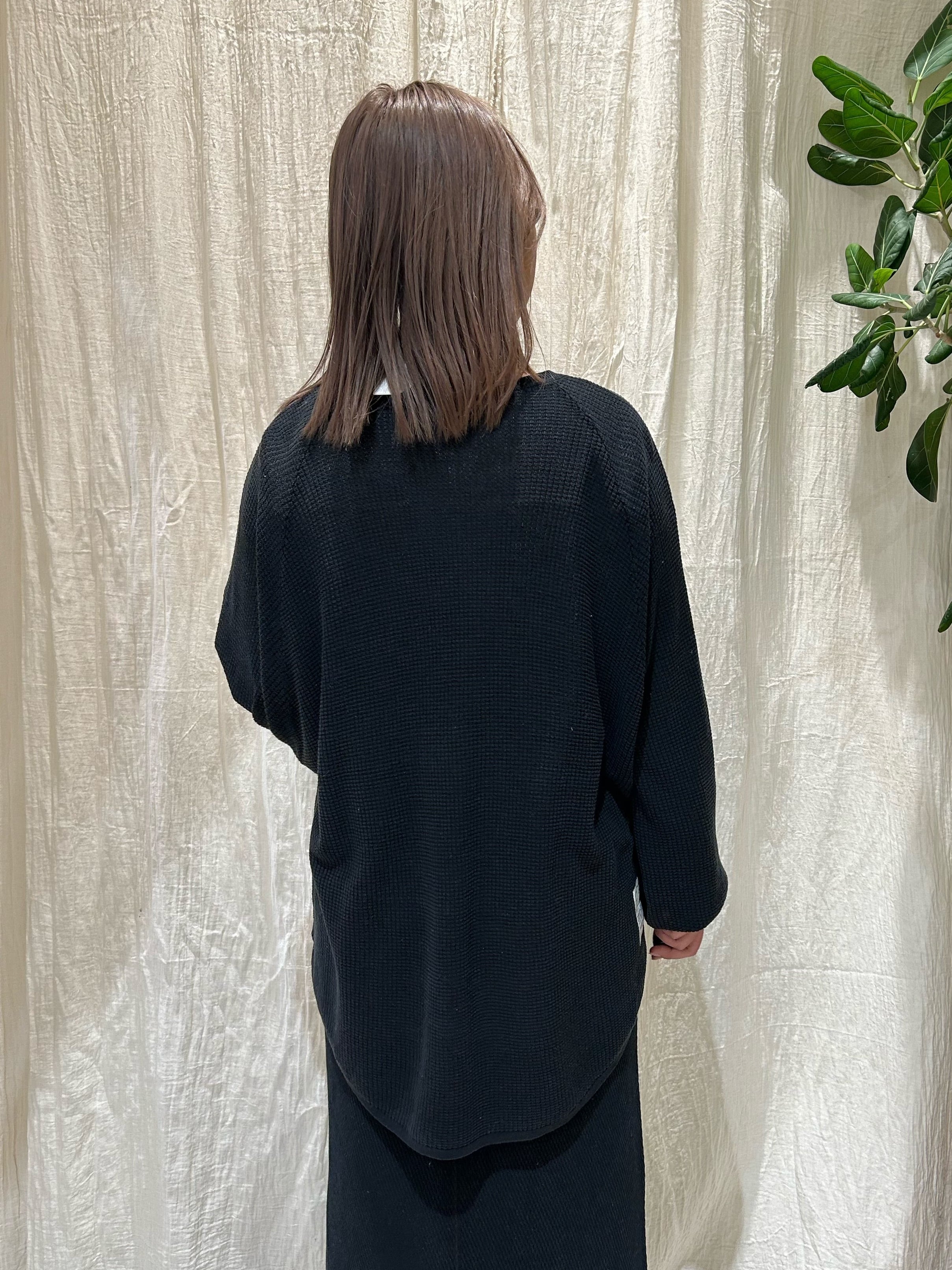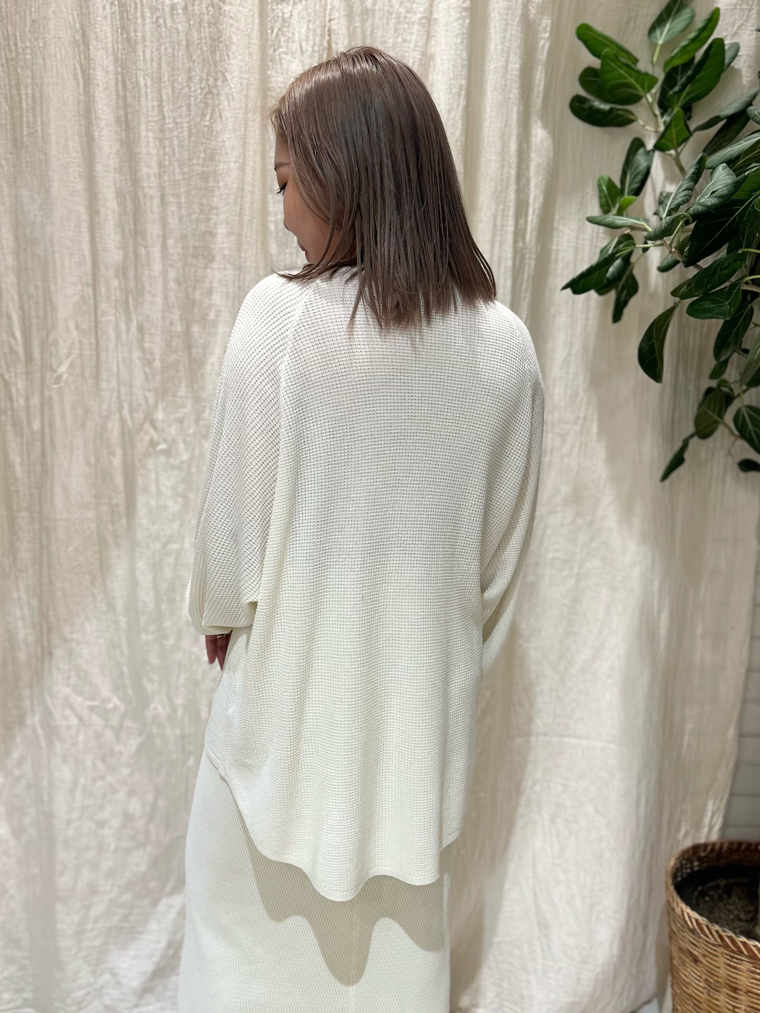 ニットワッフル編みの程よい立体感が、シンプルなデザインに表情をプラス。