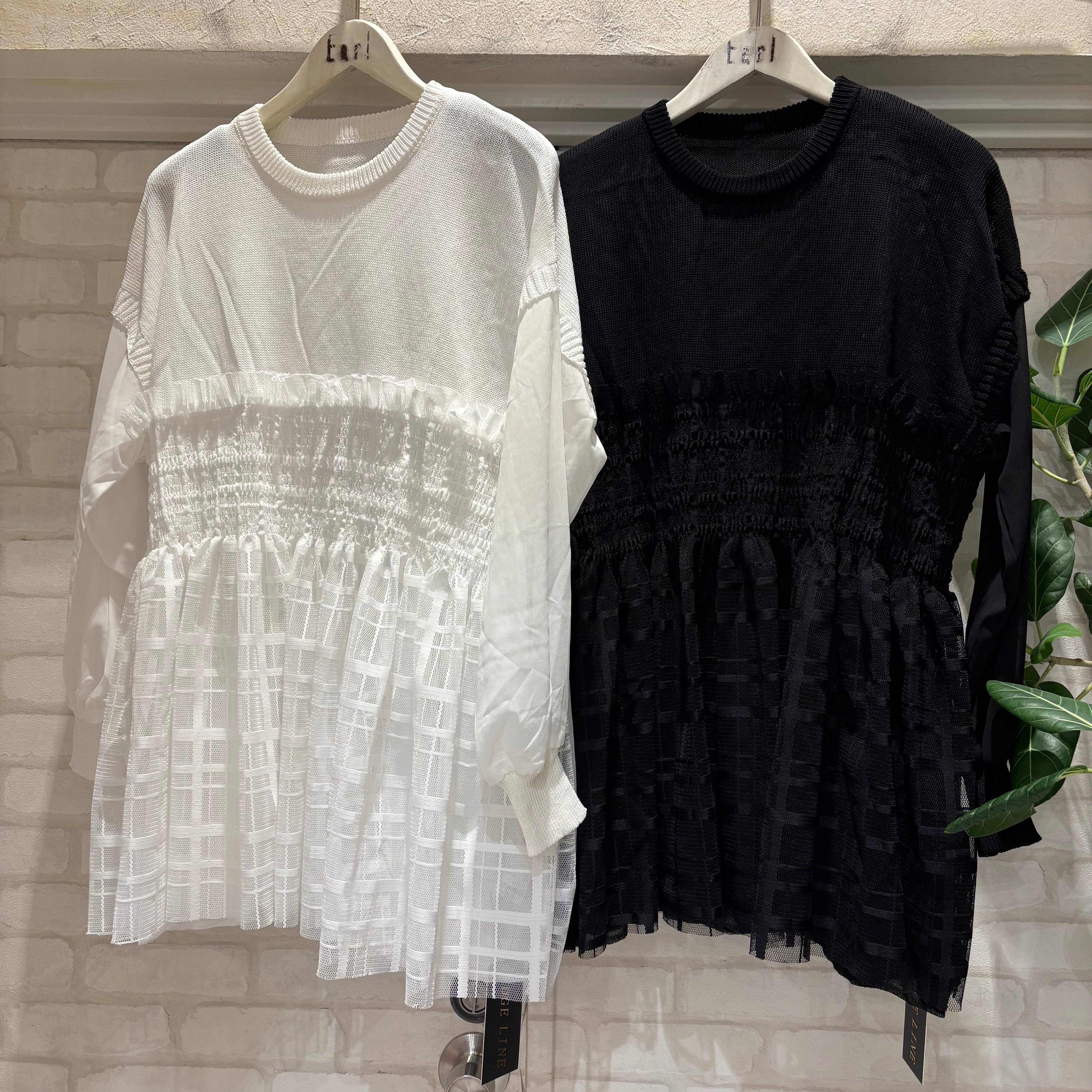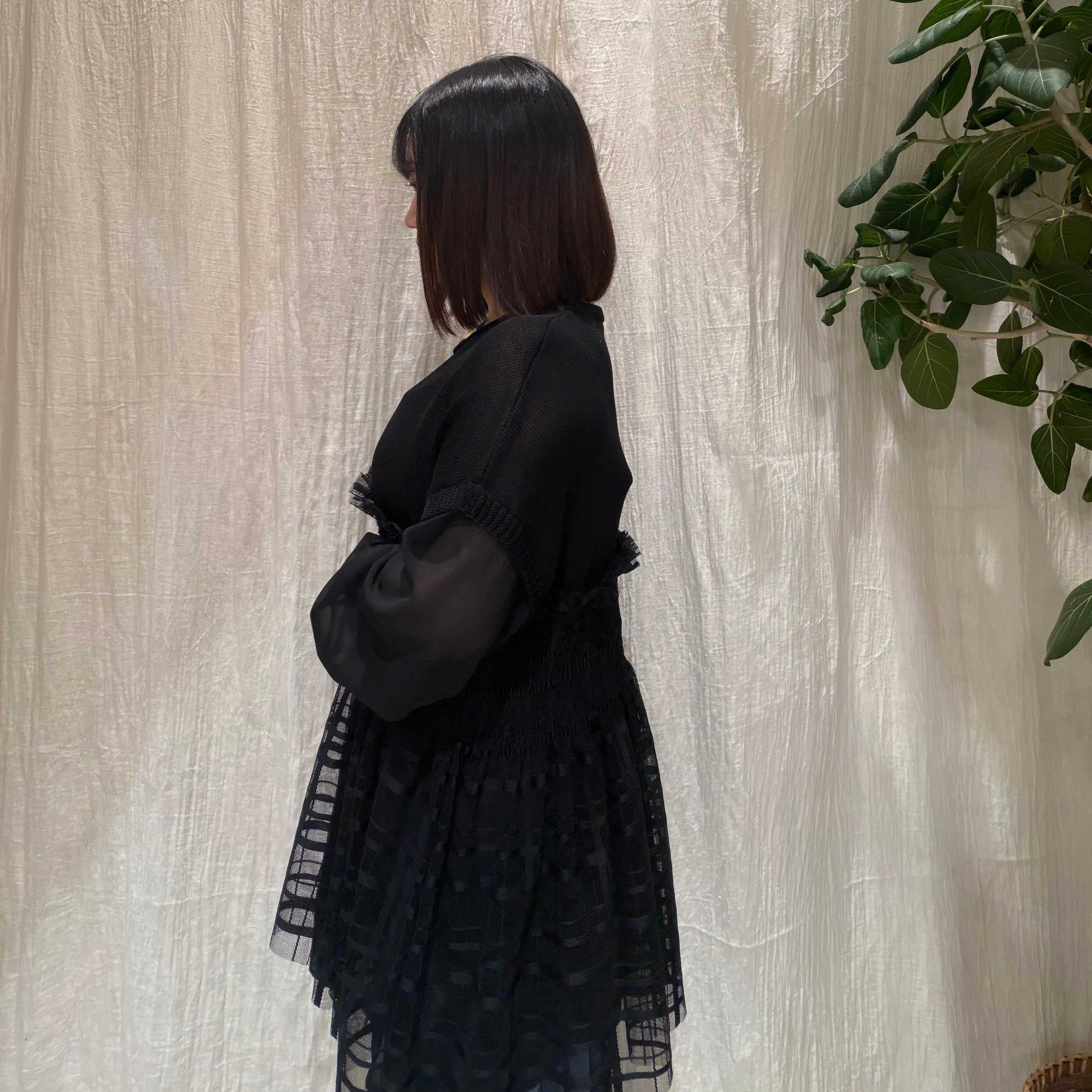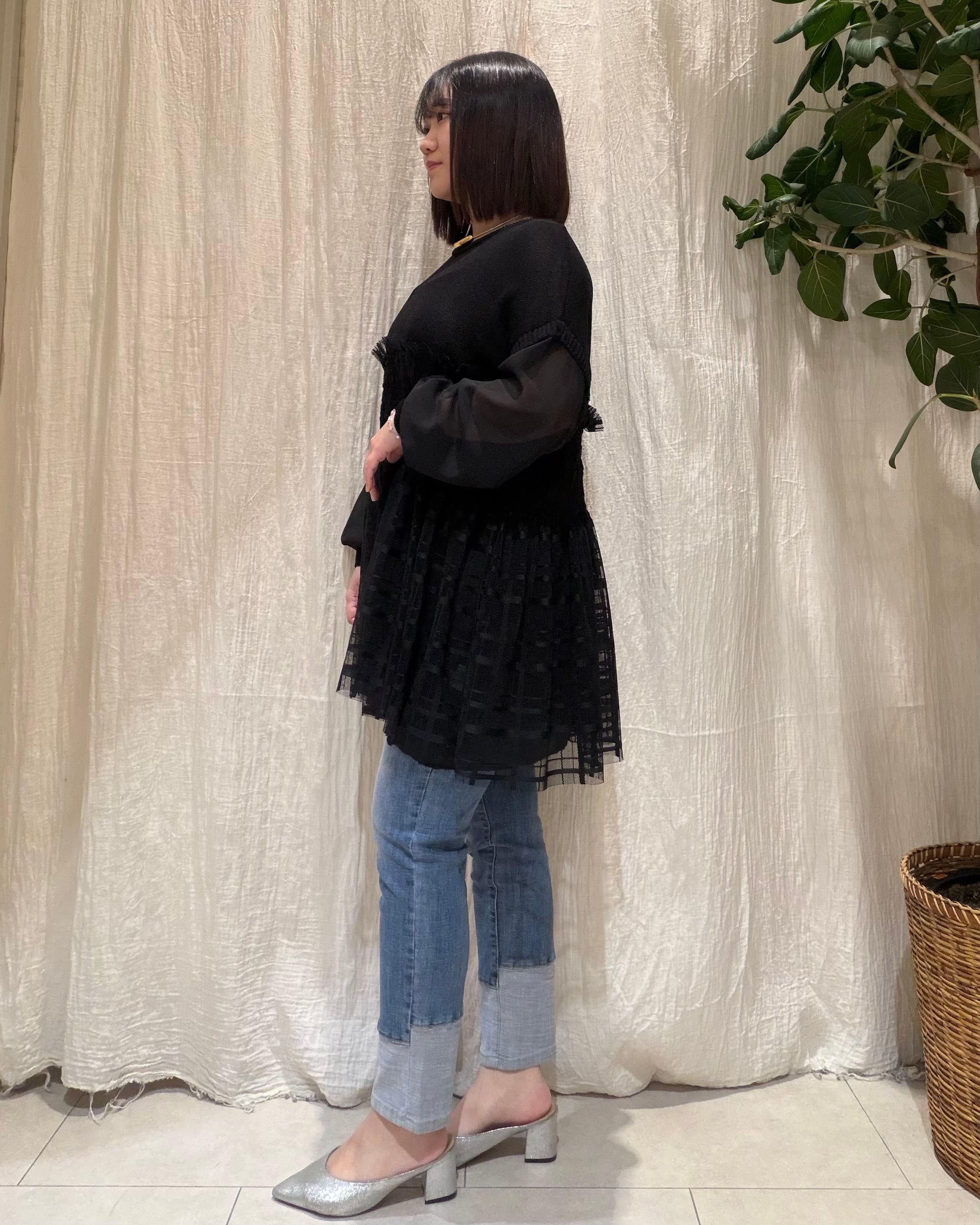 異素材切替シャーリングニットトップス EDGE LINE(エッジライン)