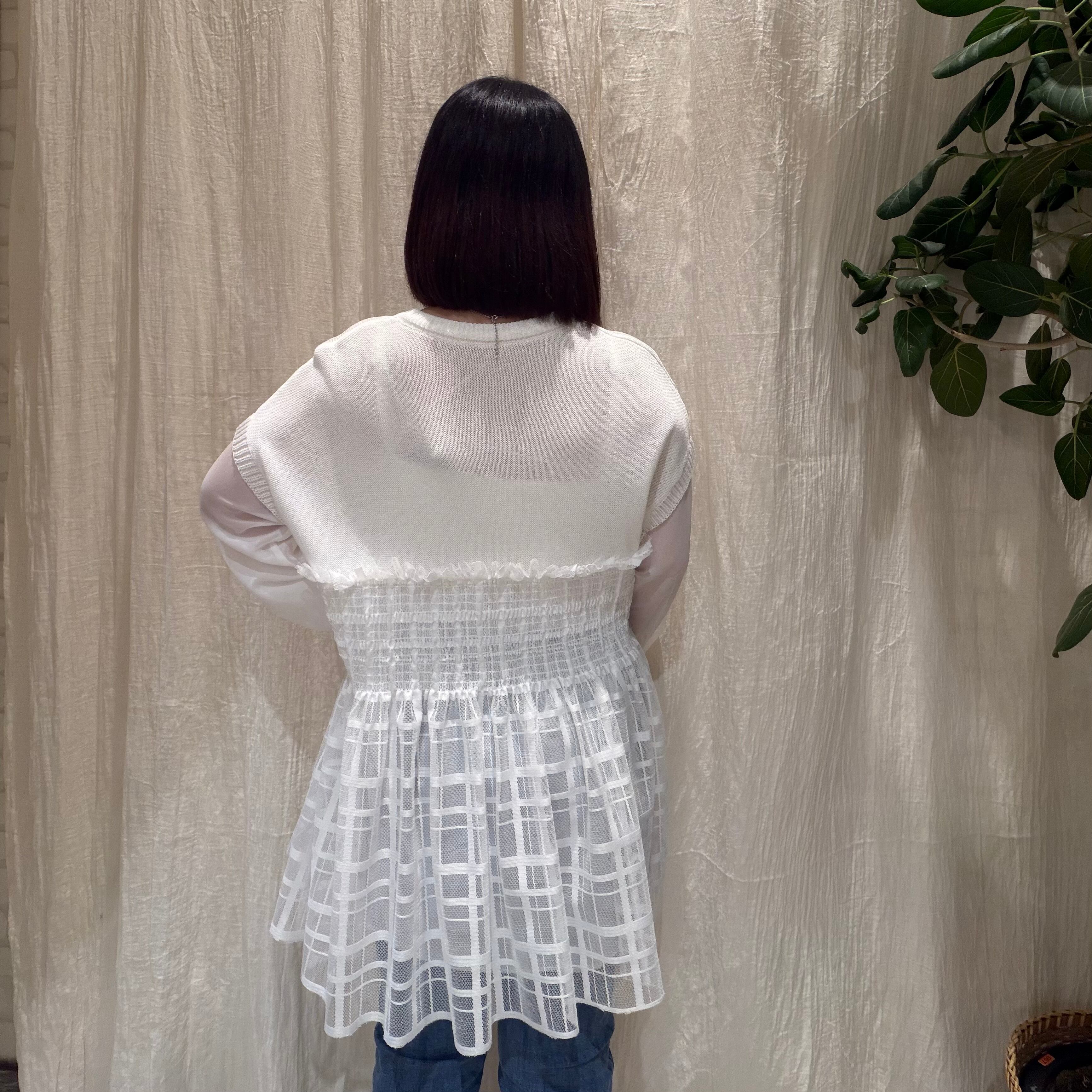 異素材切替が目を惹くデザインニットトップス。