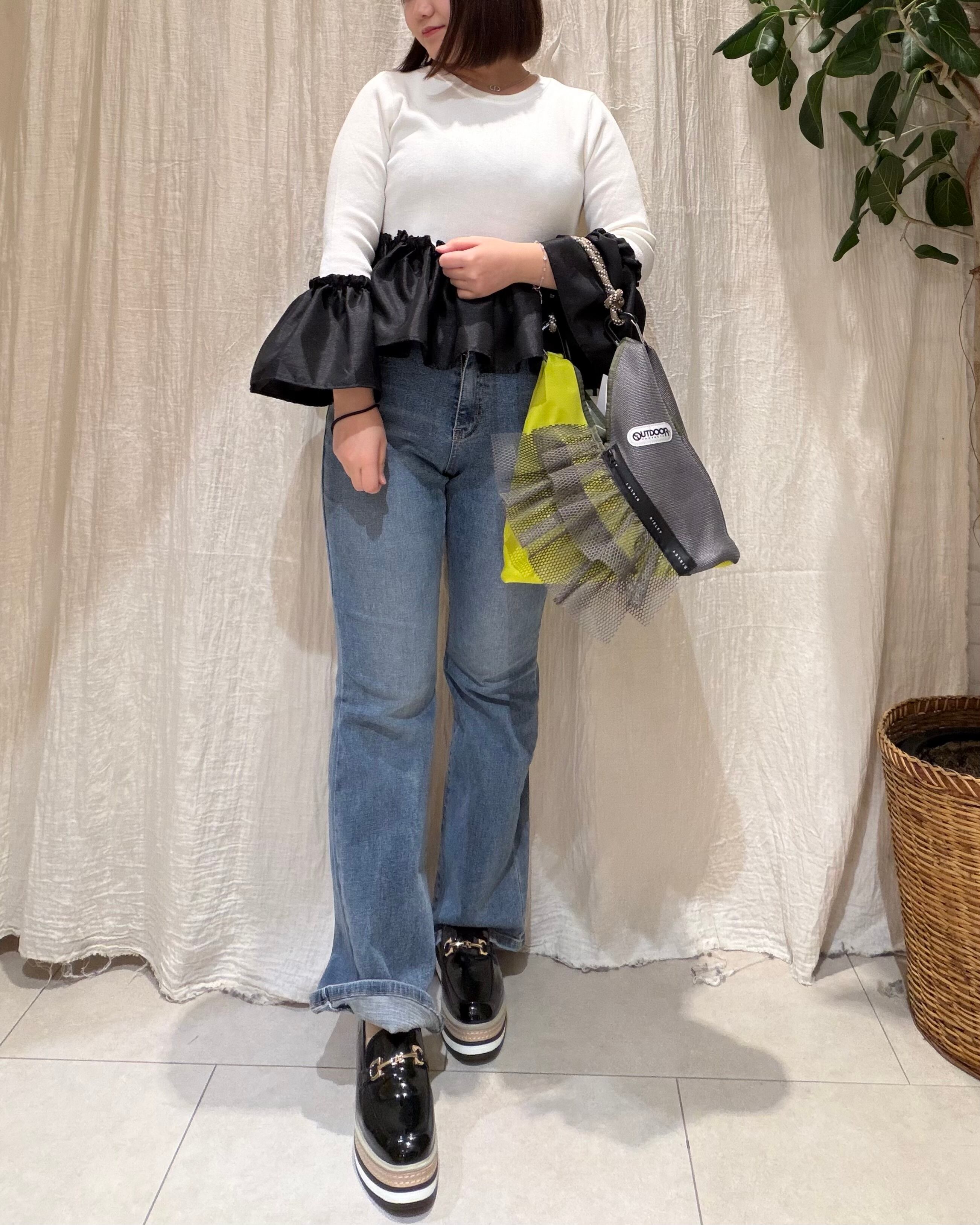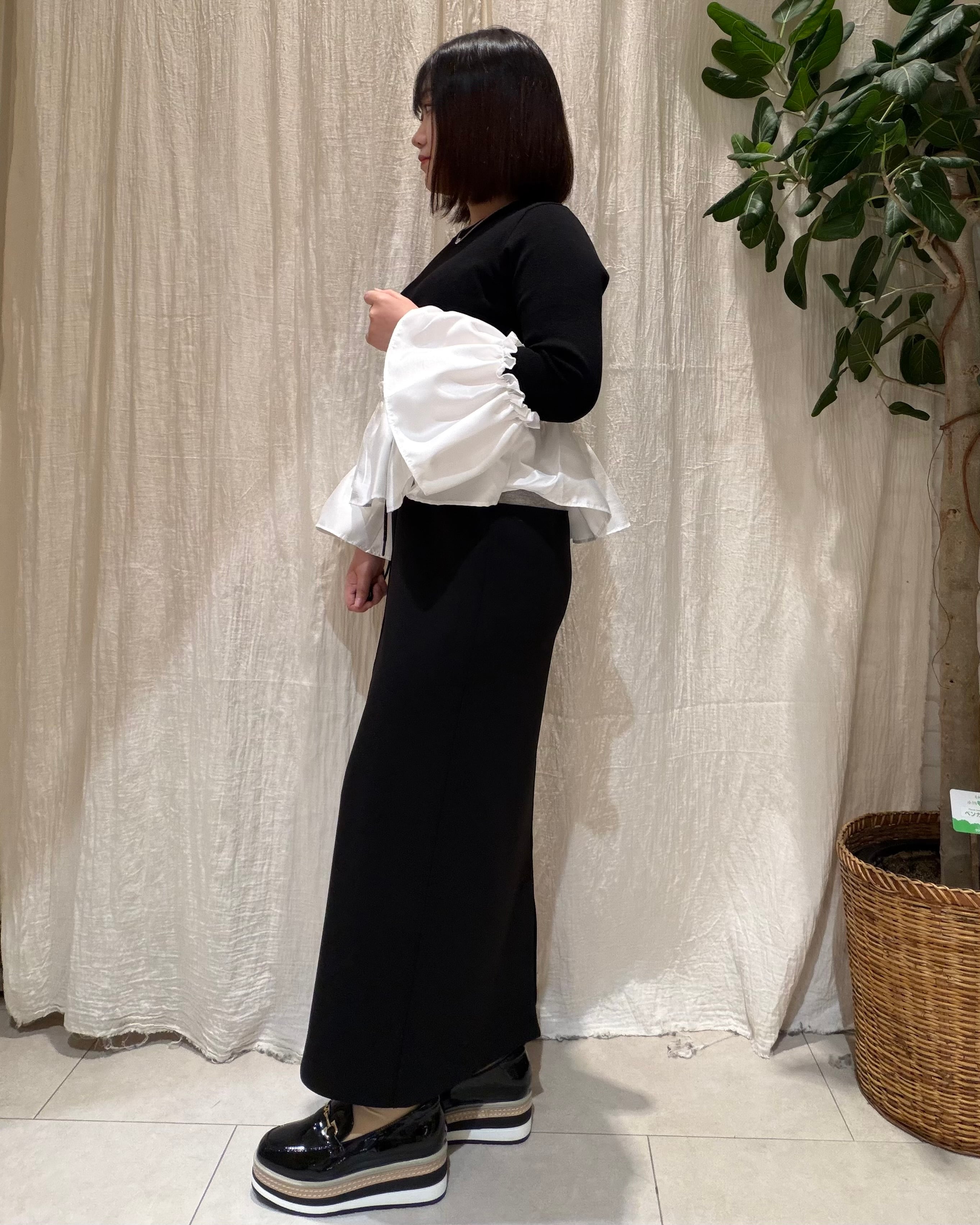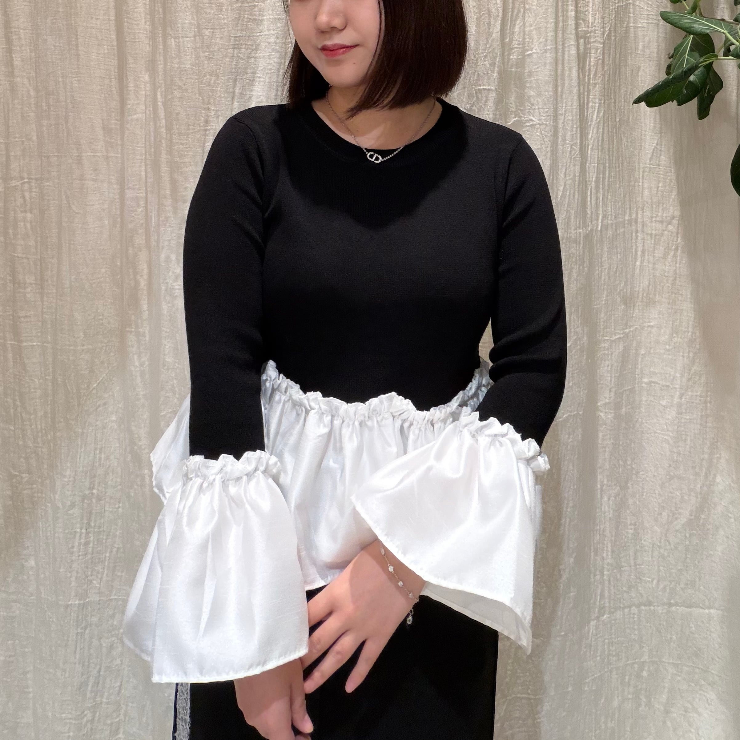 異素材切替で立体感のある華やかな印象に。