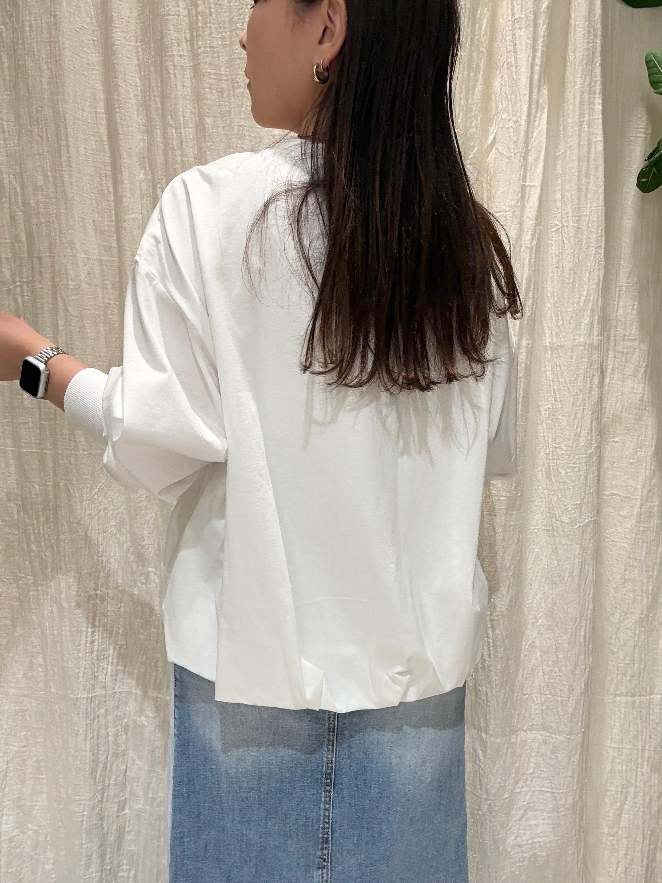 裾はバルーン仕様でふんわりとしたシルエットを演出し、さりげなく体型カバーも叶えます。