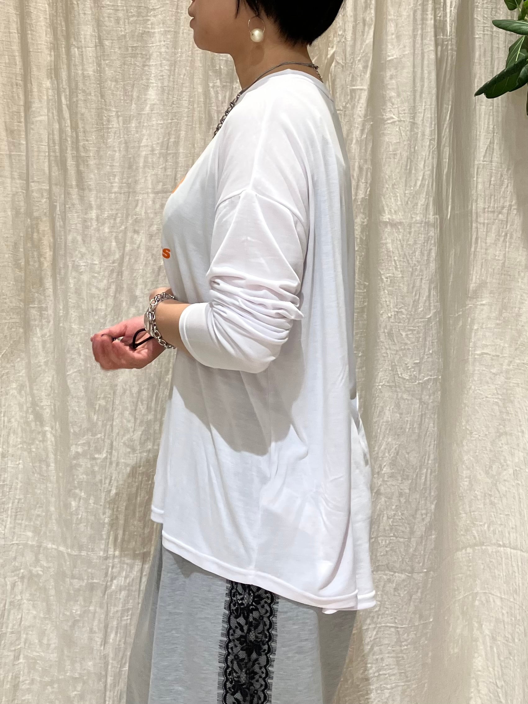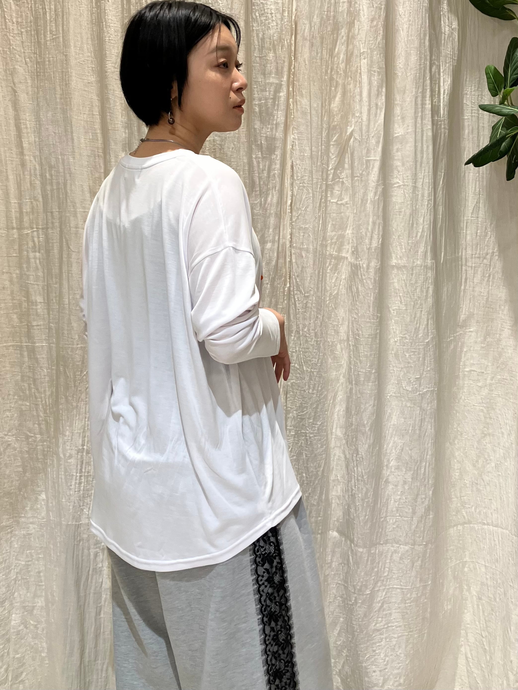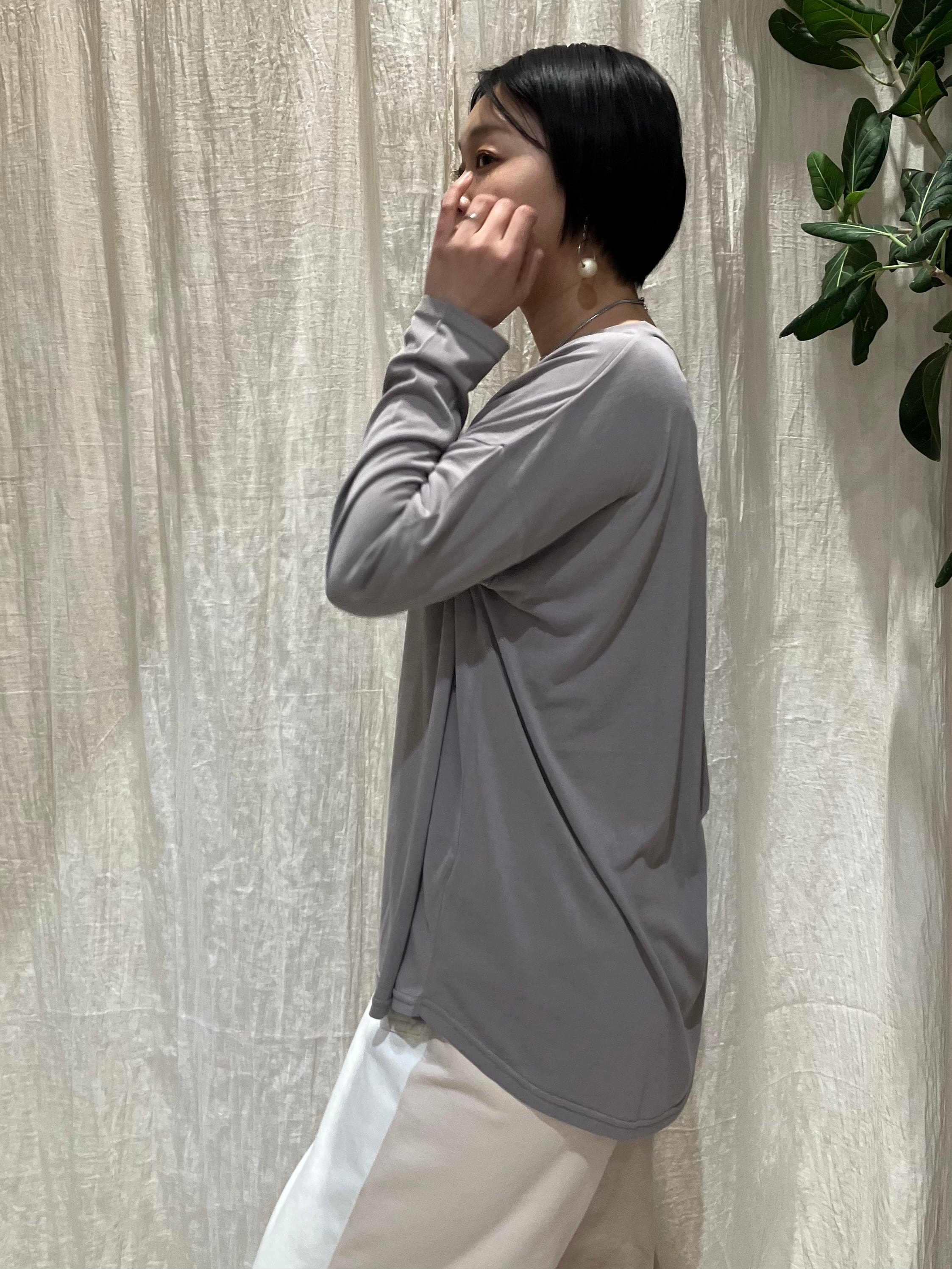 モダール素材ならではのなめらかなとろみ感と、アーチロゴのさりげないデザインが魅力の一枚。シンプルだからこそ着回し力が高く、どんなコーデにも馴染みます。