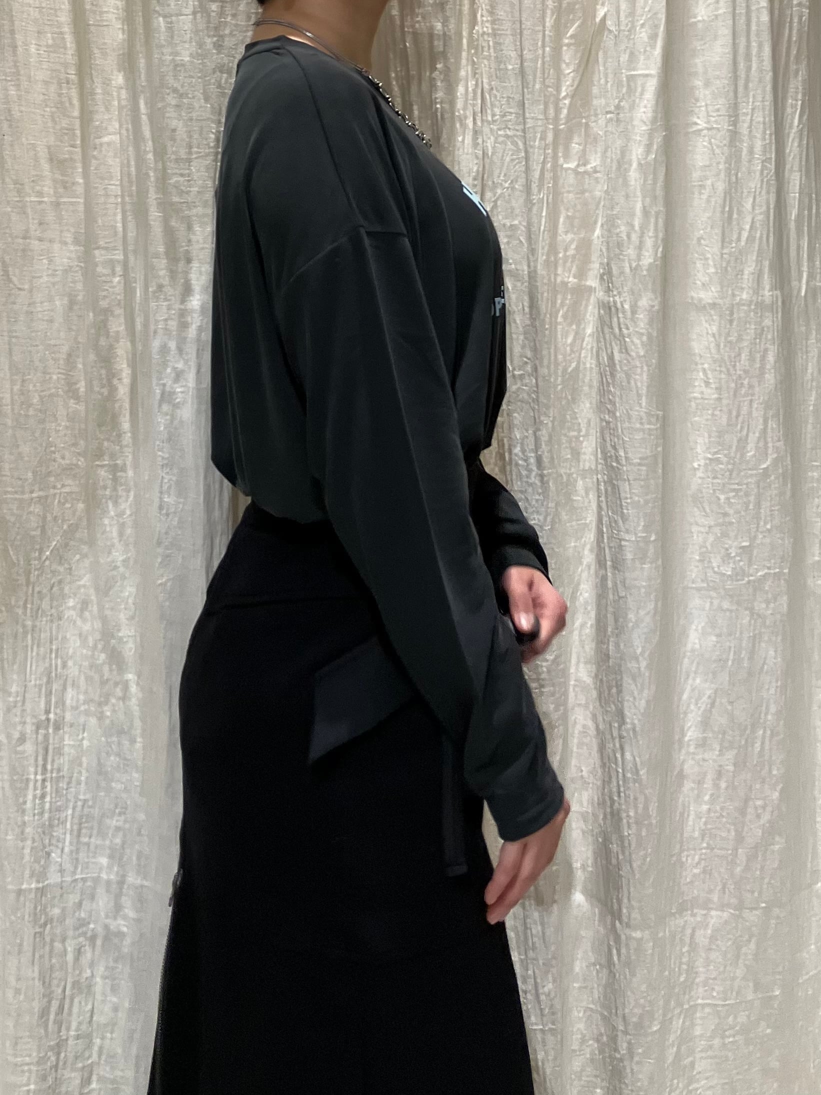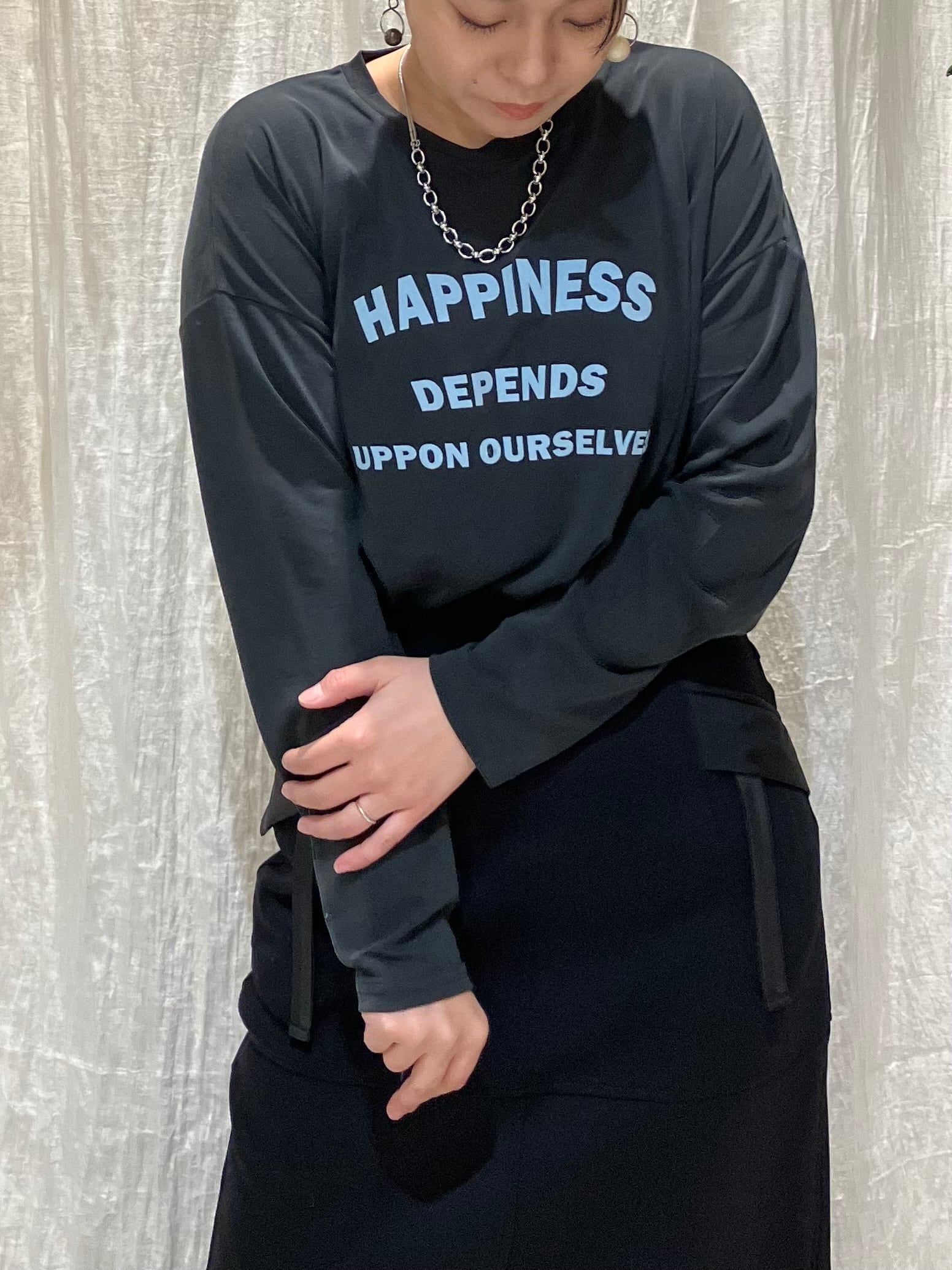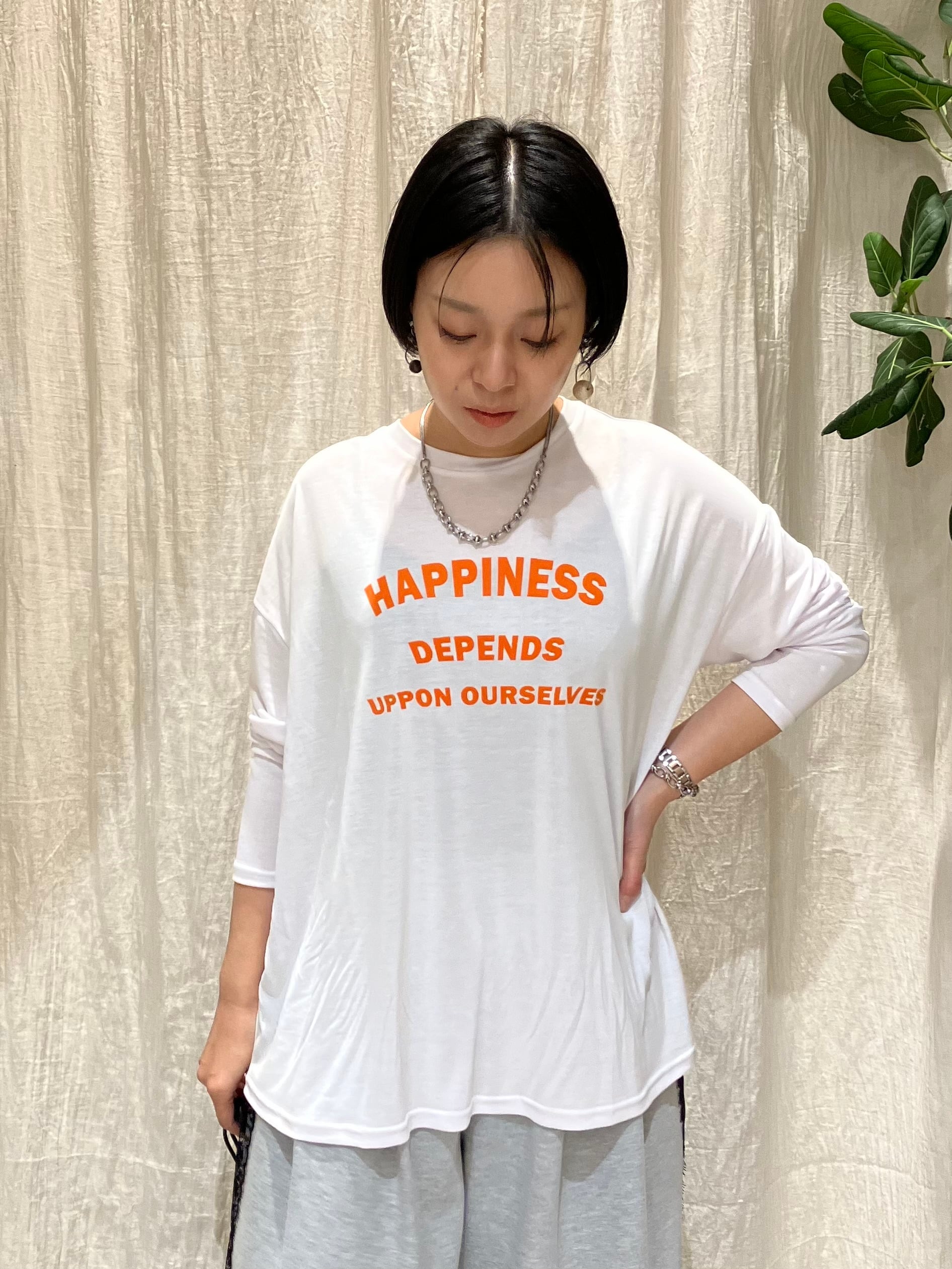 モダール素材ならではのなめらかなとろみ感と、アーチロゴのさりげないデザインが魅力の一枚。シンプルだからこそ着回し力が高く、どんなコーデにも馴染みます。