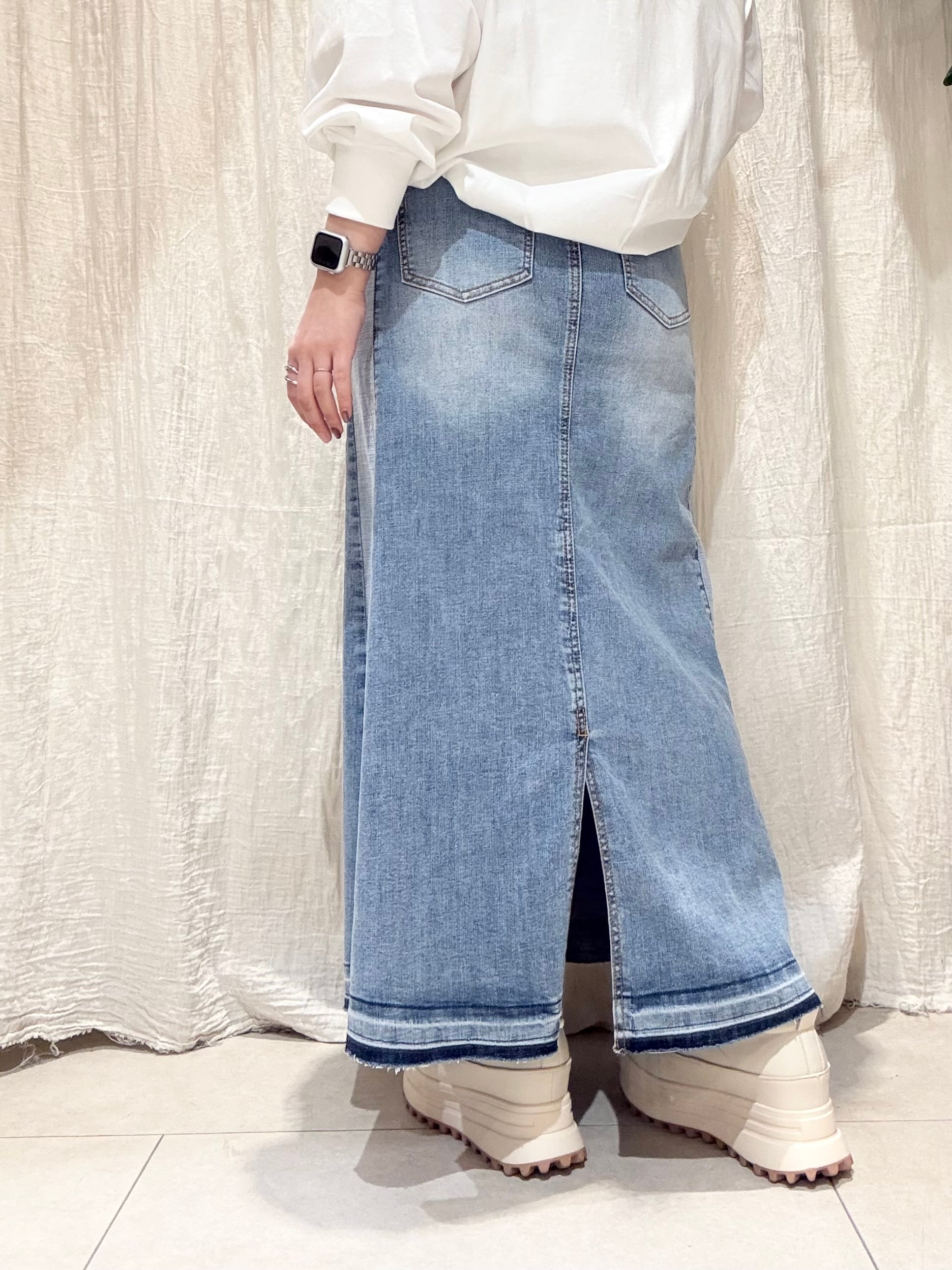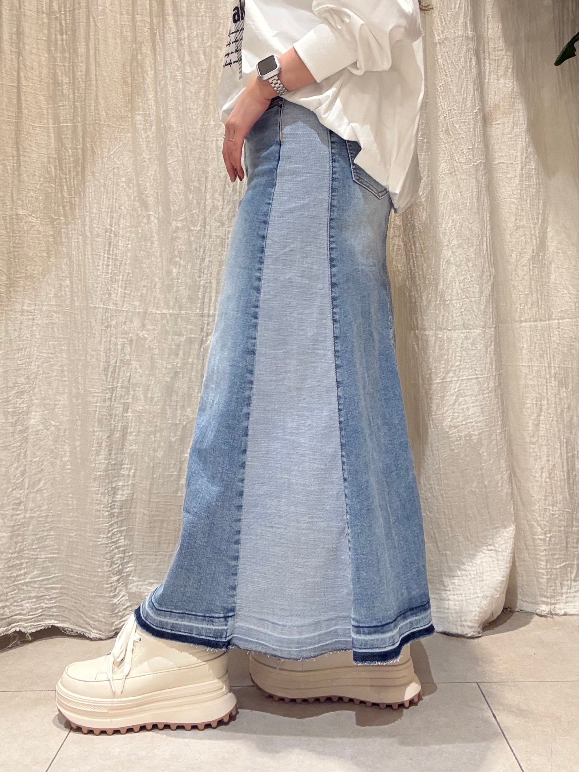 クロスウエスト切り替えデニムスカート INDIMARK(インディマーク)