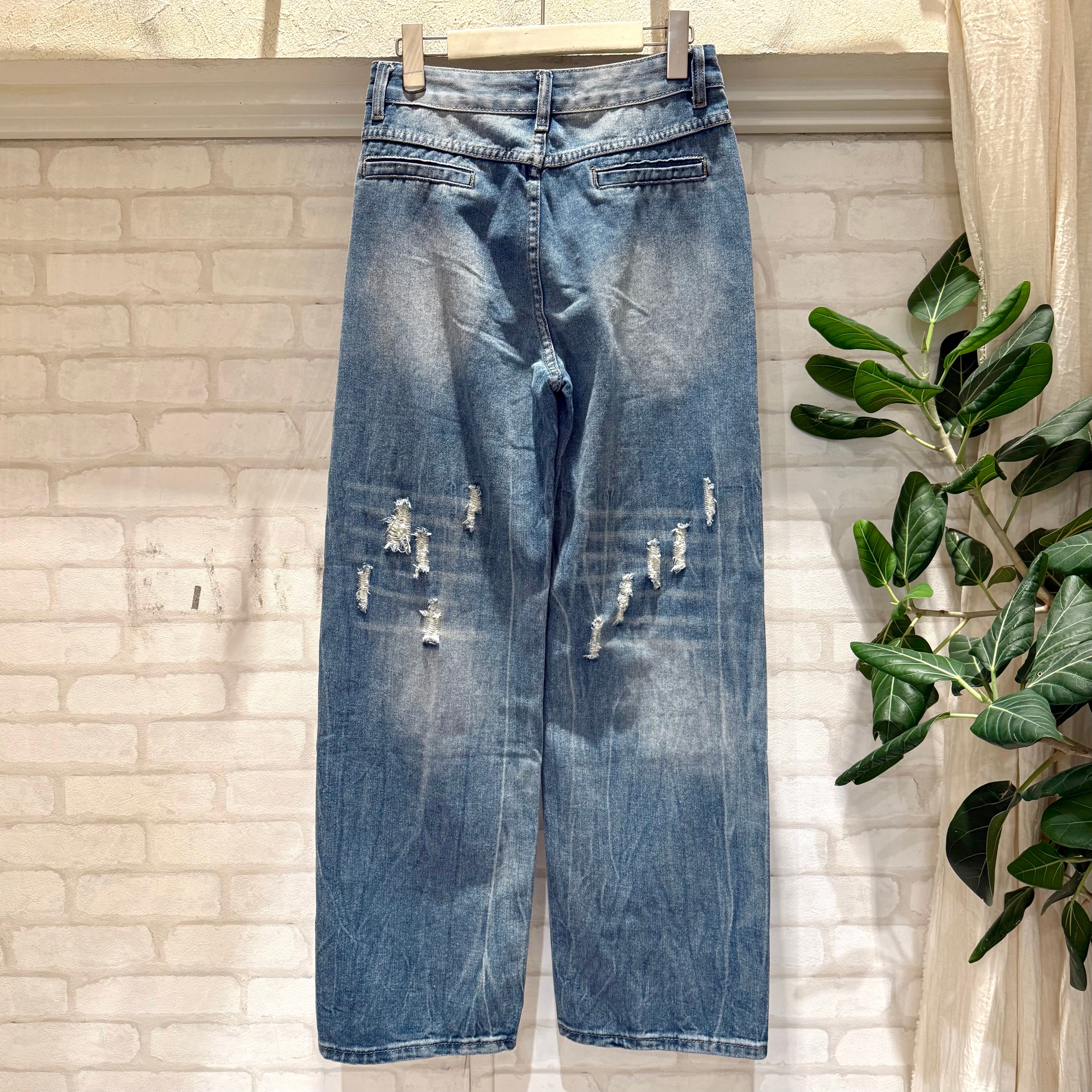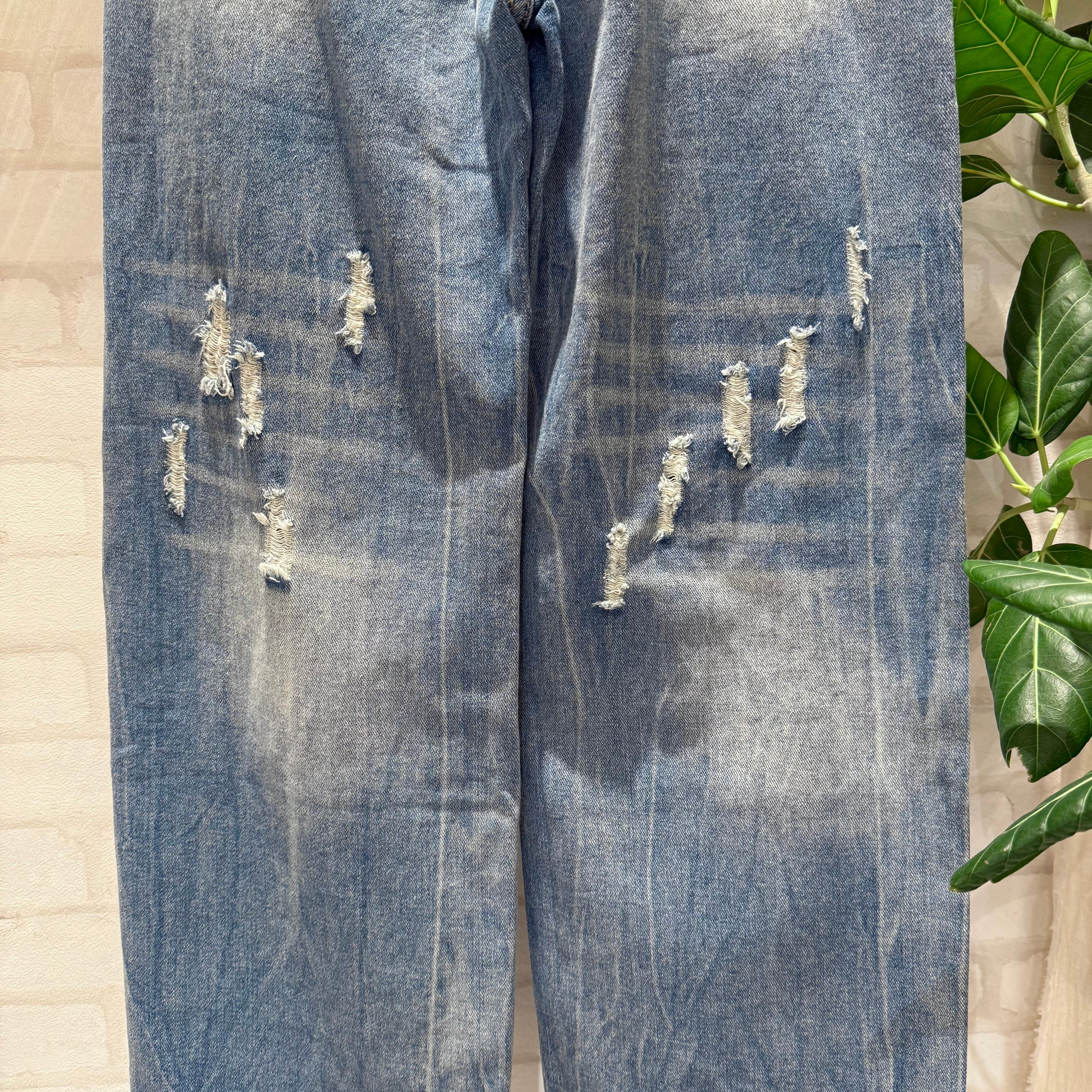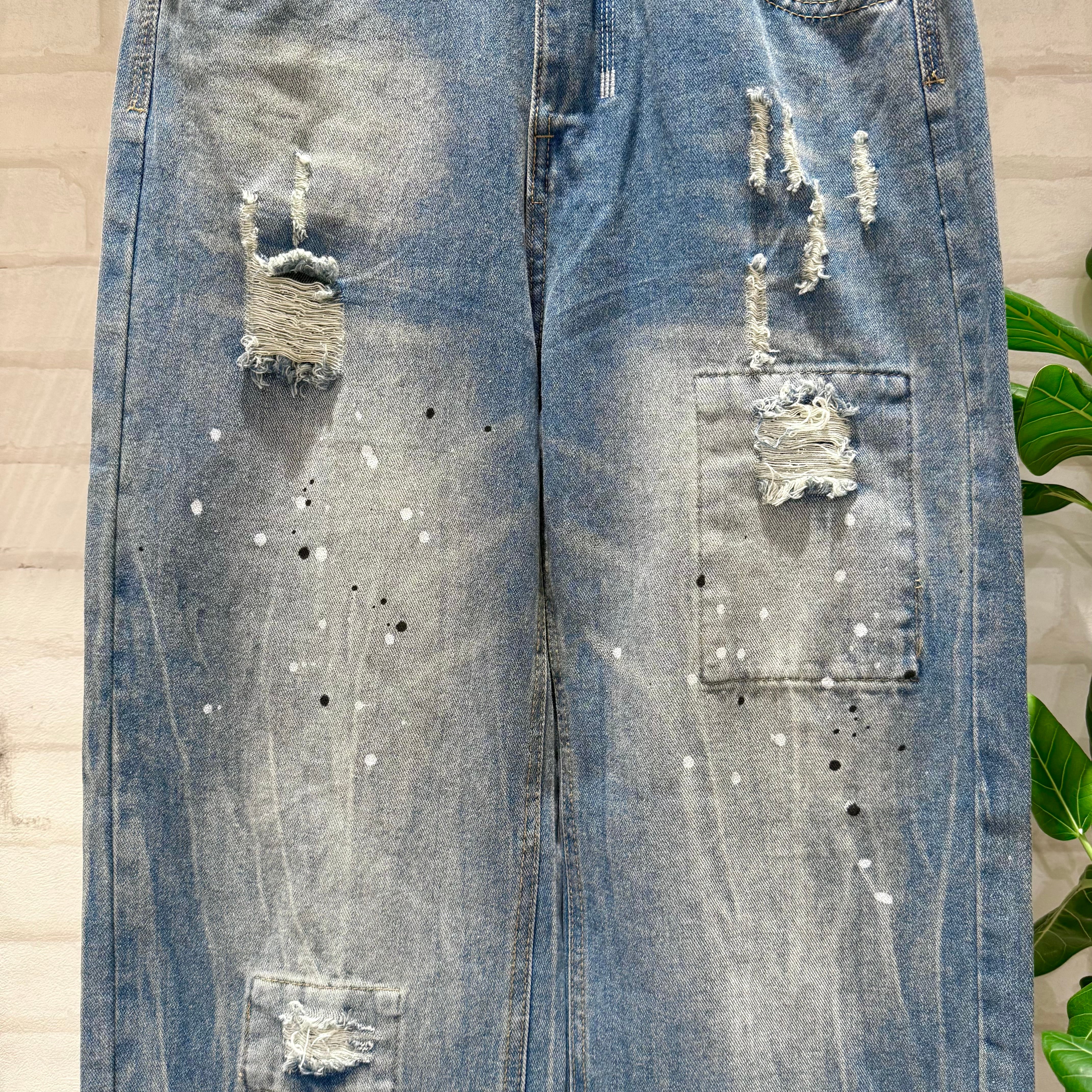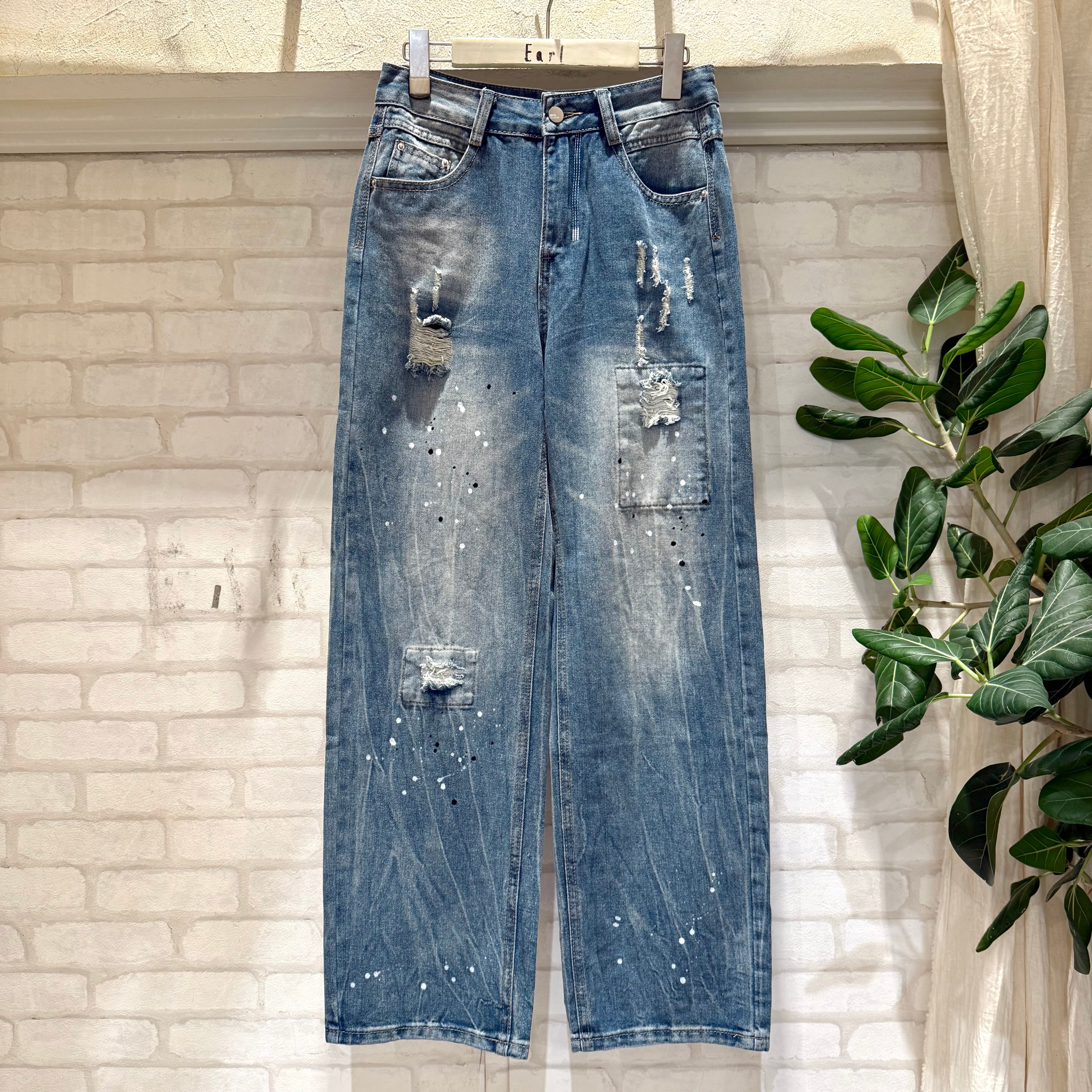 ダメージ・ペイント加工とデザインたっぷりのストレートデニム