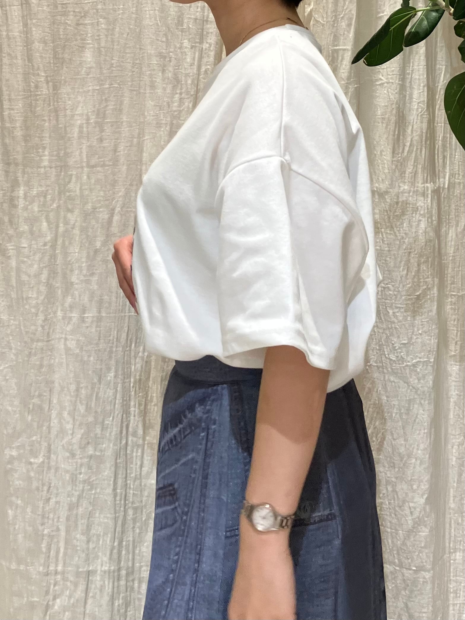 ゆったりとしたシルエットで、ラフに着てもこなれ感のある印象に仕上がります。