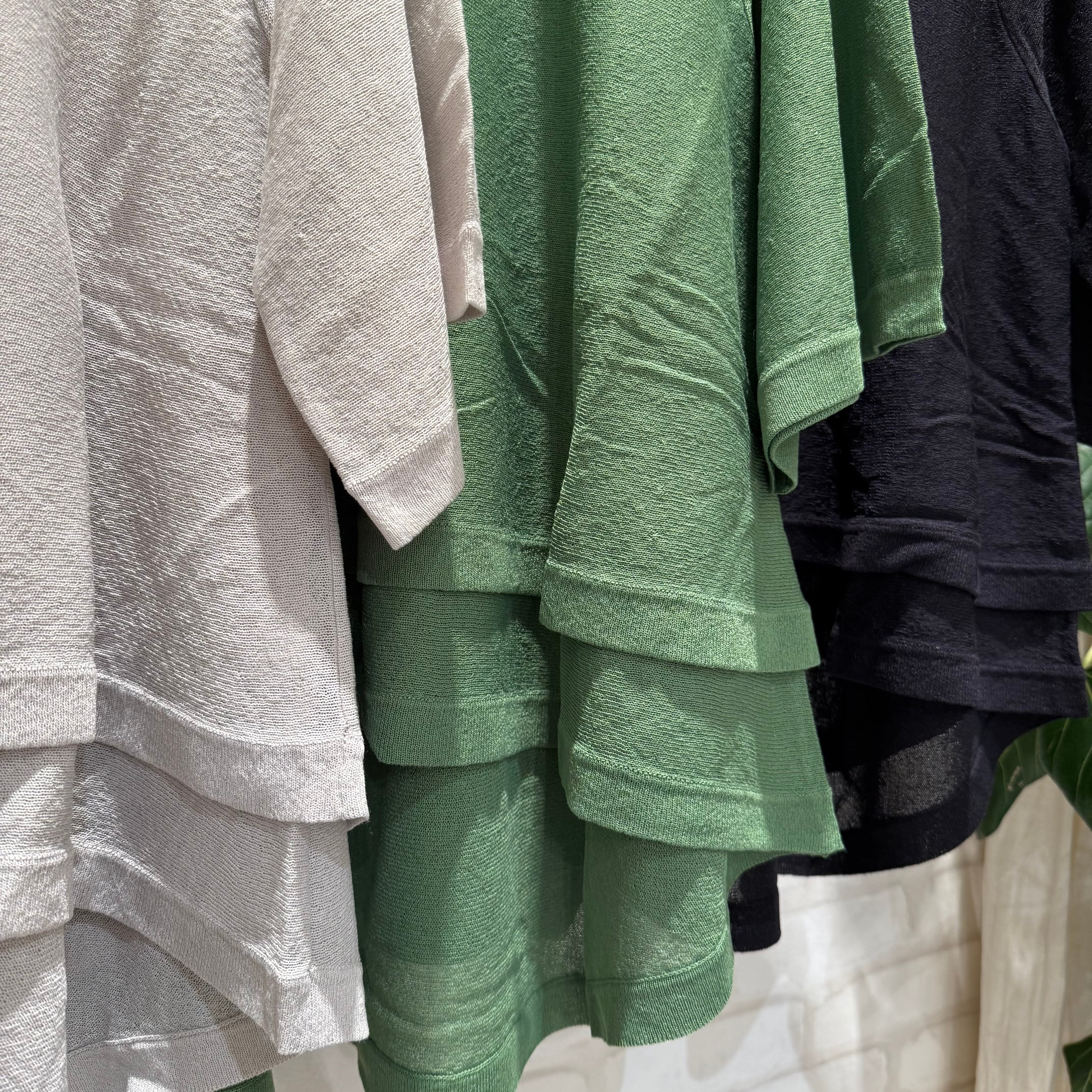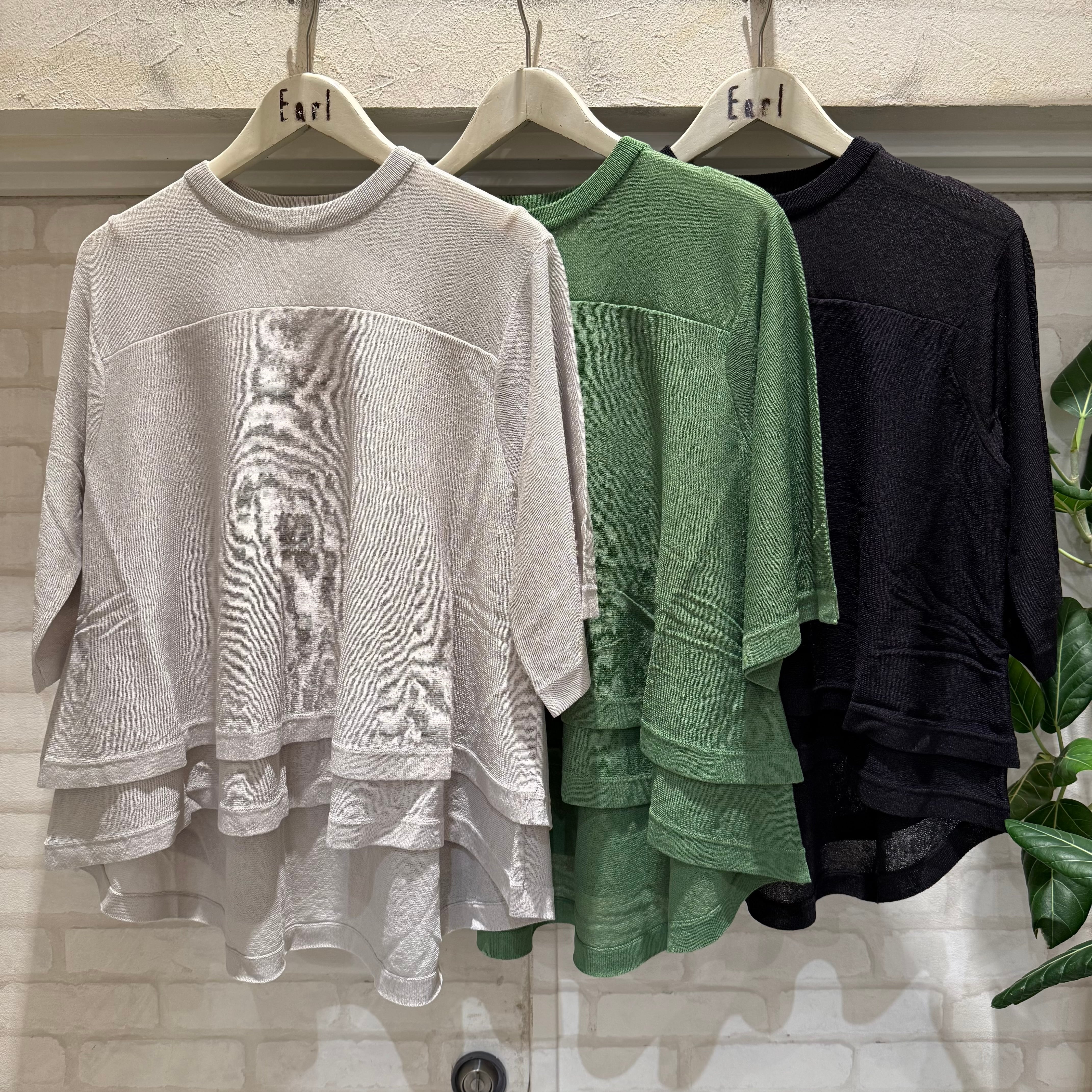 裾の二重デザインがさりげないアクセントになる、軽やかなシアープルオーバーです。