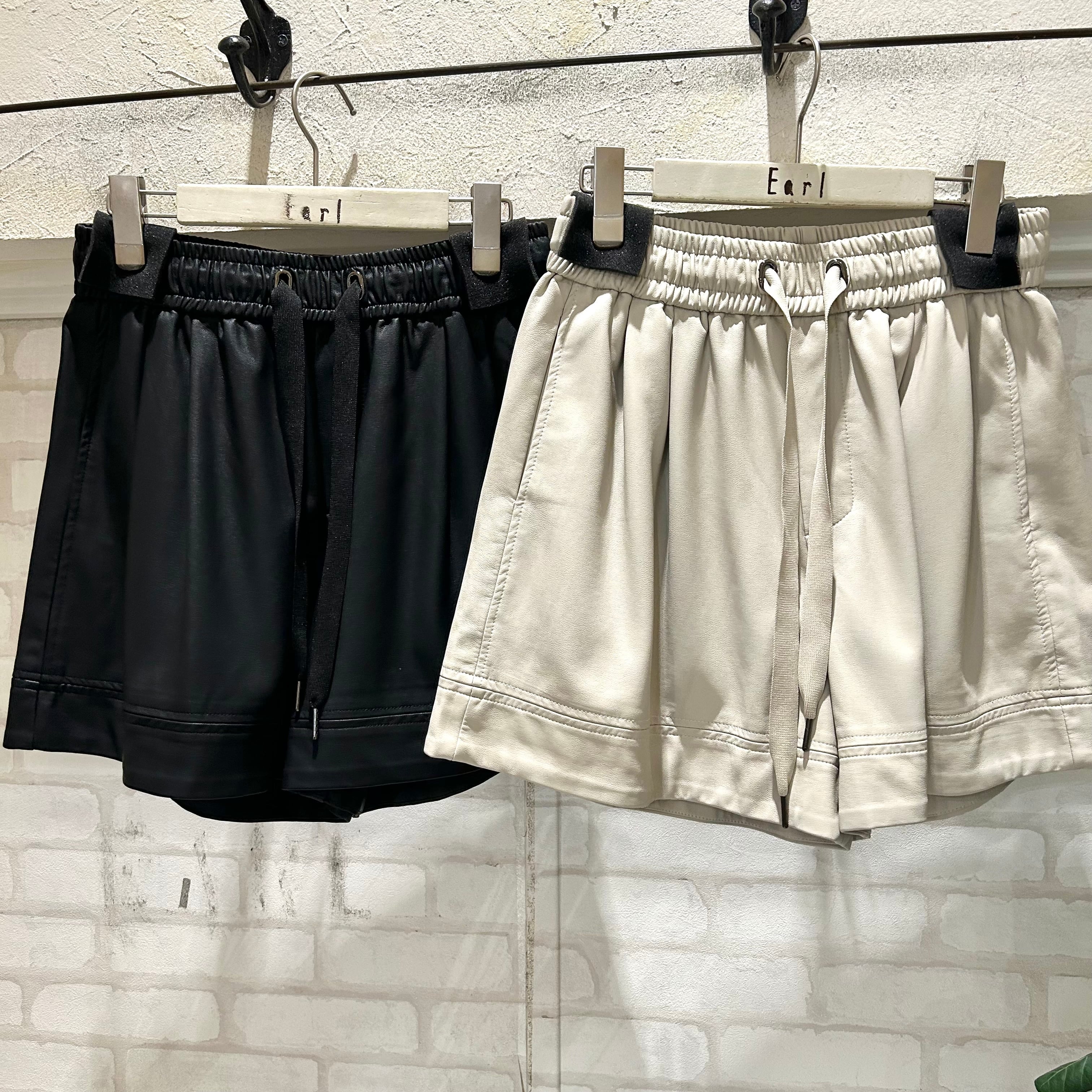 上品な光沢感が魅力のレザーショートパンツです。
