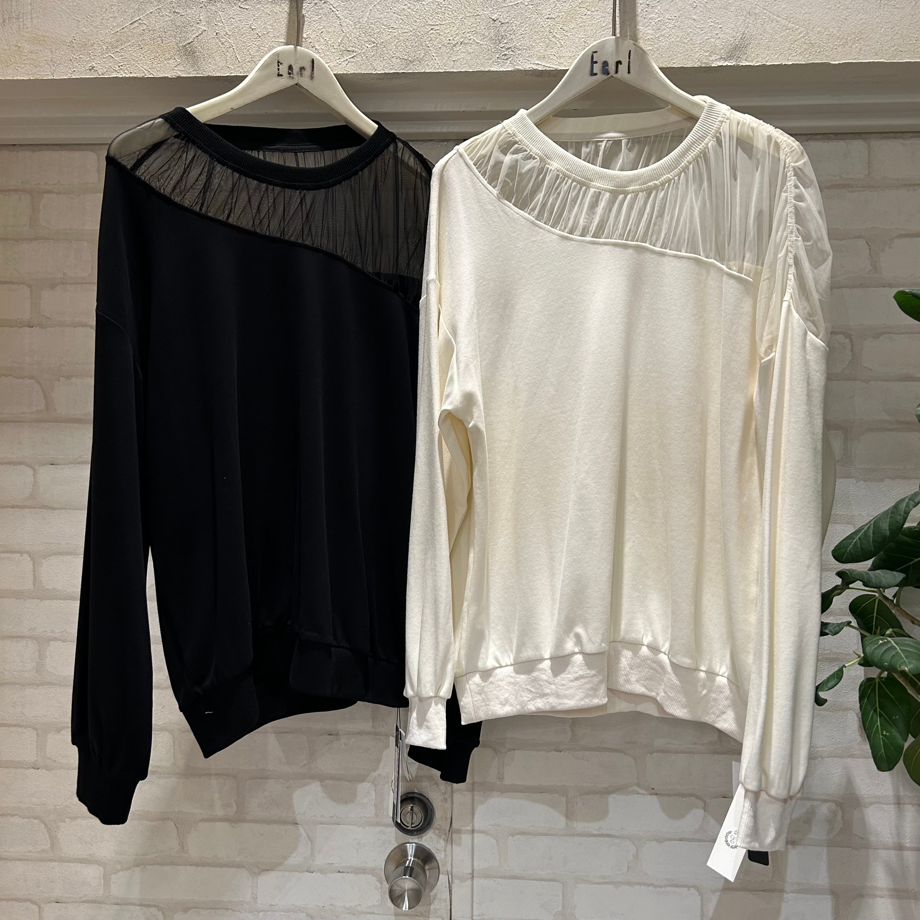 肩部分に斜めのシアー切替を施した、抜け感のあるデザインプルオーバーです。