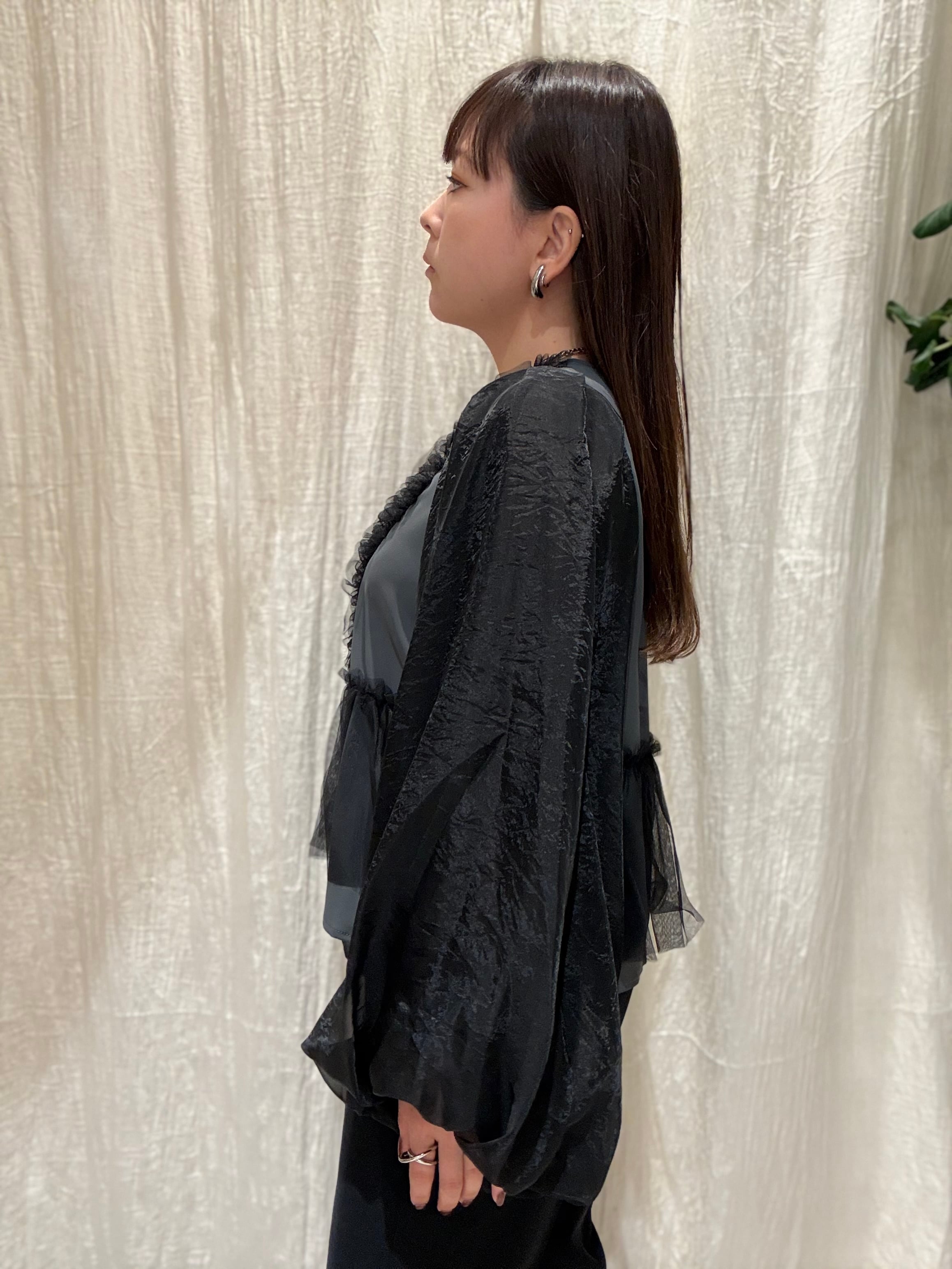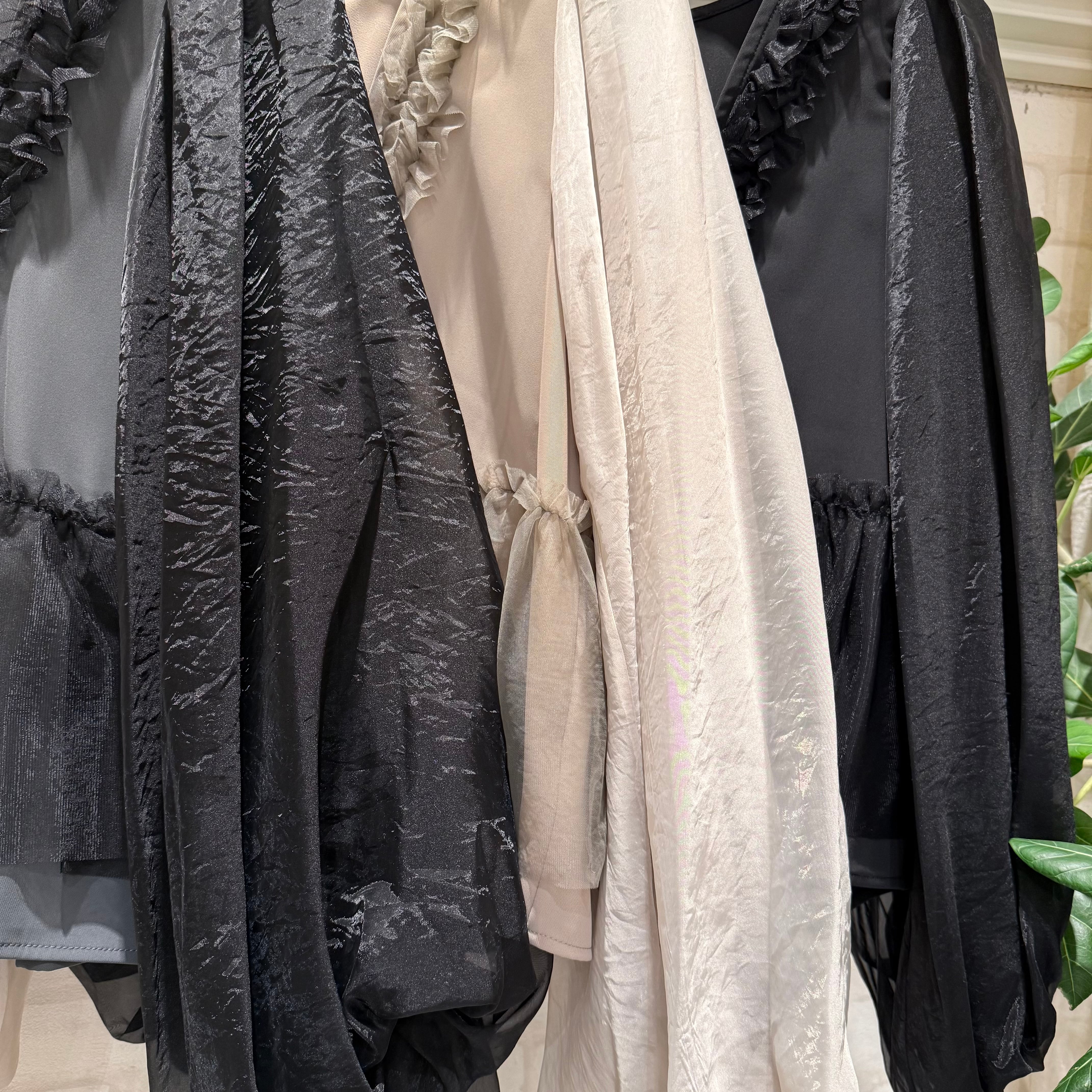 軽やかな透け感が女性らしさを引き立て、動くたびにふんわり揺れるシルエットが魅力です。