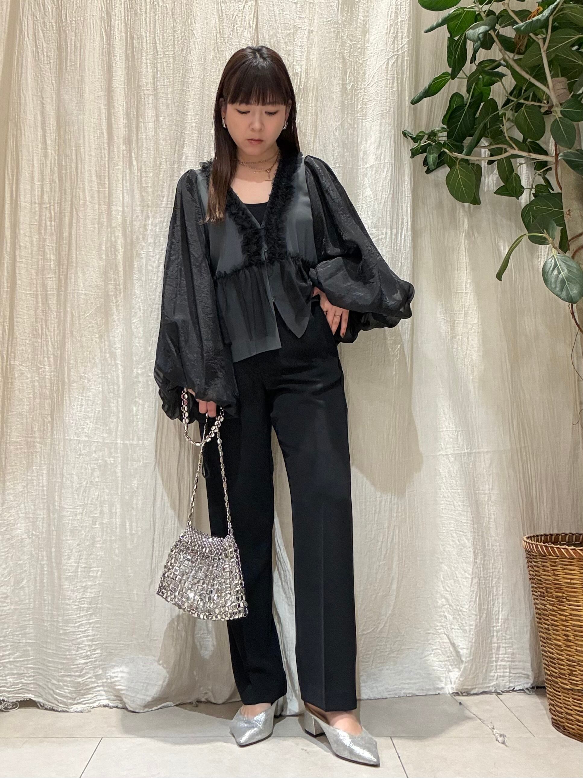 ブラックとベージュ、チャコールの3色展開で、甘さとモード感を両立した一枚です。