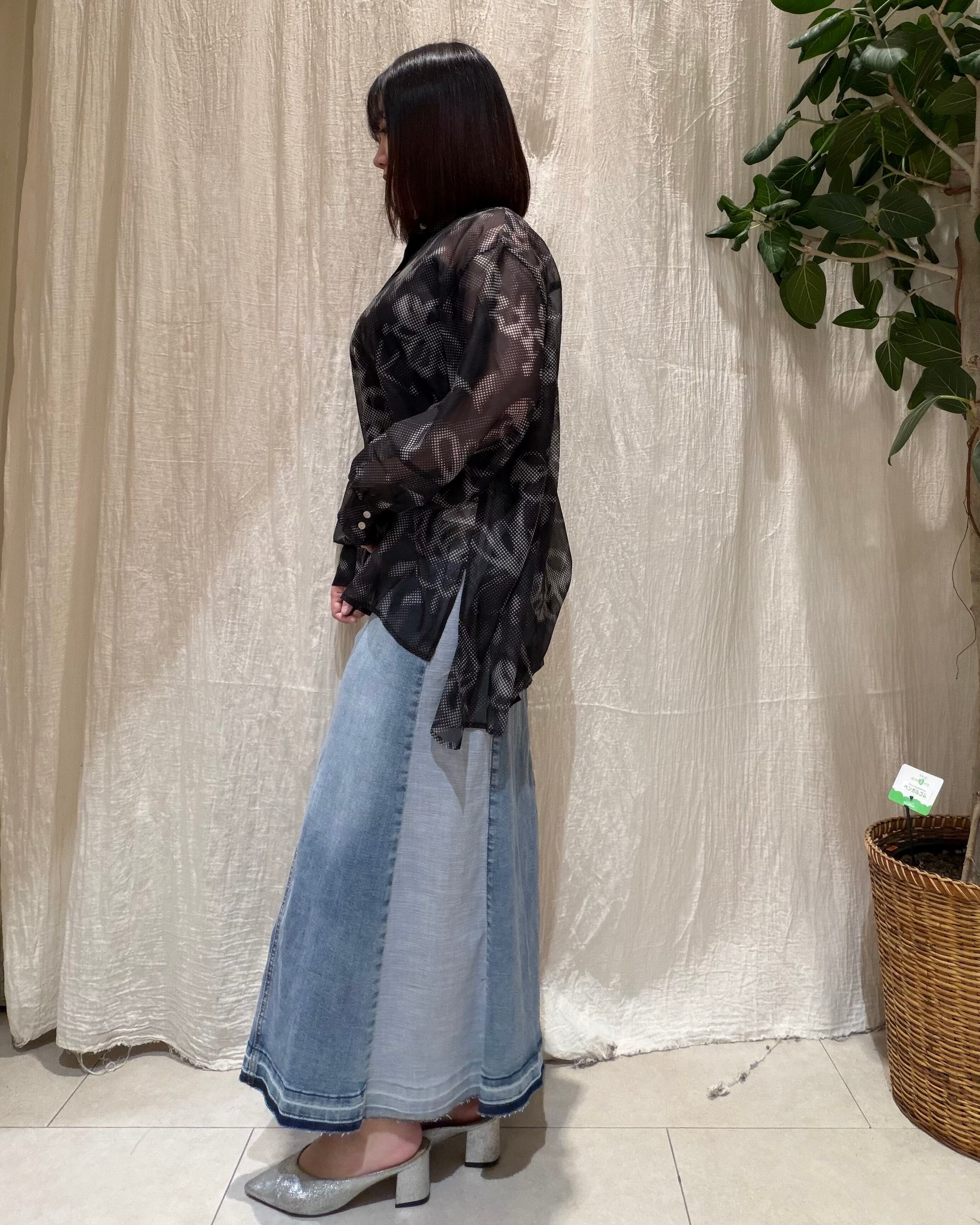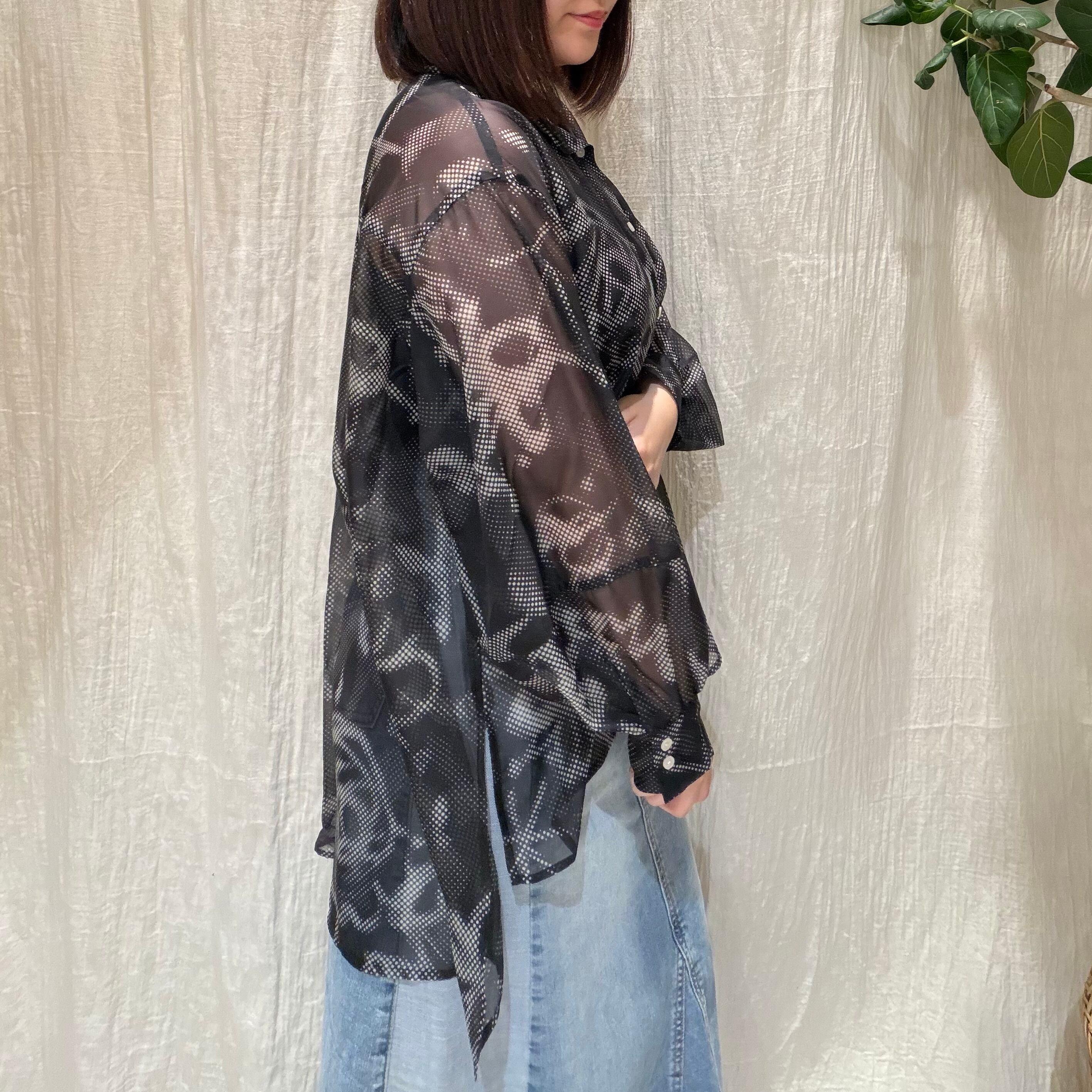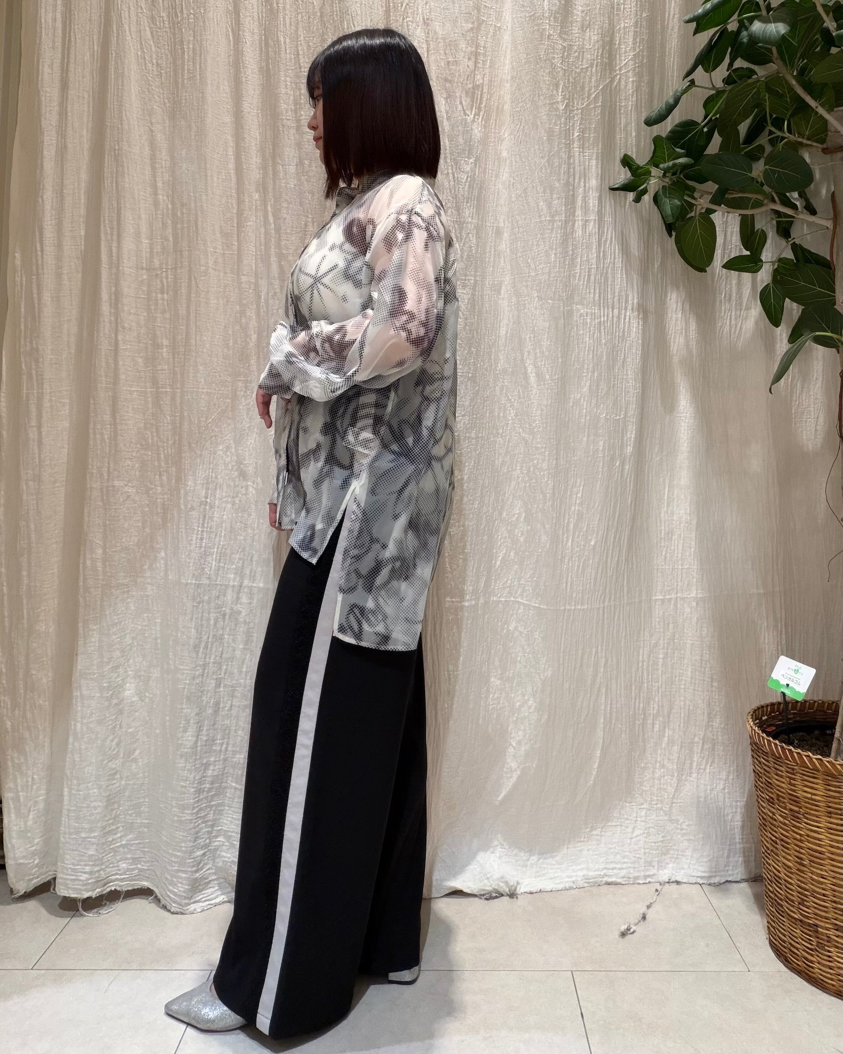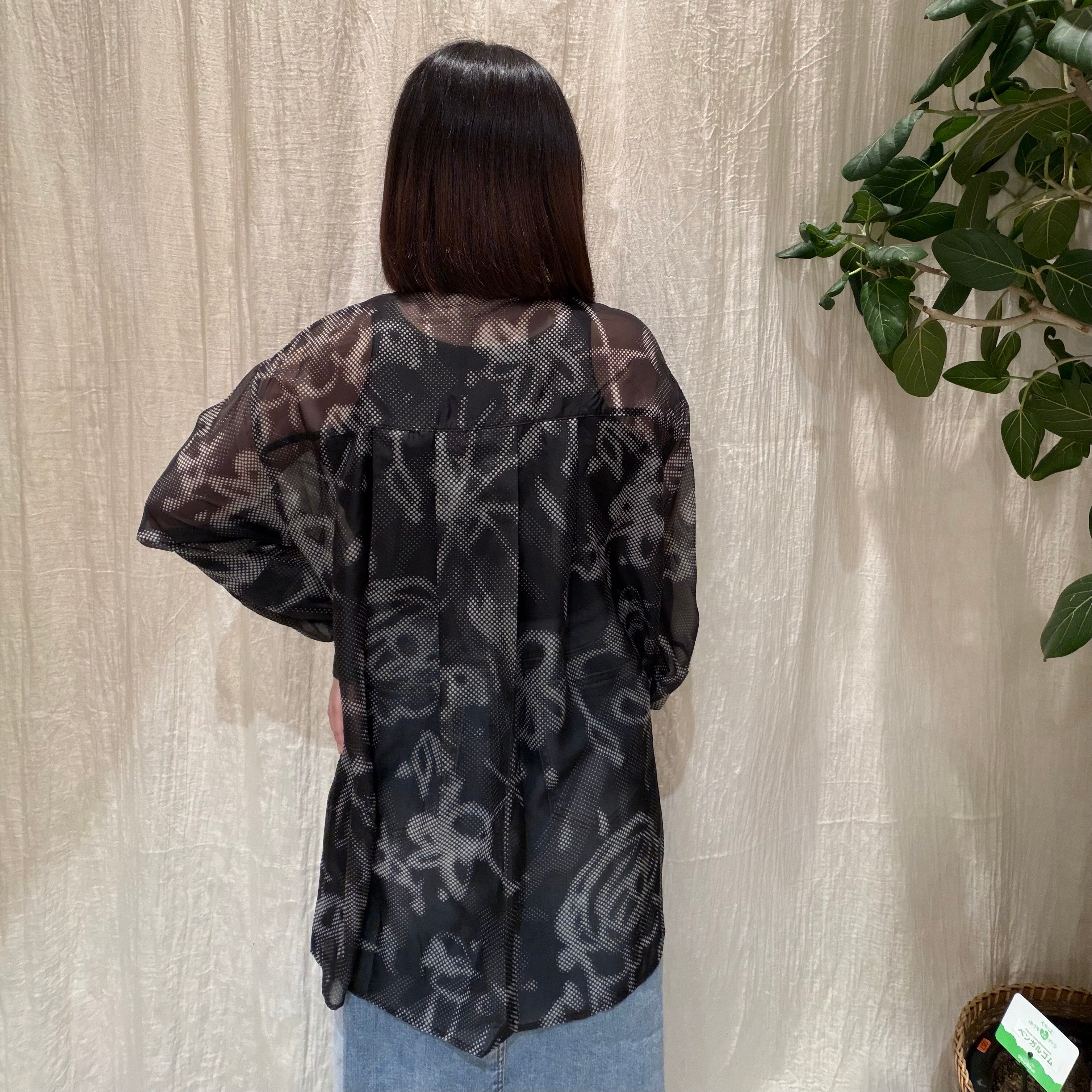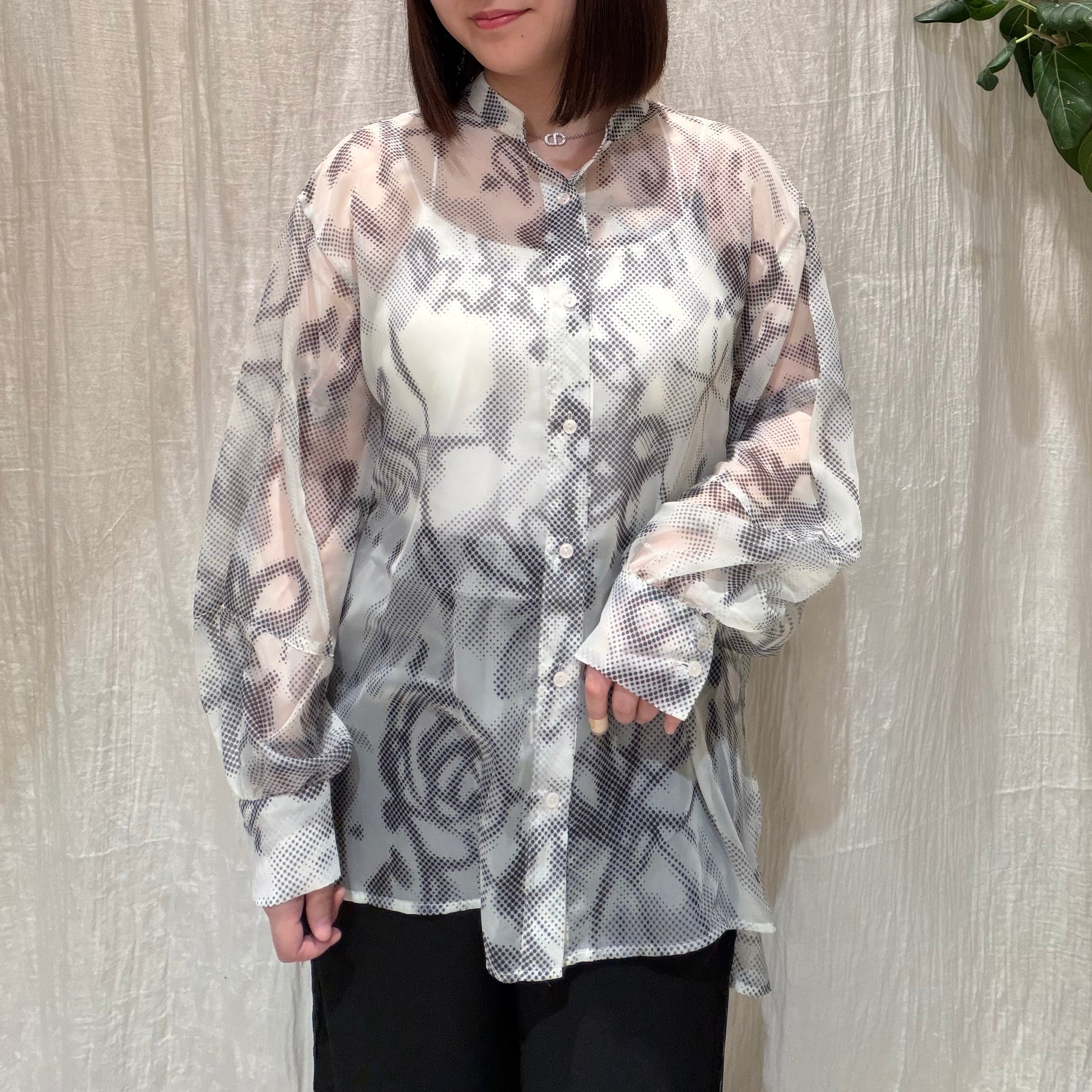 繊細な透け感とニュアンスのあるフラワードット柄が目を惹くシアーシャツ。