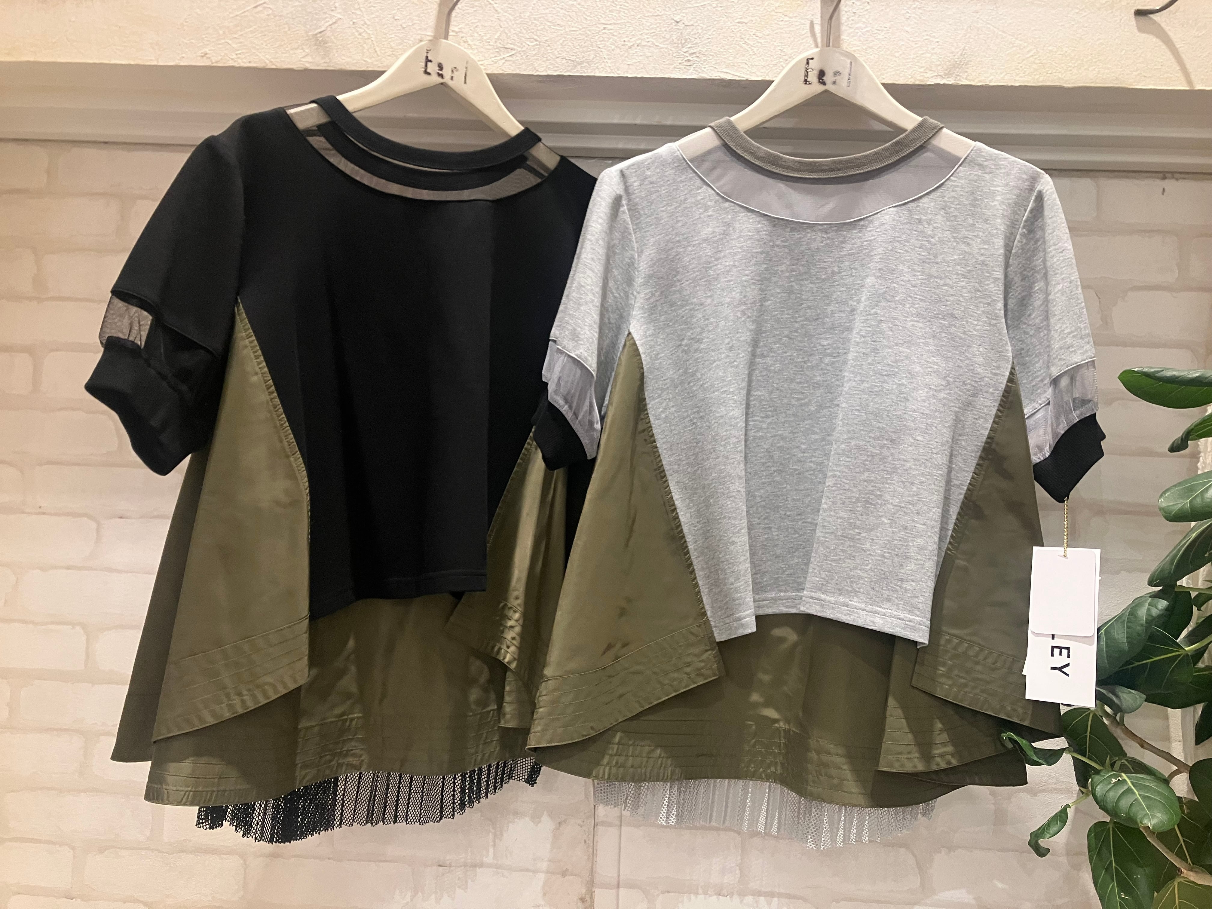 シアー素材と配色デザインが目を惹く、存在感のあるバックプリーツトップス。