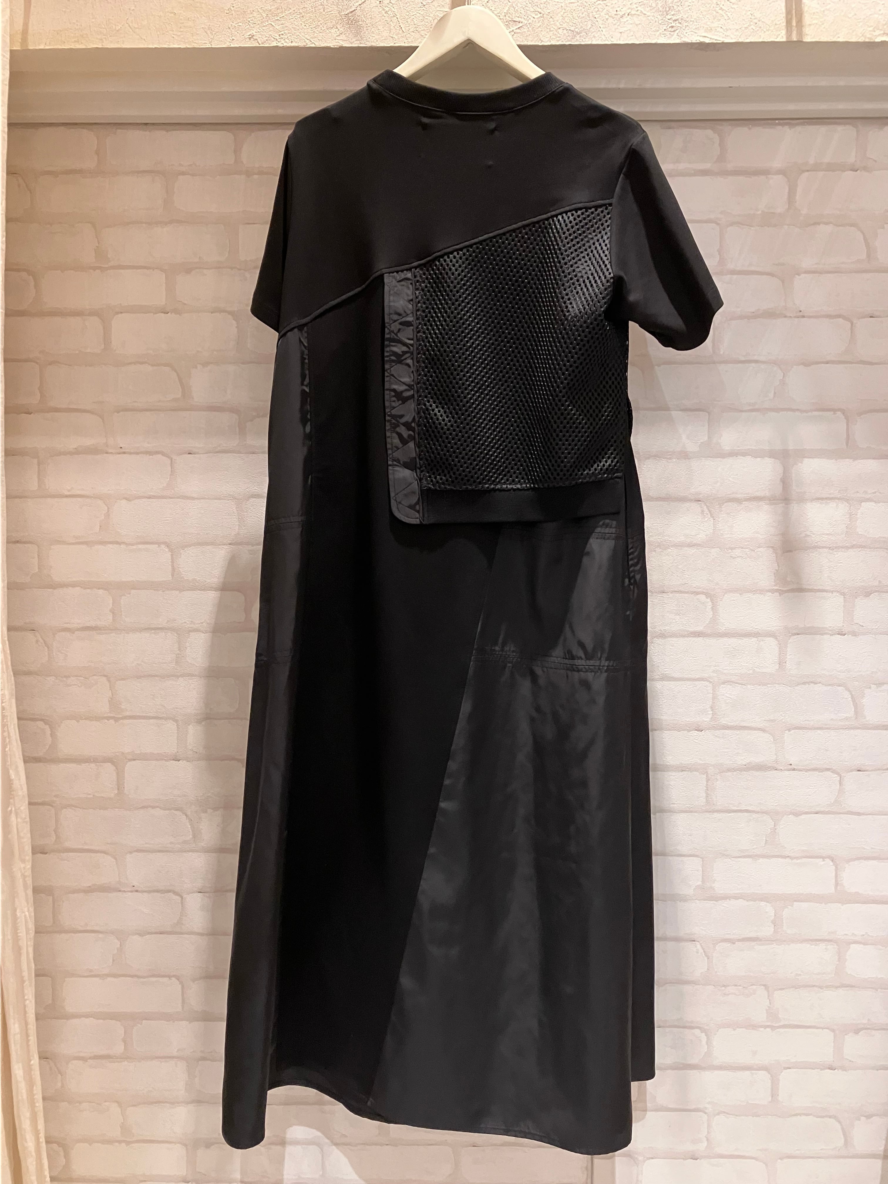 異素材の切替デザインが目を惹く、モード感漂うワンピース。