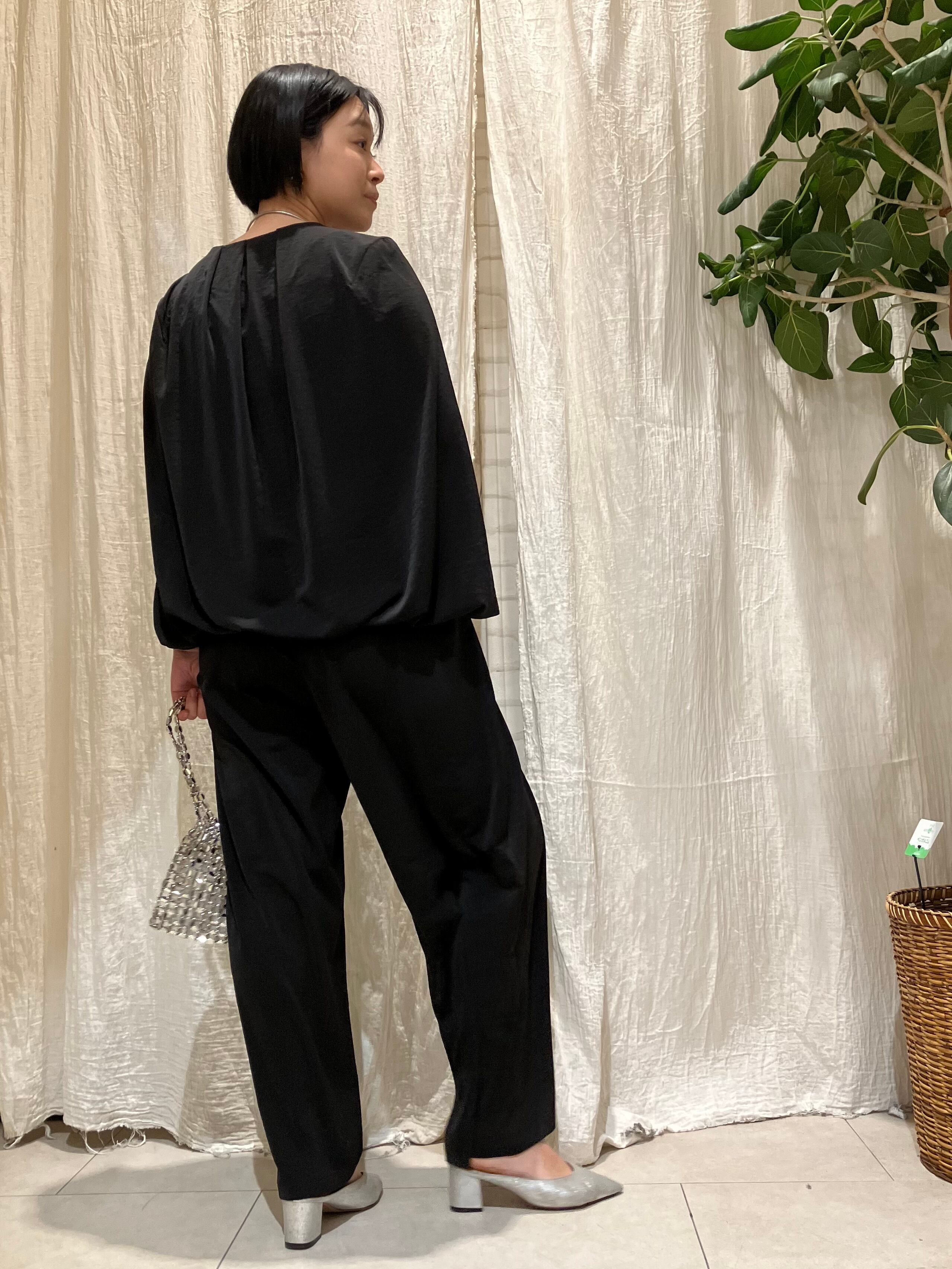 程よいツヤ感となめらかなドレープ性ある素材がリュクス感あるスタイルに格上げしてくれます