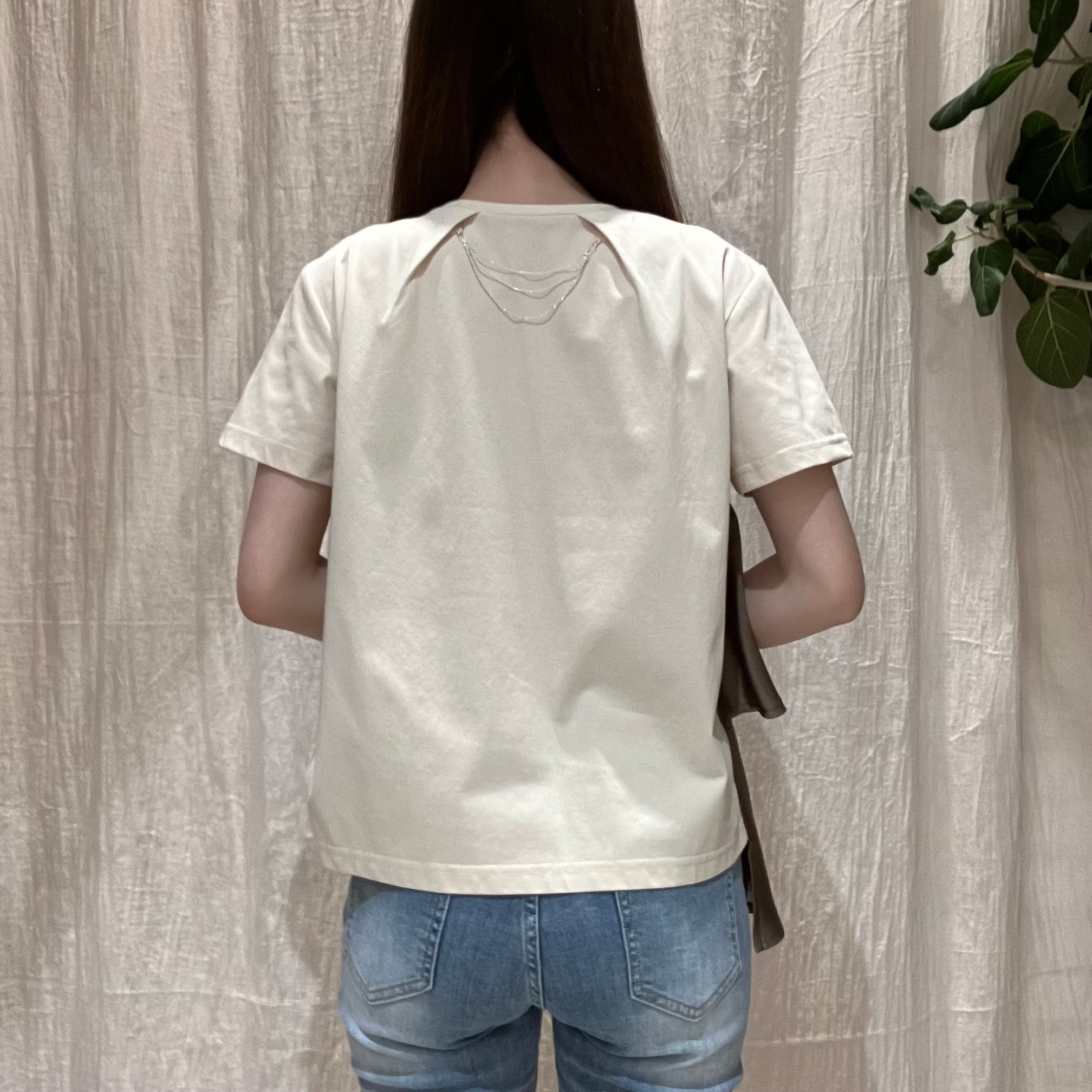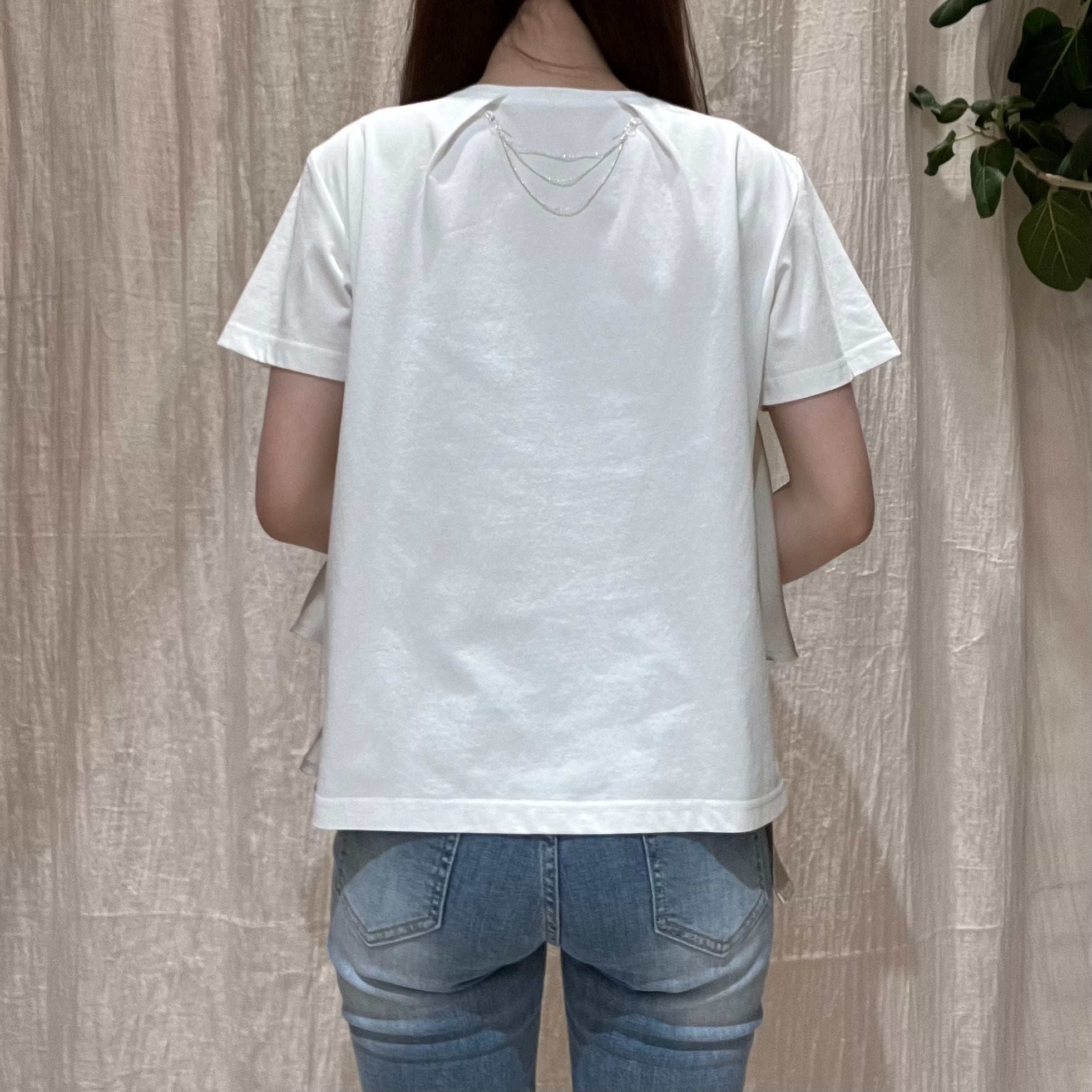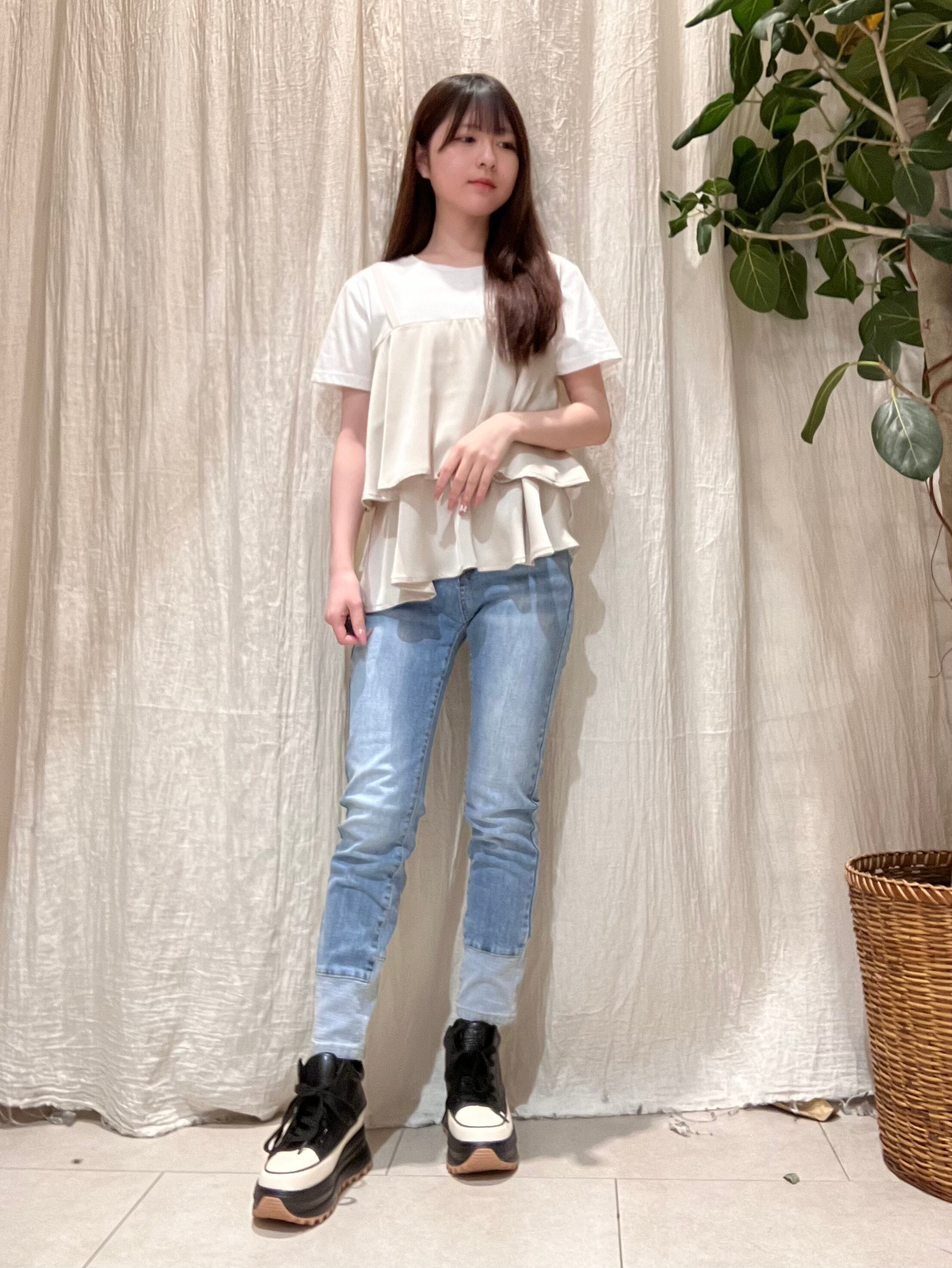 立体感のあるフリルが女性らしさを引き立て、コーデに華やかなアクセントをプラスします。