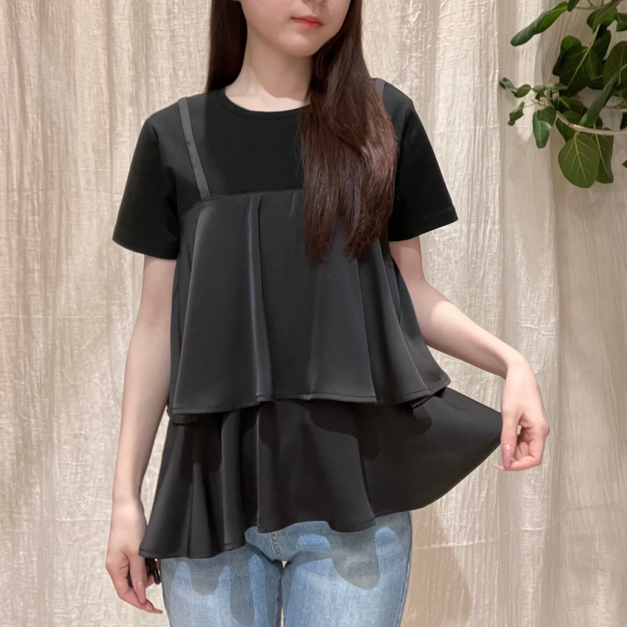 ビスチェ風デザインが目を惹く、アシンメトリーなフリルトップス。