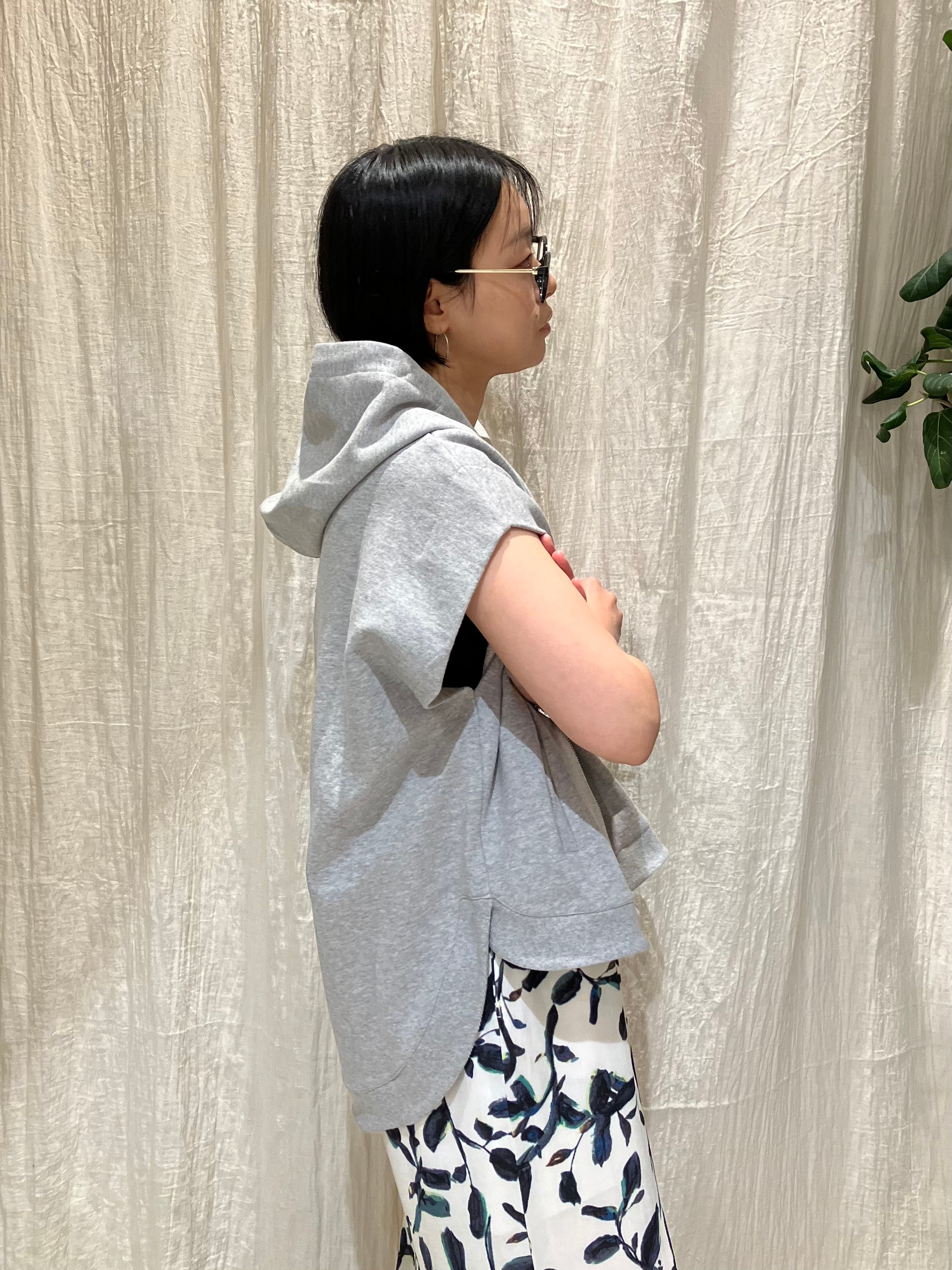 柔らかなスウェット素材で、軽く羽織れるハーフスリーブのジップパーカー。