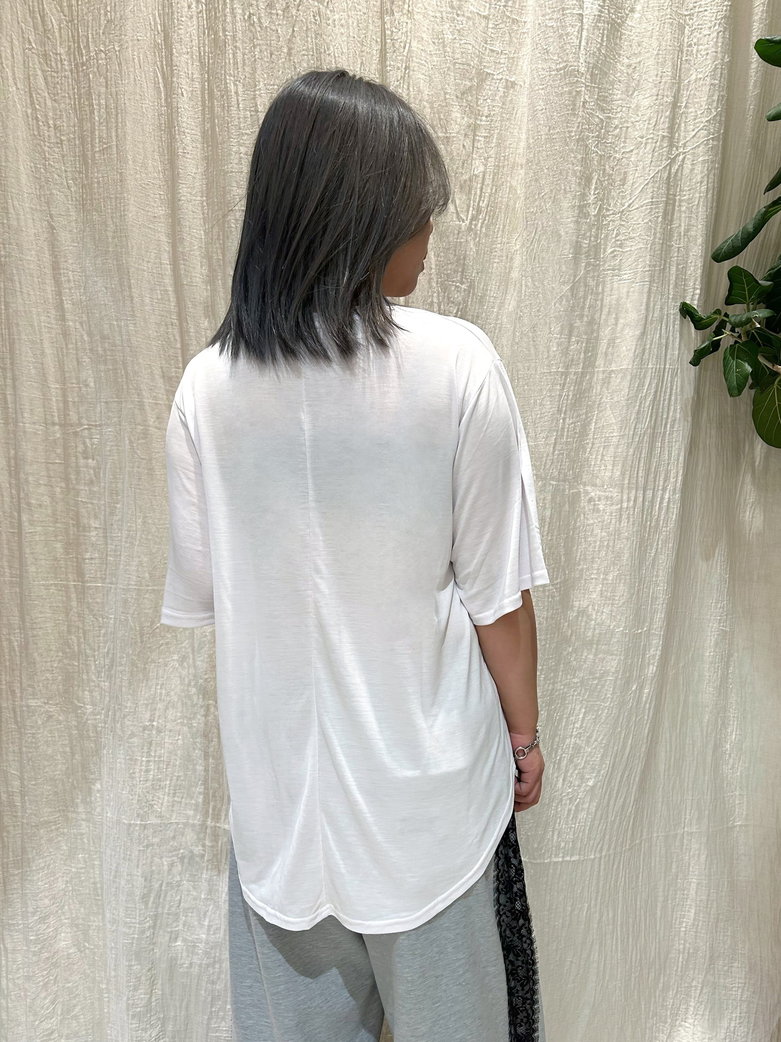 なめらかな肌触りが魅力のモダール素材を使用したロゴTシャツ。