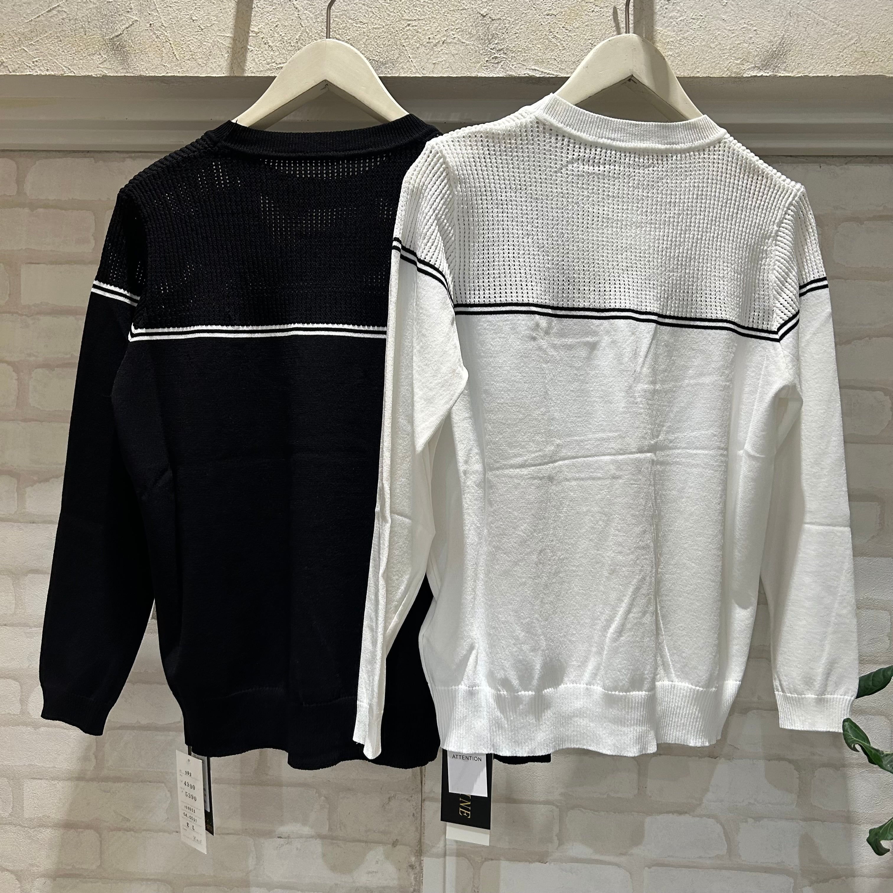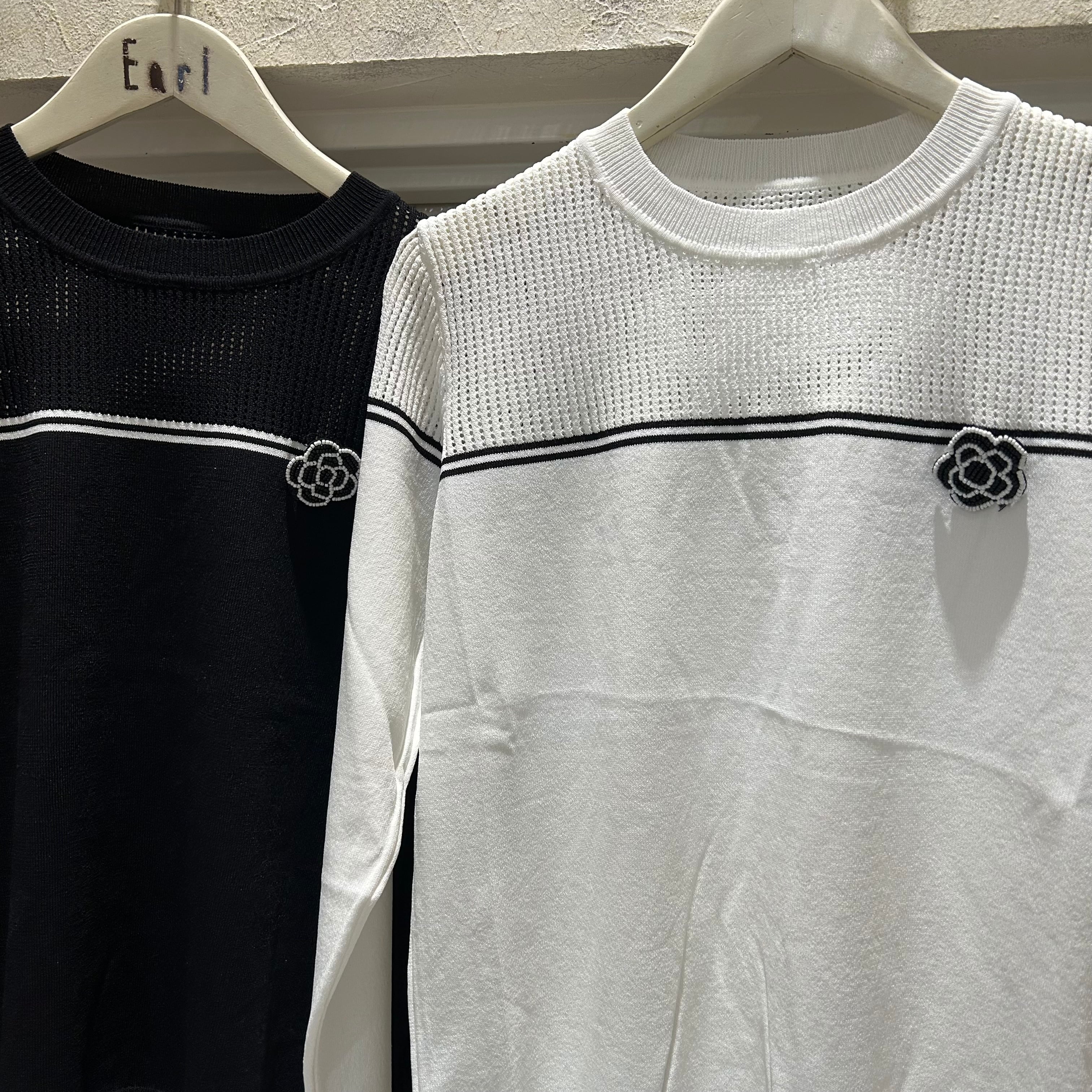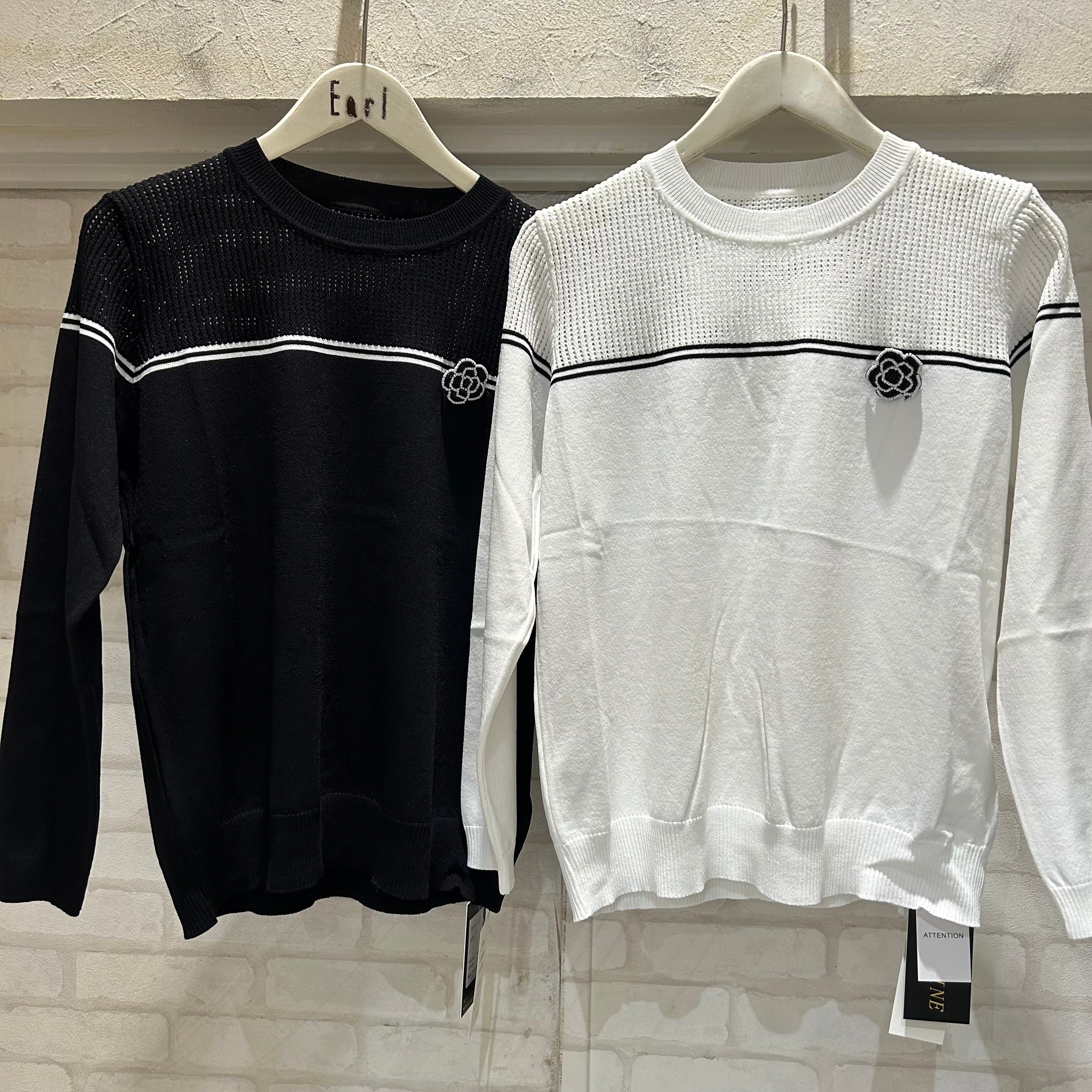ブローチ付き配色ライントップス EDGE LINE(エッジライン)