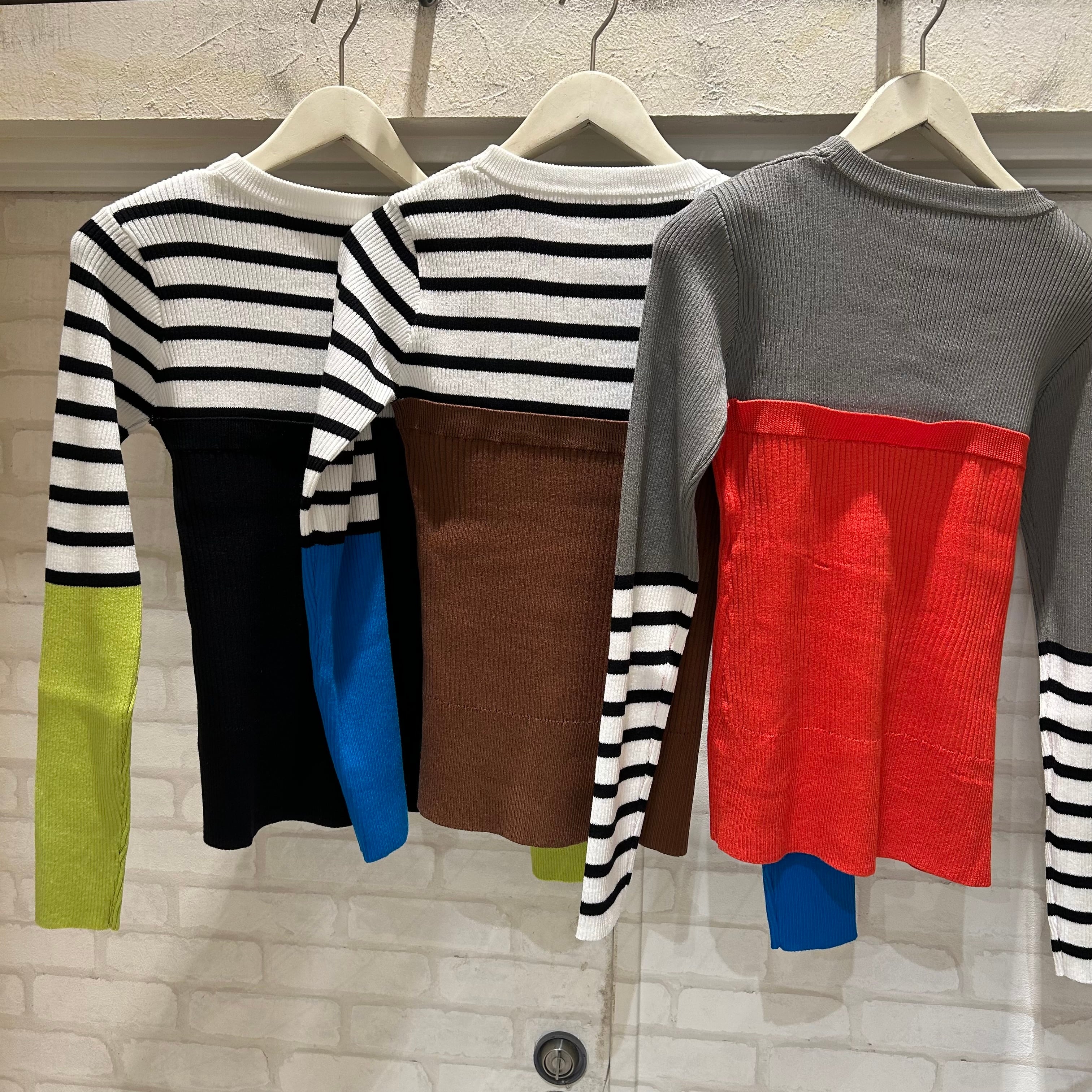 ビスチェドッキングボーダーリブニット Pauline Bleu(ポリーヌブロー)