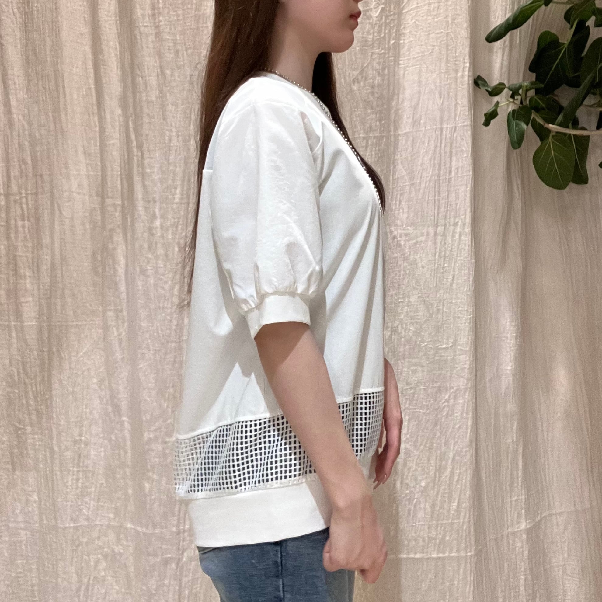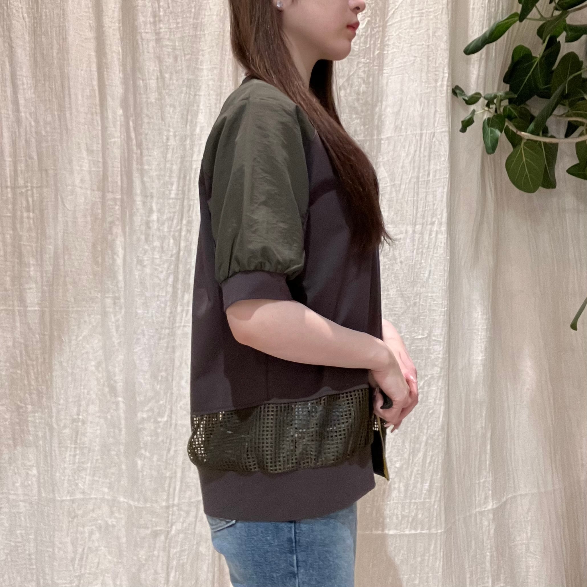 異素材ドッキングメッシュライントップス GALENA(ガレナ)