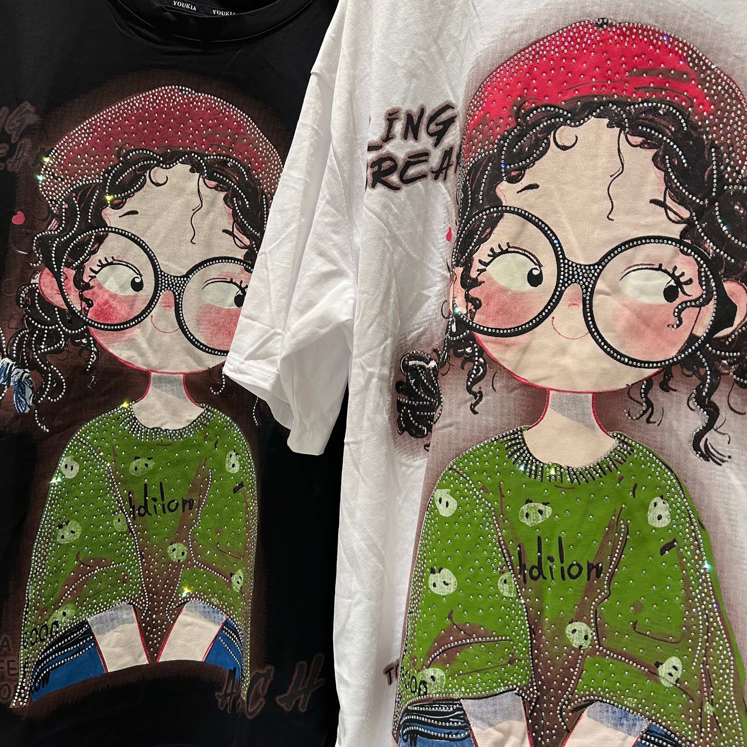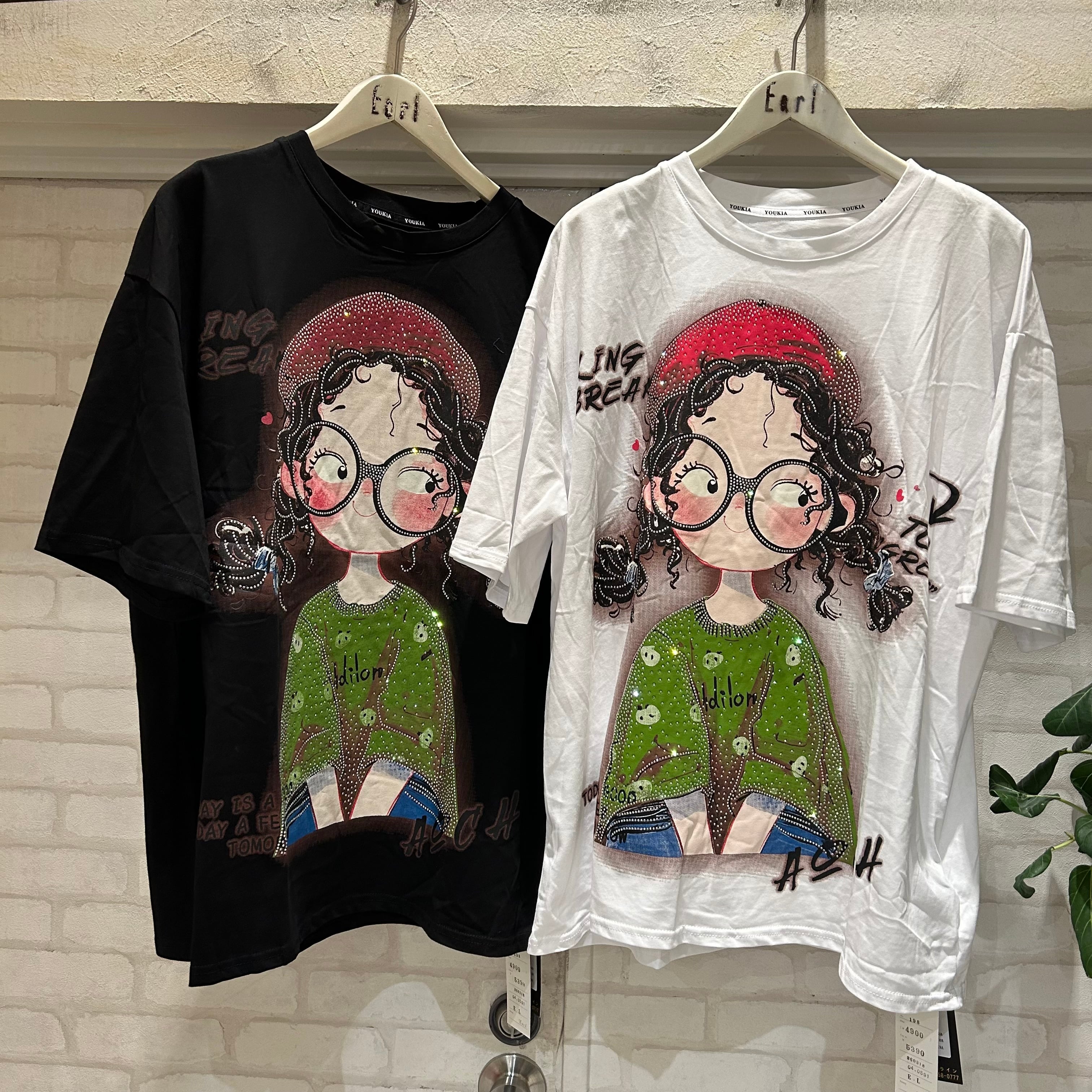 存在感のあるガールプリントが目を惹くデザインTシャツ。