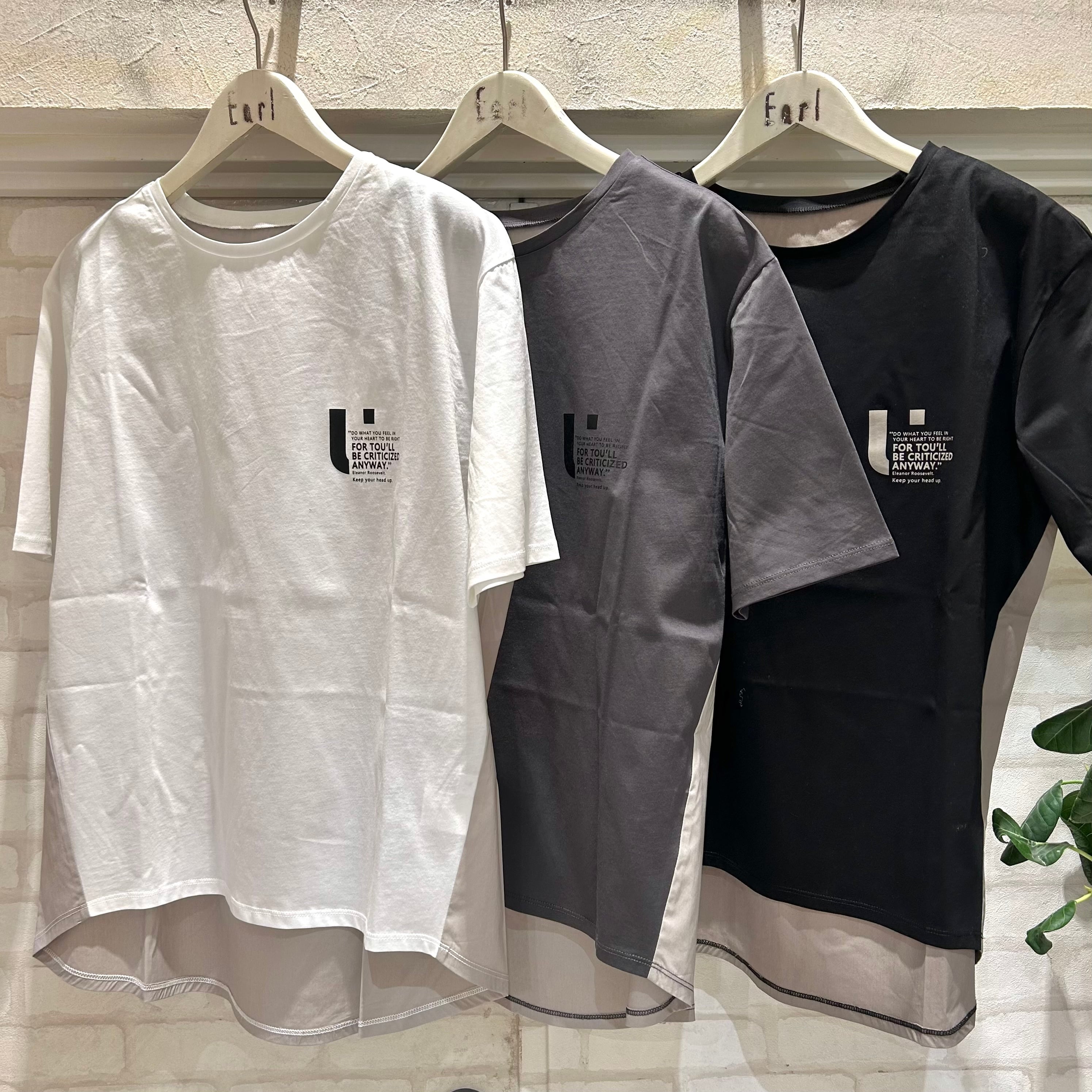 さりげないロゴとレイヤード風デザインがおしゃれなカットソーです。