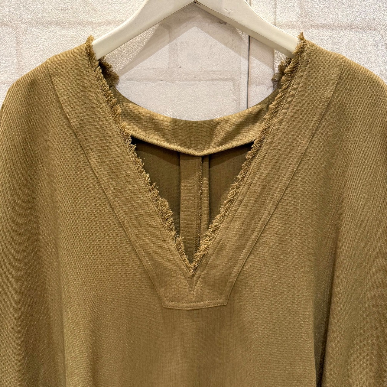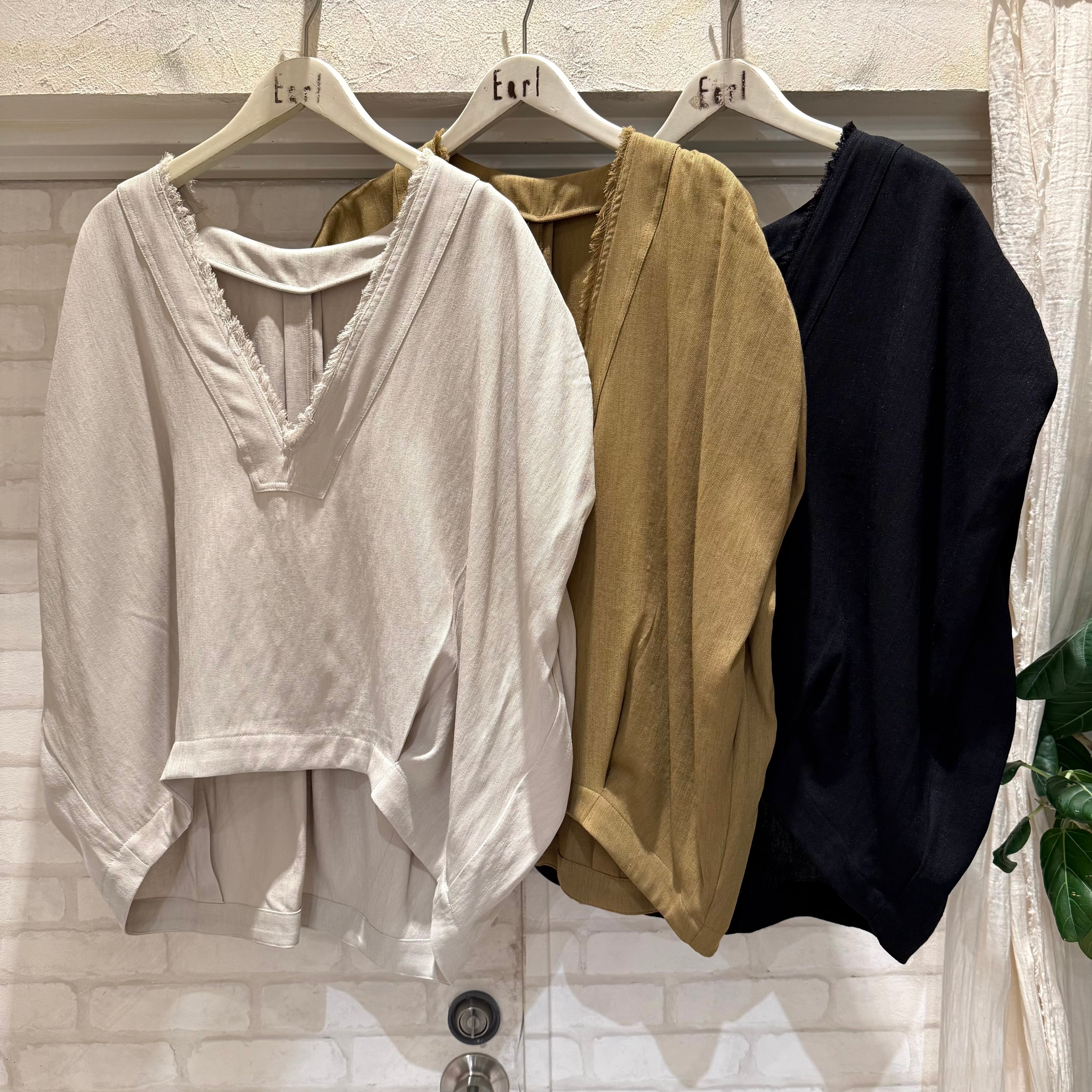 Vネックとフリンジデザインが抜け感を演出し、こなれた印象に仕上げます。