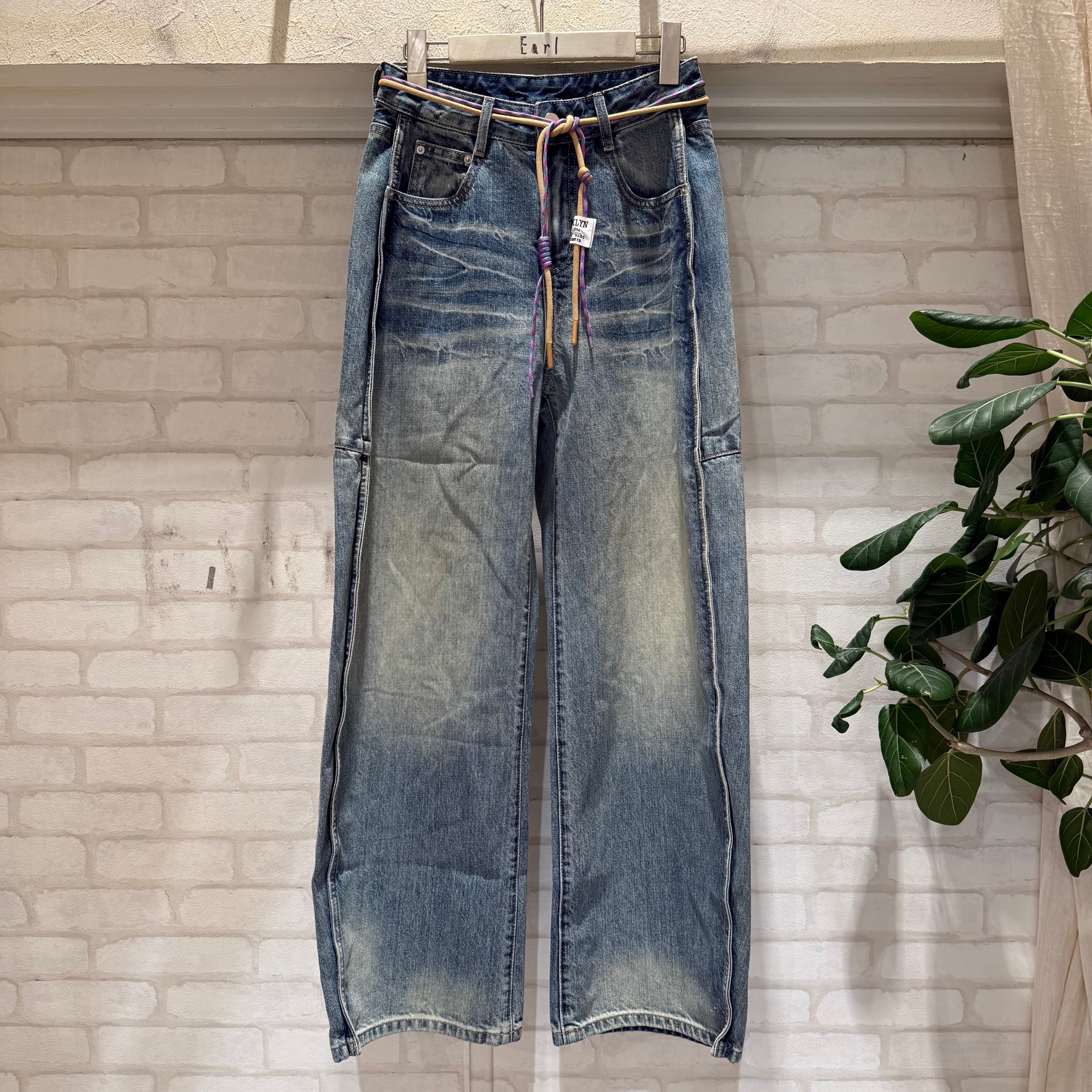 ロープベルト付きワイドデニム Pauline Bleu(ポリーヌブロー)