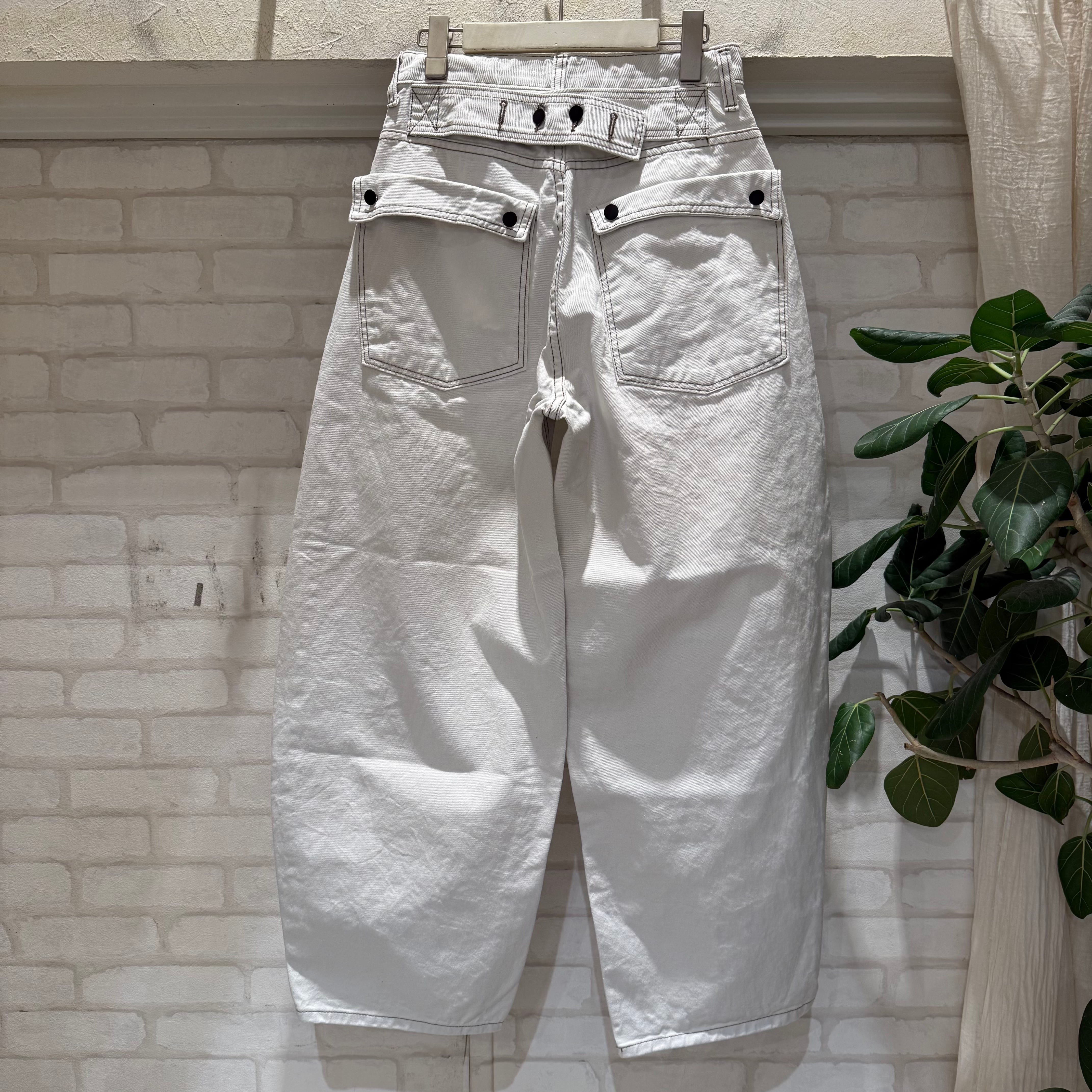 バックベルトデザインがアクセントになったカーブパンツ。