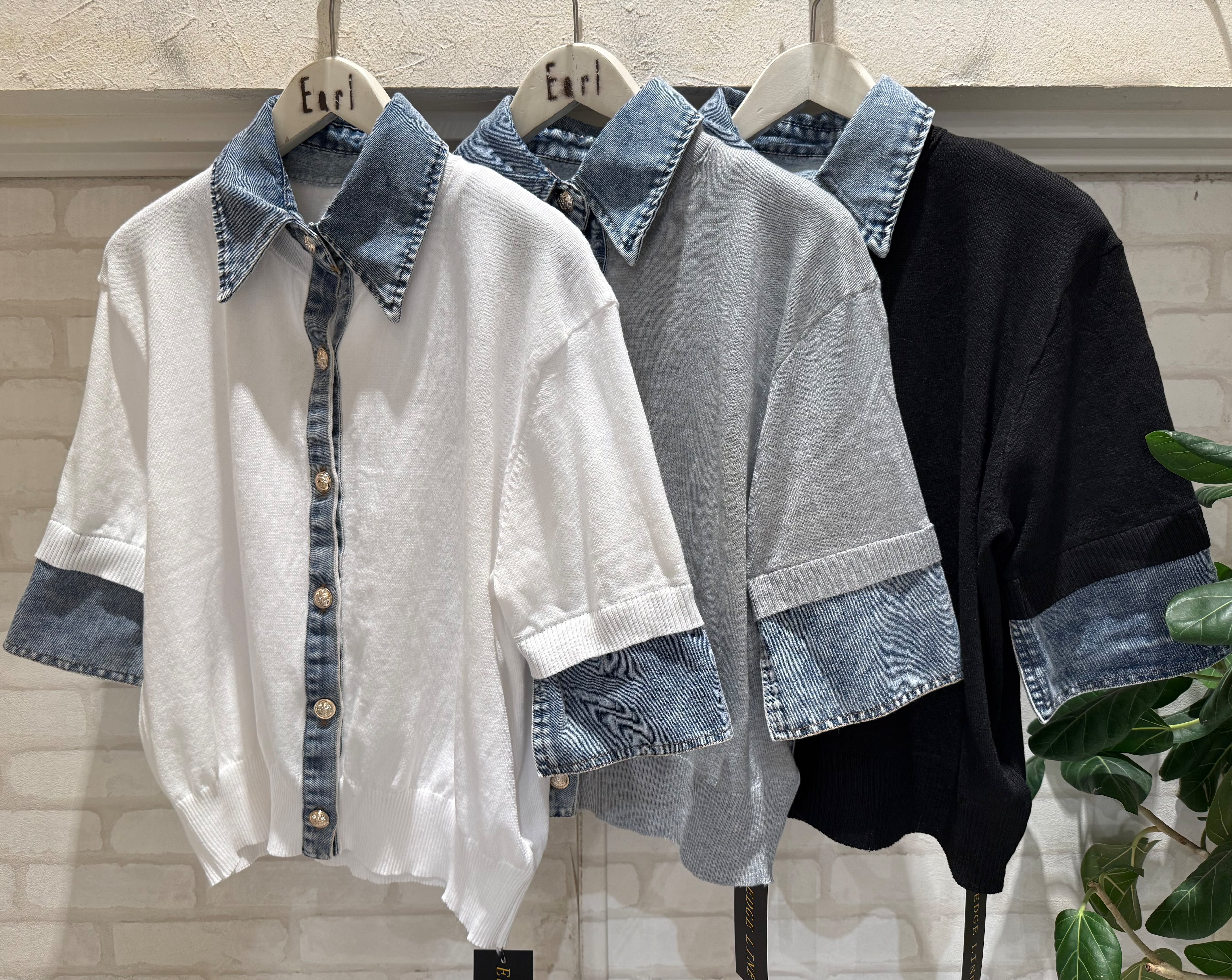 デニム襟半袖スプリングニットトップス EDGE LINE(エッジライン)