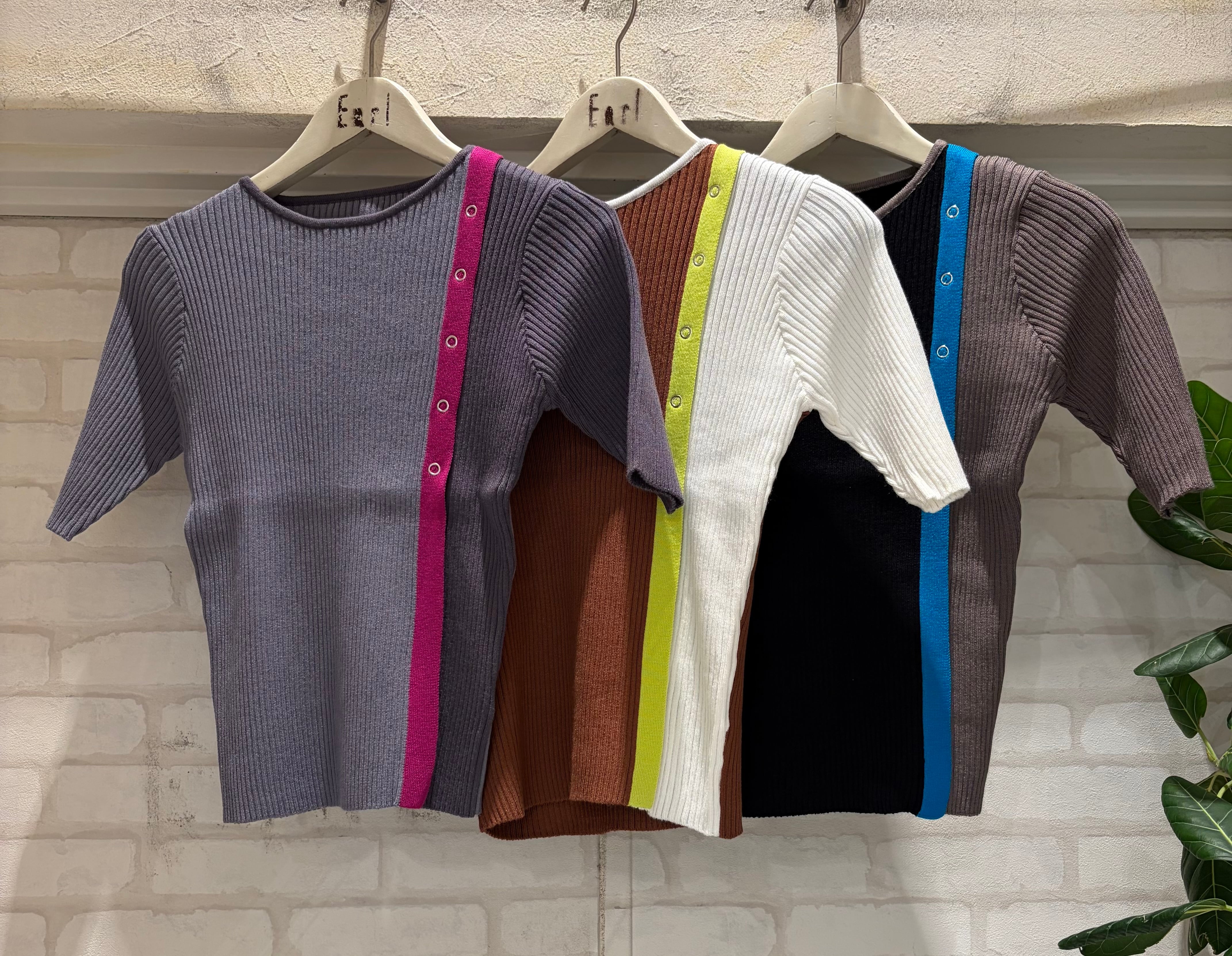 配色リブニットトップス Pauline Bleu(ポリーヌブロー)