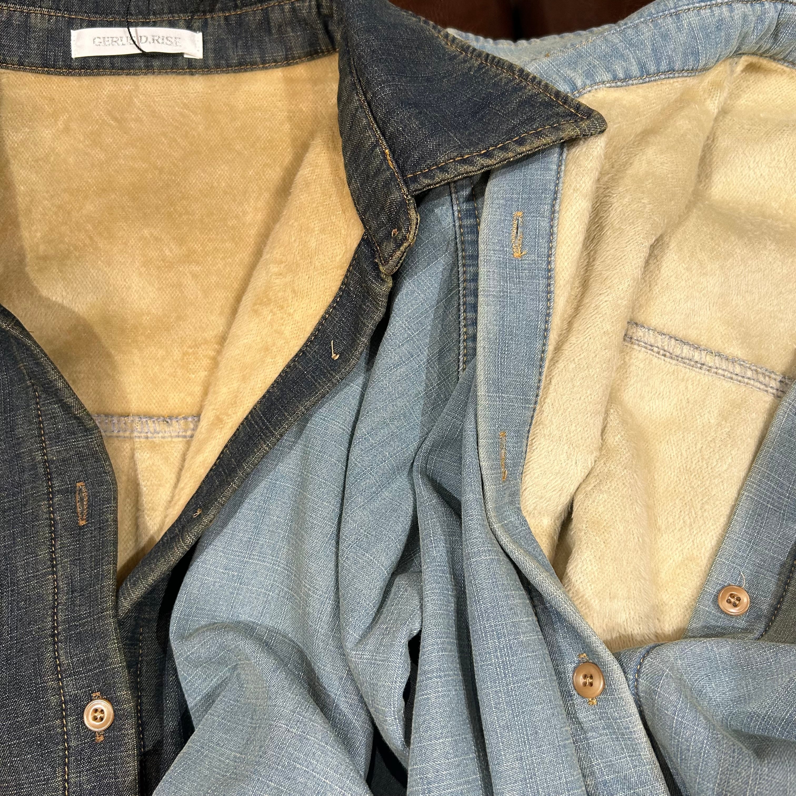 裏地がふわふわの裏起毛が珍しいデニムシャツジャケット。